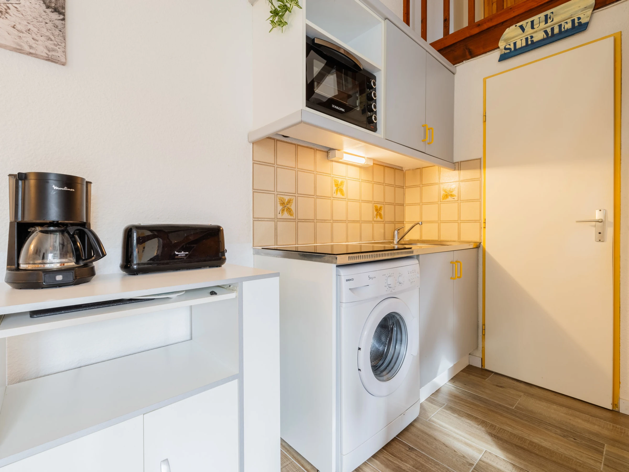 3-room terraced house 35 m2 on 2 levels. Renovated, cosy furnishings: living room with TV (flat screen). Exit to the terrace. 1 room with 1 french bed (1 x [hidden] cm, length [hidden] cm). Kitchenette (mini-oven, 4 induction hot plates, microwave, freezer, electric coffee machine). Shower/WC. Electric heating. Upper floor: 1 room with 2 beds (90 cm, length [hidden] cm). Terrace 20 m2. Terrace furniture. Facilities: washing machine, iron. Internet (WiFi, extra). Parking space n [hidden]. Please note: smoke alarm. Offer by a private individual according to Art. [hidden], IV of CGI.