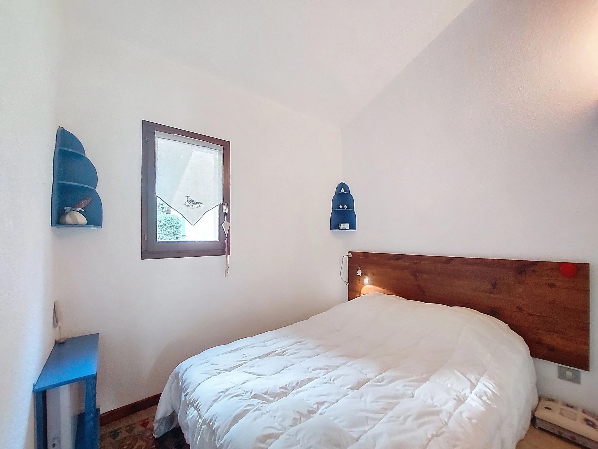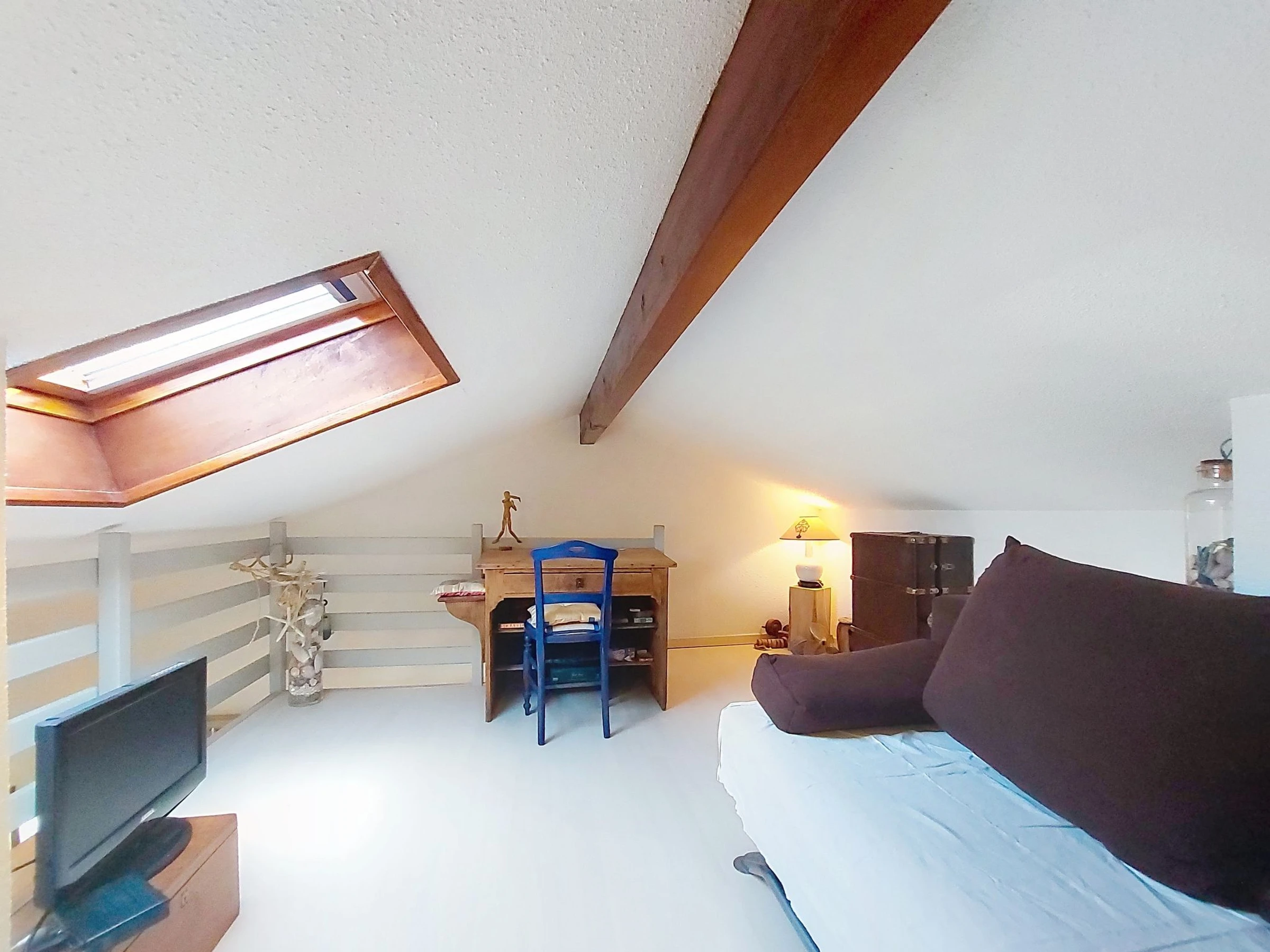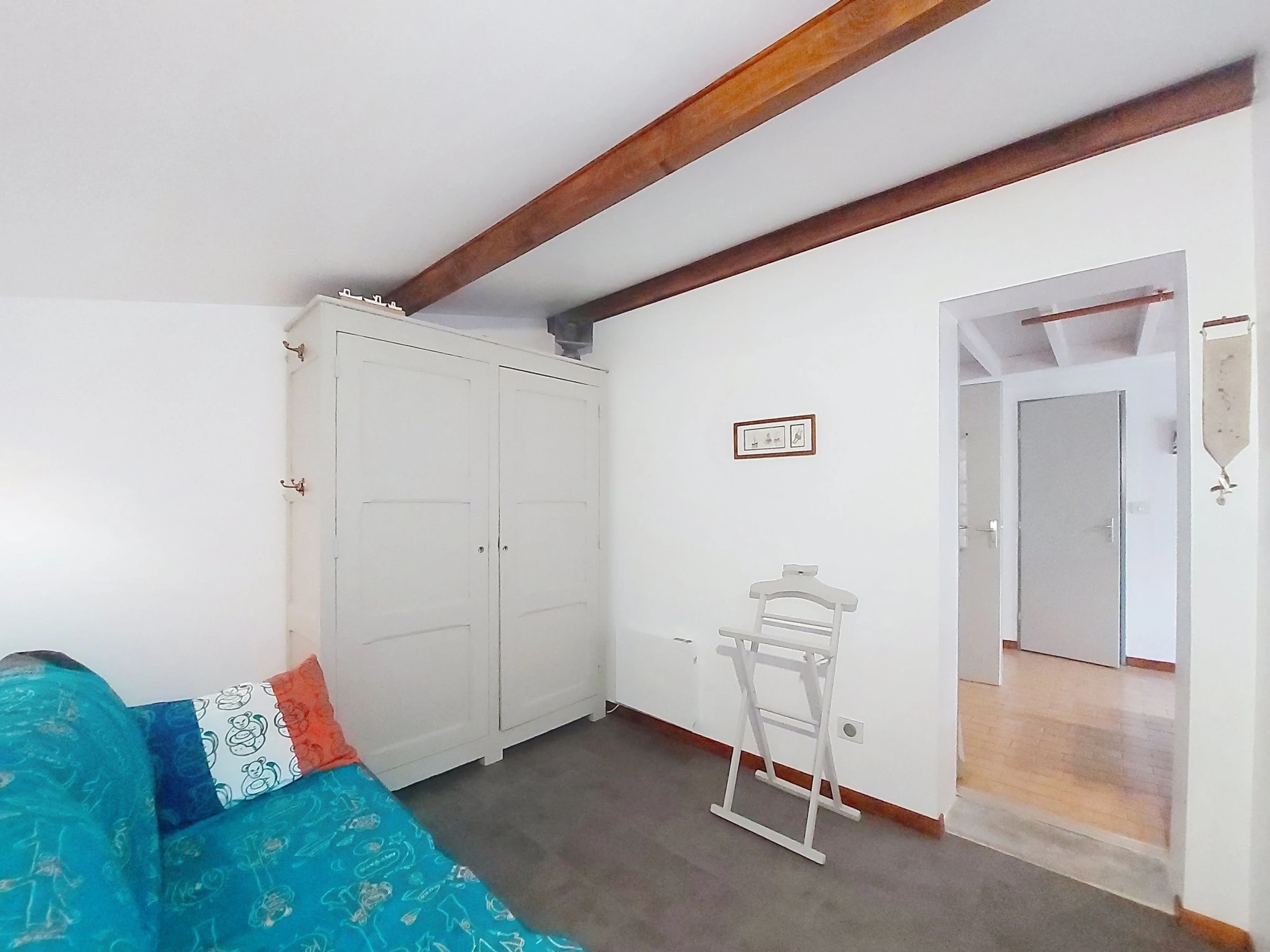 4-room terraced house 59 m2 on 2 levels. Living/dining room. Exit to the terrace. 1 room with 1 french bed (1 x 140 cm, length 190 cm). 1 small children's room with 1 x 2 bunk beds (90 cm, length 190 cm). Walk-through room, without window with 1 double sofabed (1 x 140 cm, length 190 cm). Kitchenette (2 ceramic glass hob hotplates, toaster, kettle, microwave, electric coffee machine). Bathroom, sep. WC. Electric heating. Upper floor: gallery with sloping ceilings with TV (flat screen). Terrace 15 m2, patio 50 m2. Terrace furniture, barbecue. Facilities: Internet (WiFi, extra). Parking space n 17. Please note: non-smokers only. 1 small pet/ dog allowed. Smoke alarm. Offer by a private individual according to Art. 155, IV of CGI.