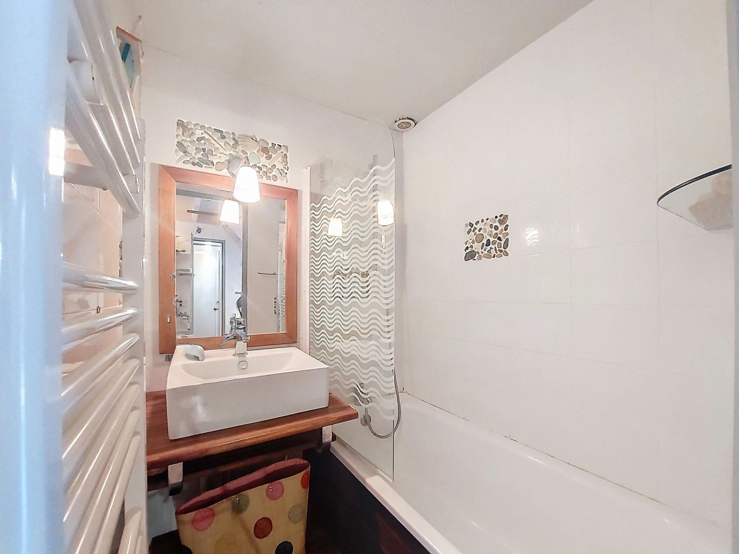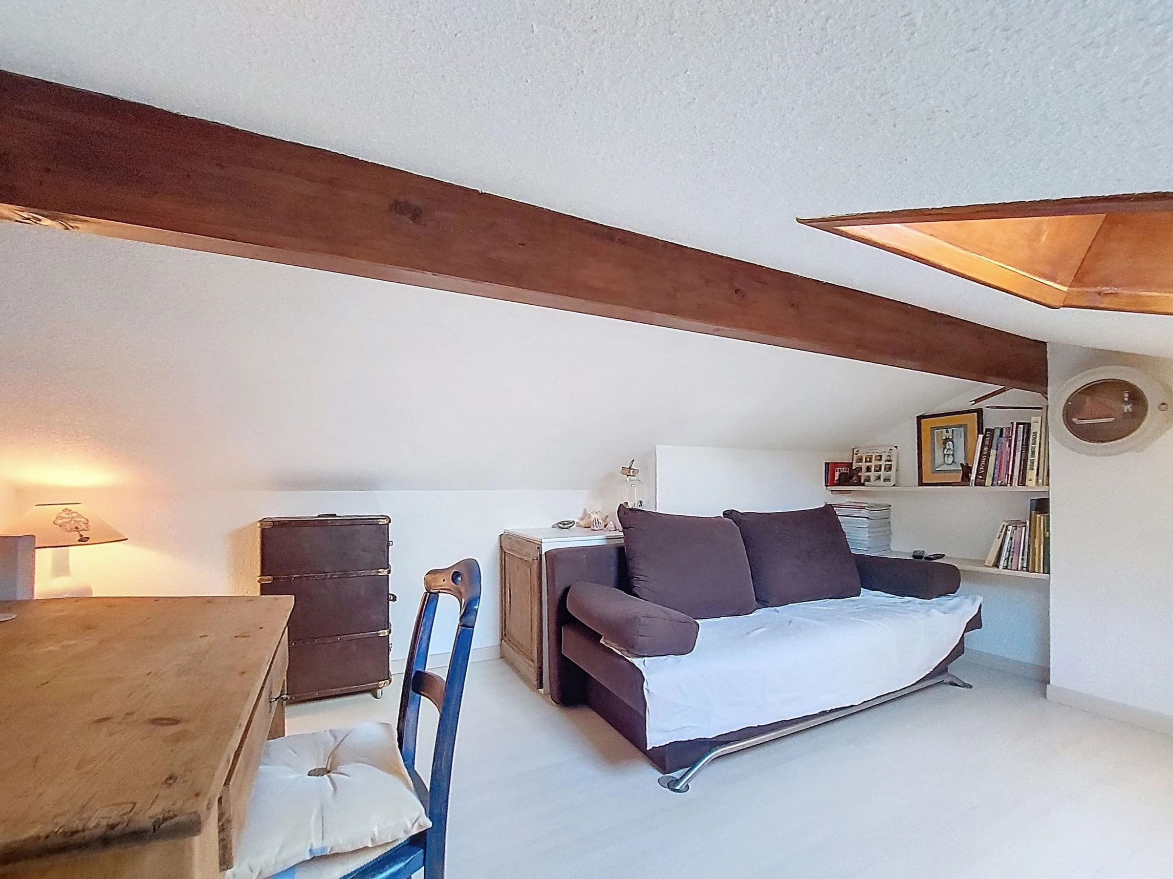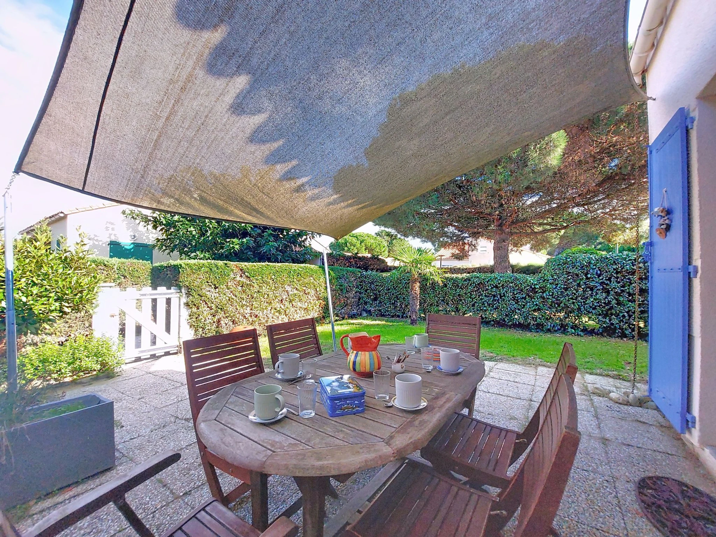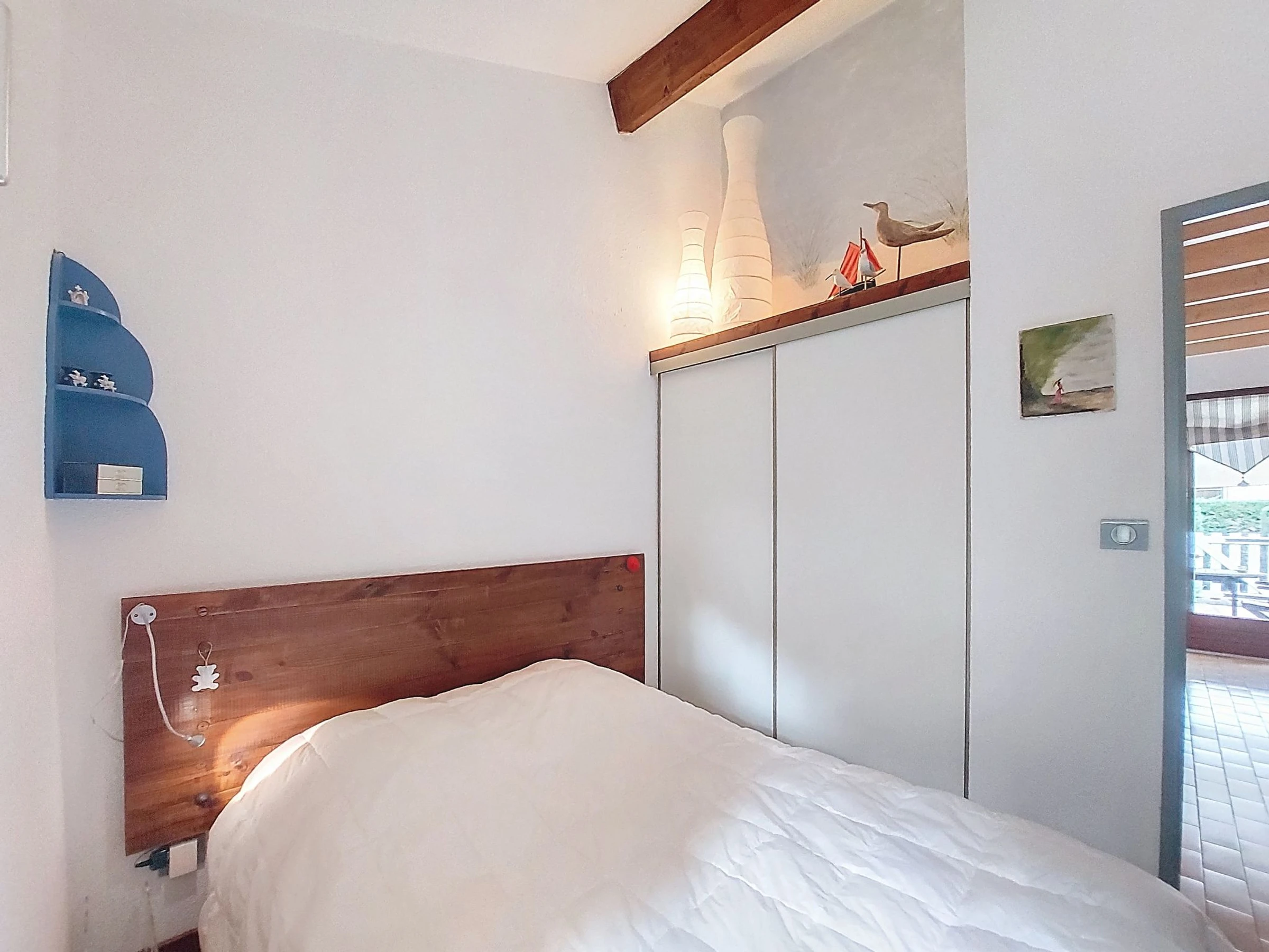 4-room terraced house 59 m2 on 2 levels. Living/dining room. Exit to the terrace. 1 room with 1 french bed (1 x 140 cm, length 190 cm). 1 small children's room with 1 x 2 bunk beds (90 cm, length 190 cm). Walk-through room, without window with 1 double sofabed (1 x 140 cm, length 190 cm). Kitchenette (2 ceramic glass hob hotplates, toaster, kettle, microwave, electric coffee machine). Bathroom, sep. WC. Electric heating. Upper floor: gallery with sloping ceilings with TV (flat screen). Terrace 15 m2, patio 50 m2. Terrace furniture, barbecue. Facilities: Internet (WiFi, extra). Parking space n 17. Please note: non-smokers only. 1 small pet/ dog allowed. Smoke alarm. Offer by a private individual according to Art. 155, IV of CGI.