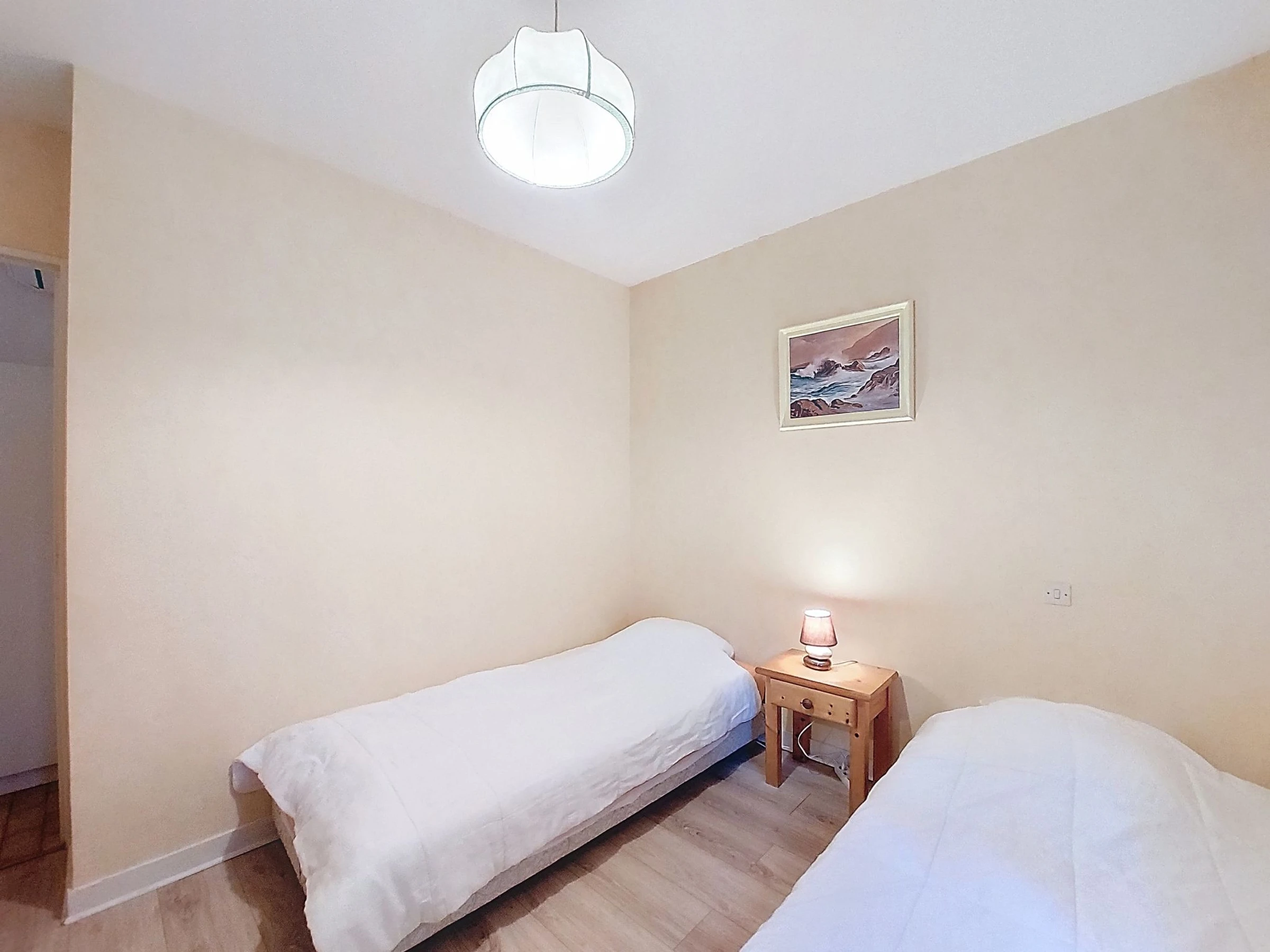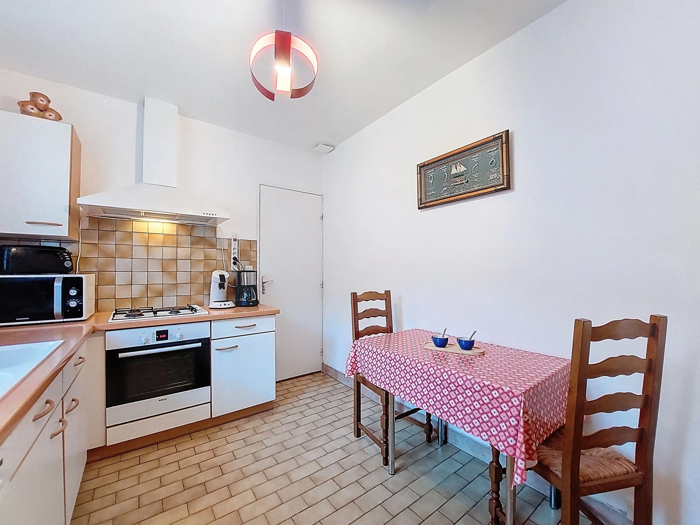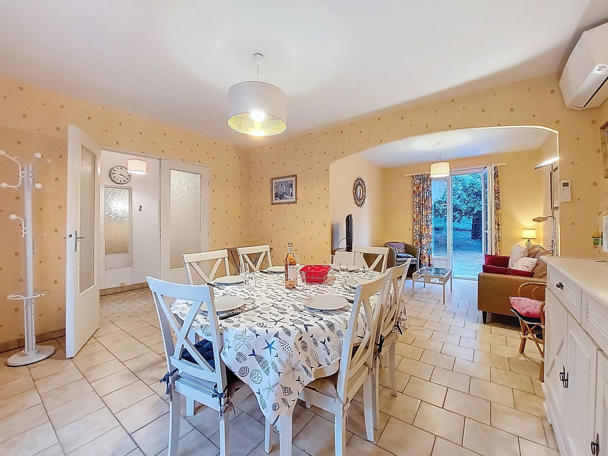 4-room house 75 m2. Comfortable furnishings: living/dining room with TV (flat screen). Exit to the garden. 1 room with 1 french bed (1 x 160 cm, length 190 cm). 1 room with 1 french bed (1 x 140 cm, length 190 cm). 1 room with 2 beds (90 cm, length 190 cm). Kitchen (4 hot plates, oven, dishwasher, toaster, kettle, microwave, freezer, electric coffee machine, Capsules for coffee machine (Senseo) extra). Shower, sep. WC. Electric heating, air-conditioning. Facilities: washing machine, iron, hair dryer. Internet (WiFi, free). Parking (fenced 1 car). Please note: maximum 1 pet/ dog allowed. Smoke alarm. Offer by a private individual according to Art. 155, IV of CGI.