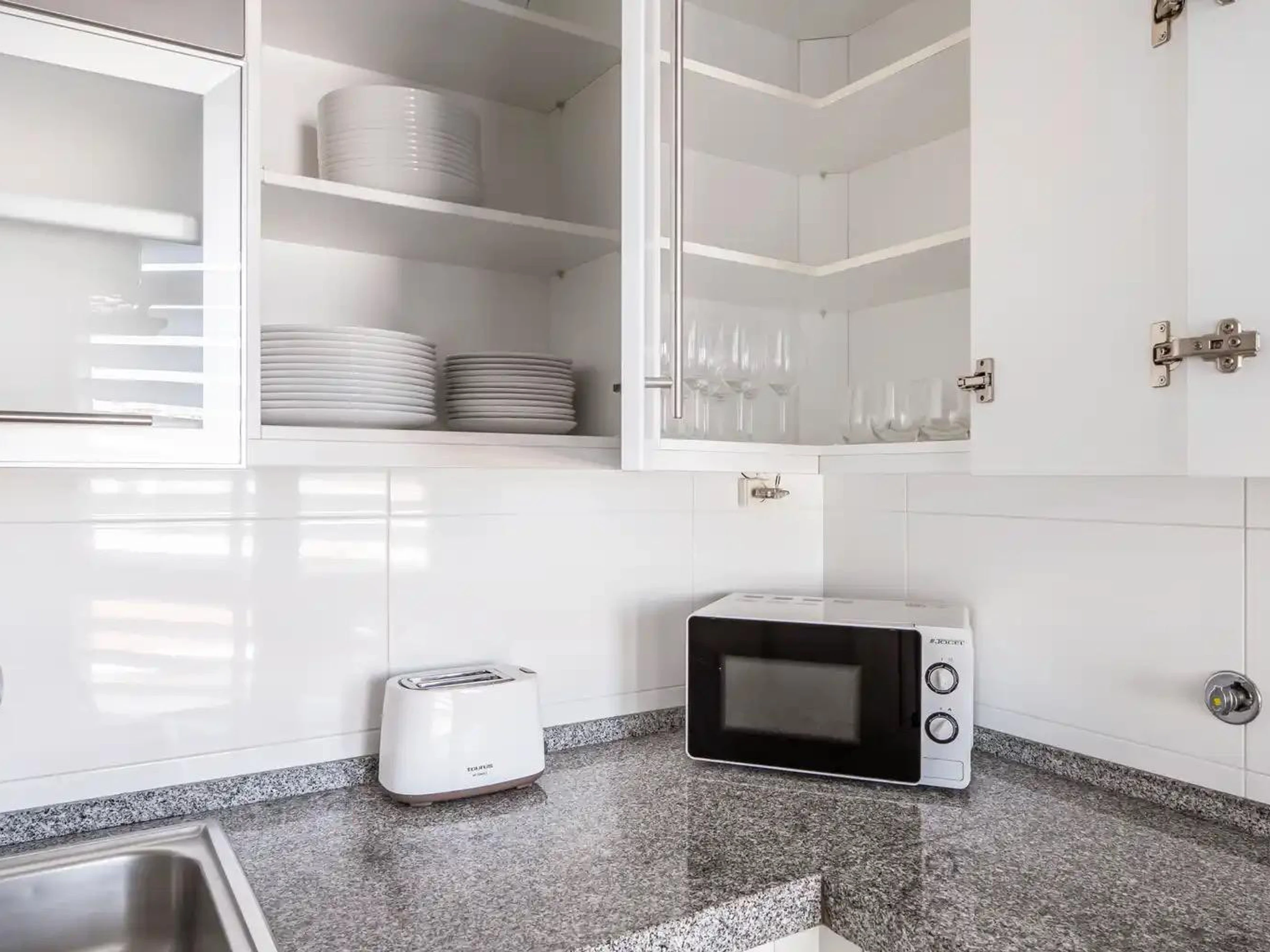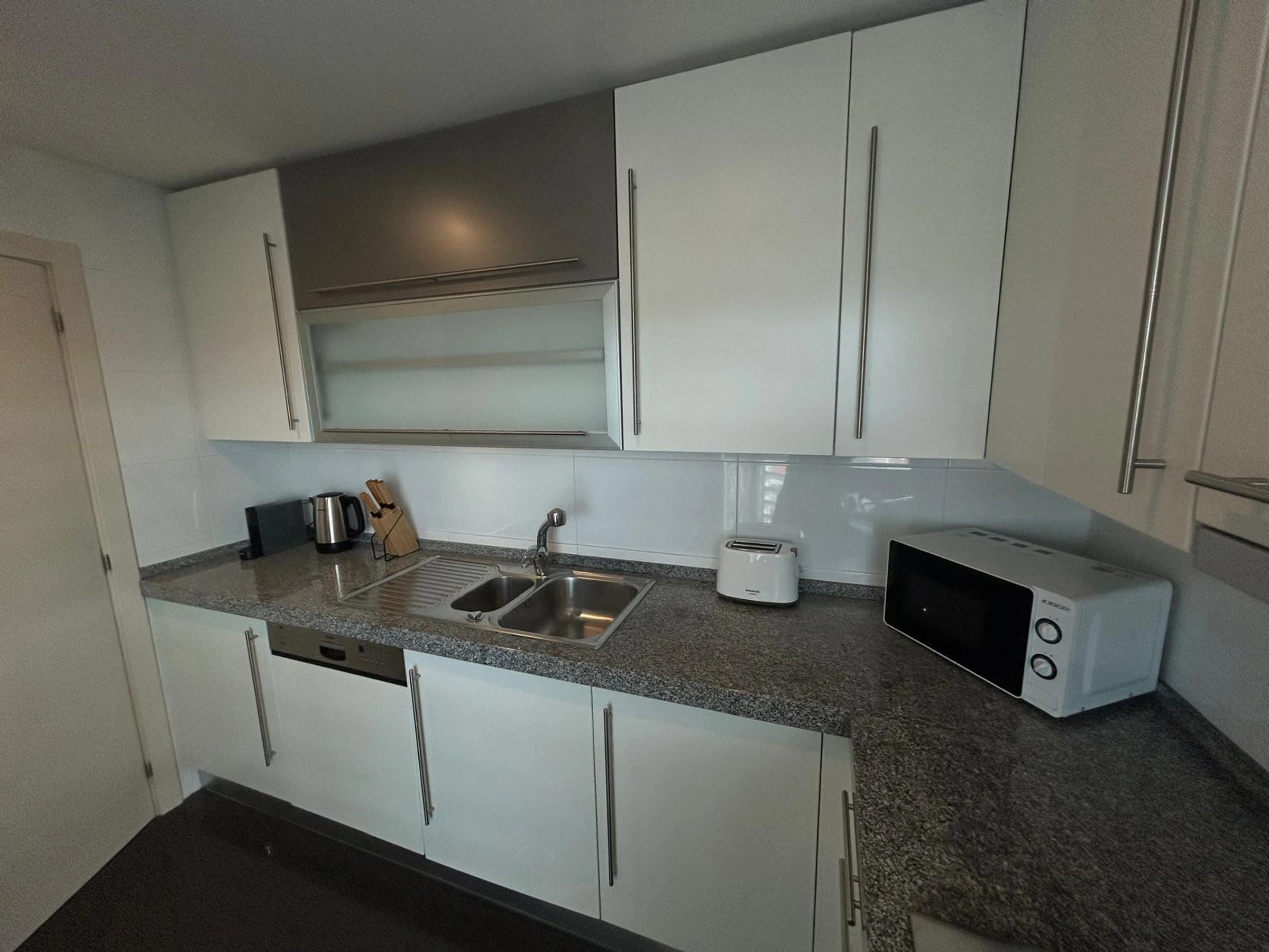 The independent kitchen is a highlight of the apartment, combining functionality and modernity. It is completely equipped with a refrigerator, freezer, oven, microwave, dishwasher, coffee machine, toaster, electric kettle, and all necessary utensils and crockery. Perfect for preparing meals with family or friends.