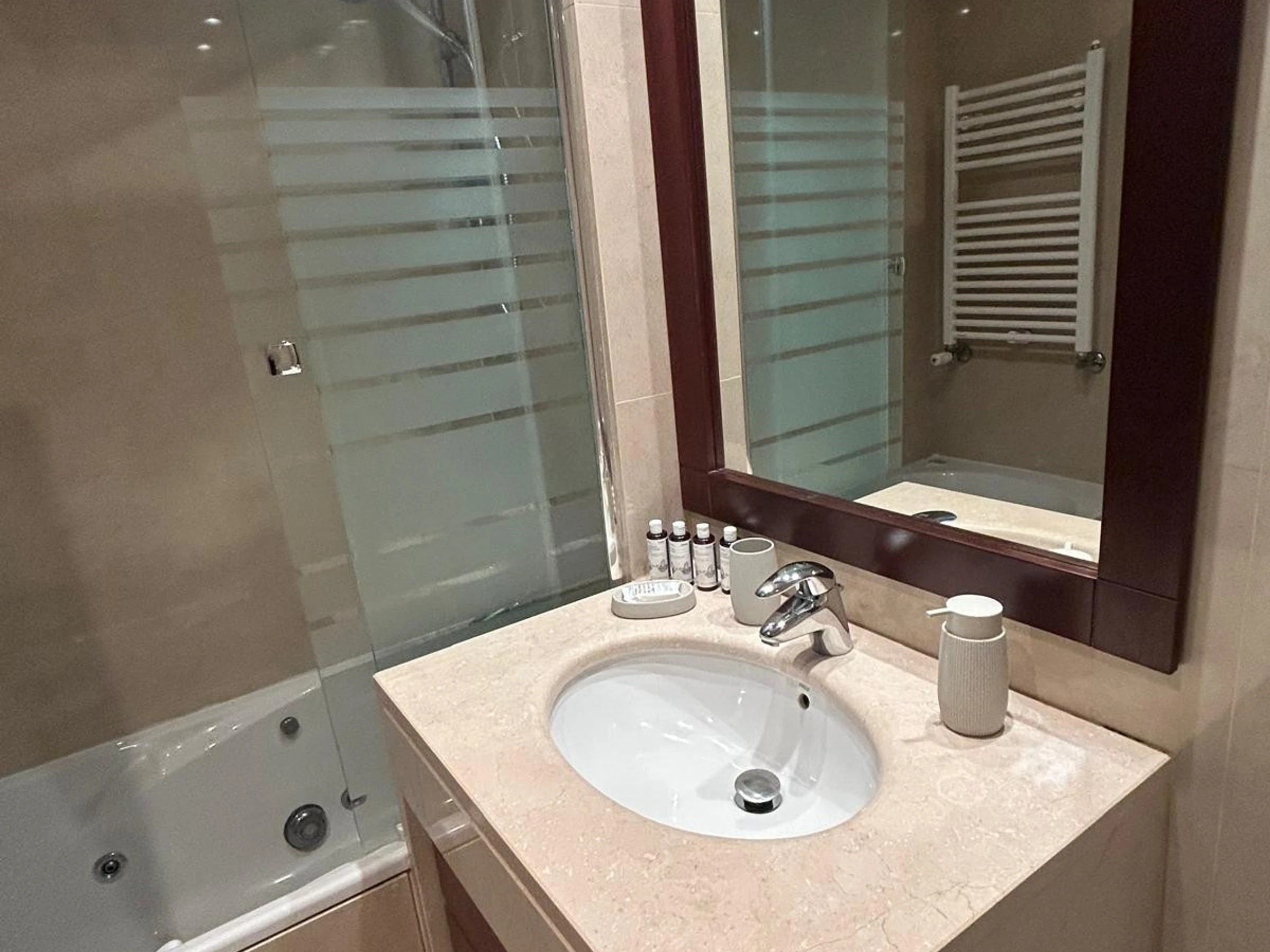 We have 2 complete bathrooms, both with a bathtub, ensuring comfort and privacy for all guests. Each one is well equipped for your daily needs.