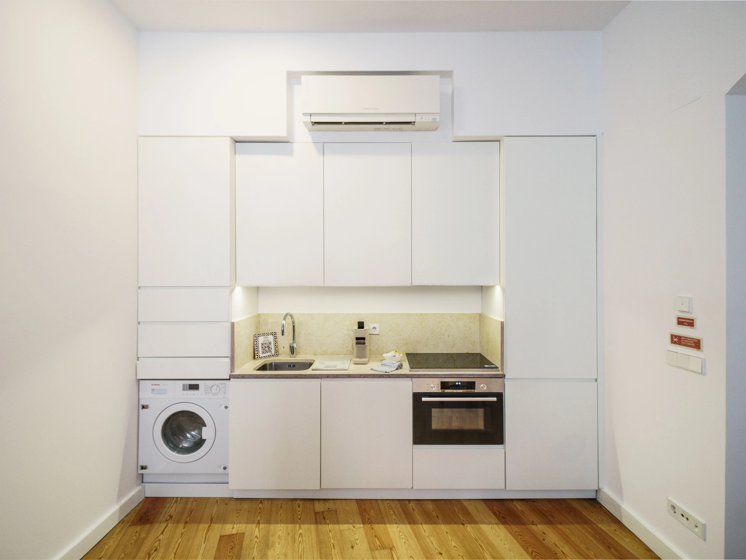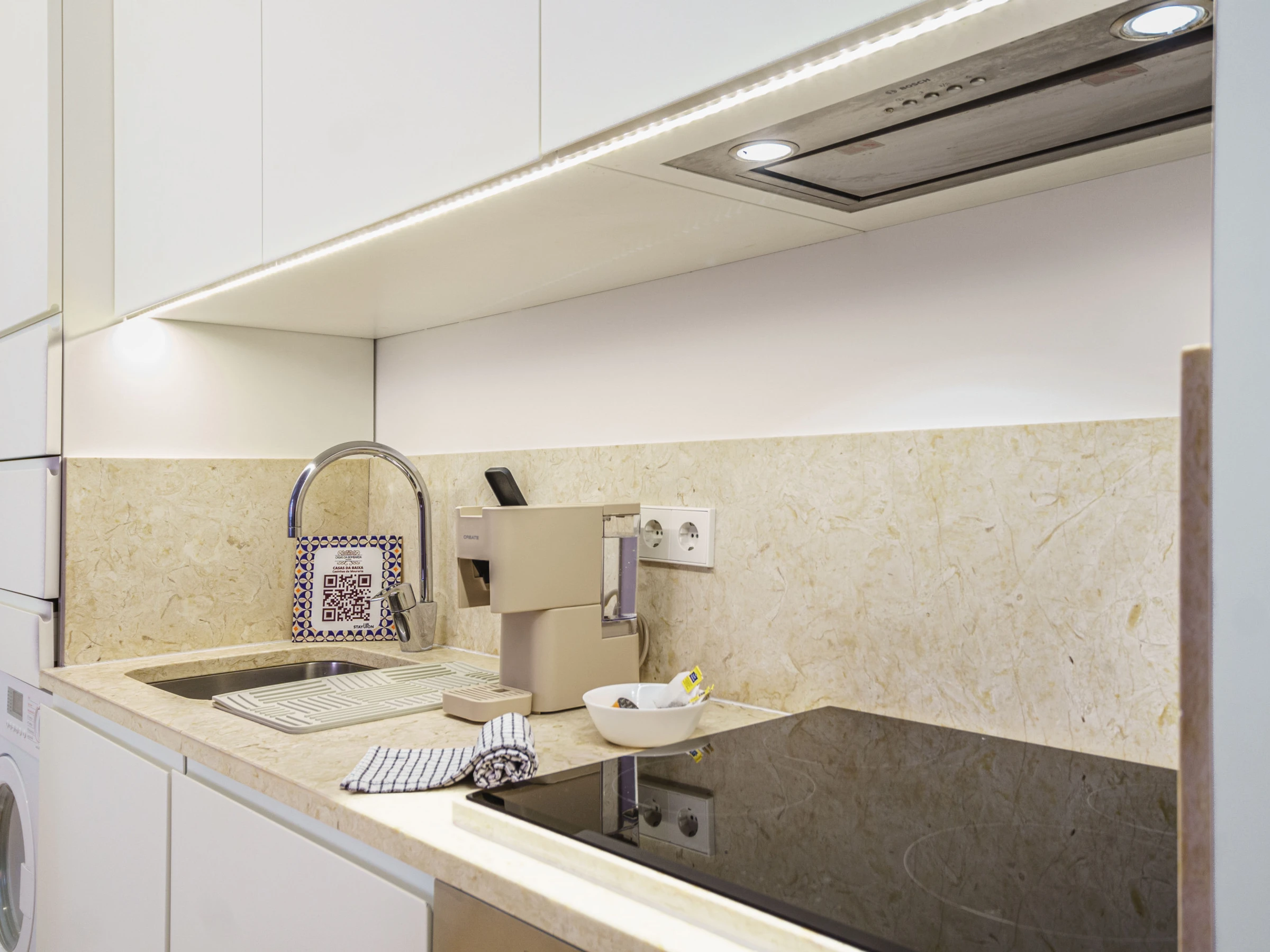 - Small Appliances: Coffee machine, electric kettle and complete kitchen utensils.