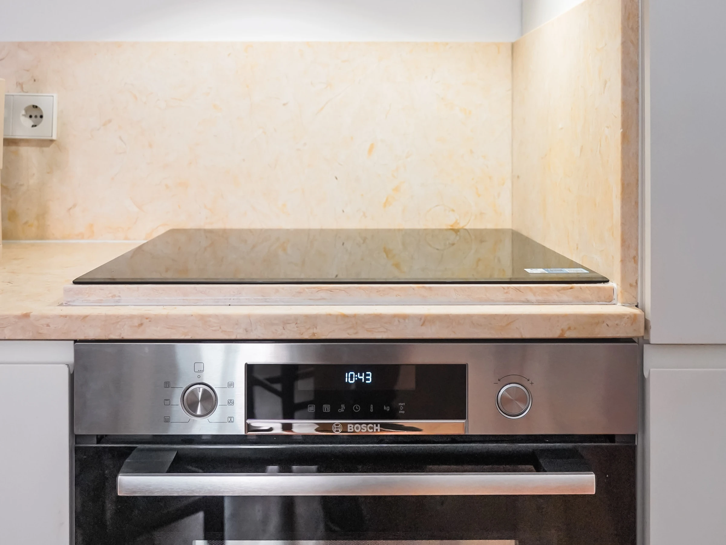 The living area includes an open-plan kitchen with an induction hob, ideal for those who love preparing their own meals with complete independence.