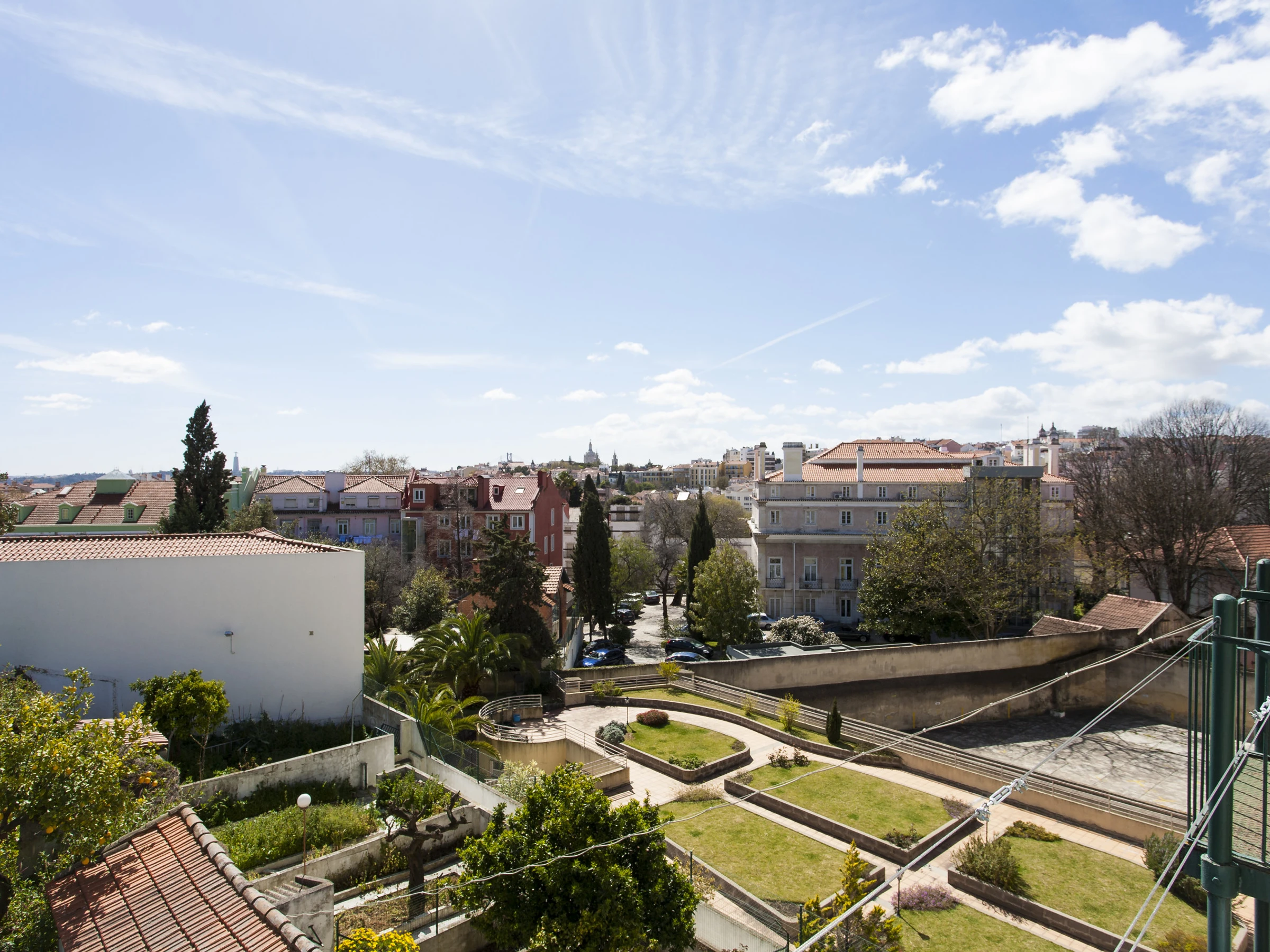 The 200 square meters apartment fitting up to 10 people is located on the third floor of a very charming building, with original ceiling stucco and fine old wooden floors, but without elevator. It features 8 bedrooms, one living and dining room with a fantastic view over Lisbon, 3 complete bathrooms, an equipped kitchen, and plenty of sunlight.