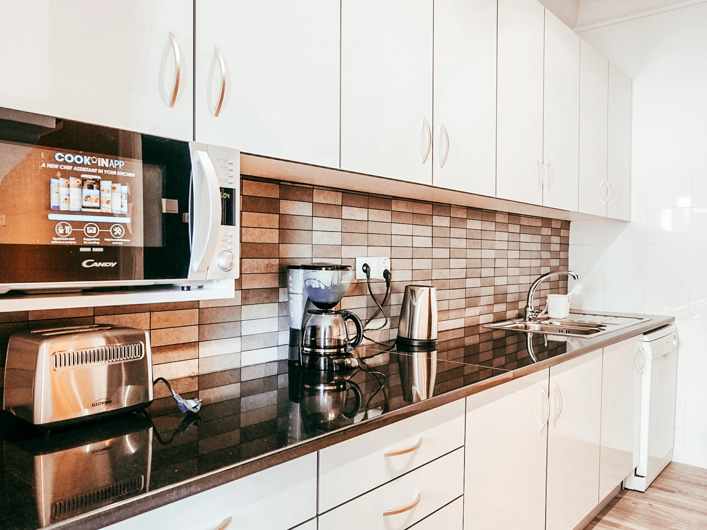 - Fully equipped kitchen with fridge, freezer, oven and hob, microwave, toaster, kettle, coffee maker, dishwasher, cutlery, crockery, kitchen utensils