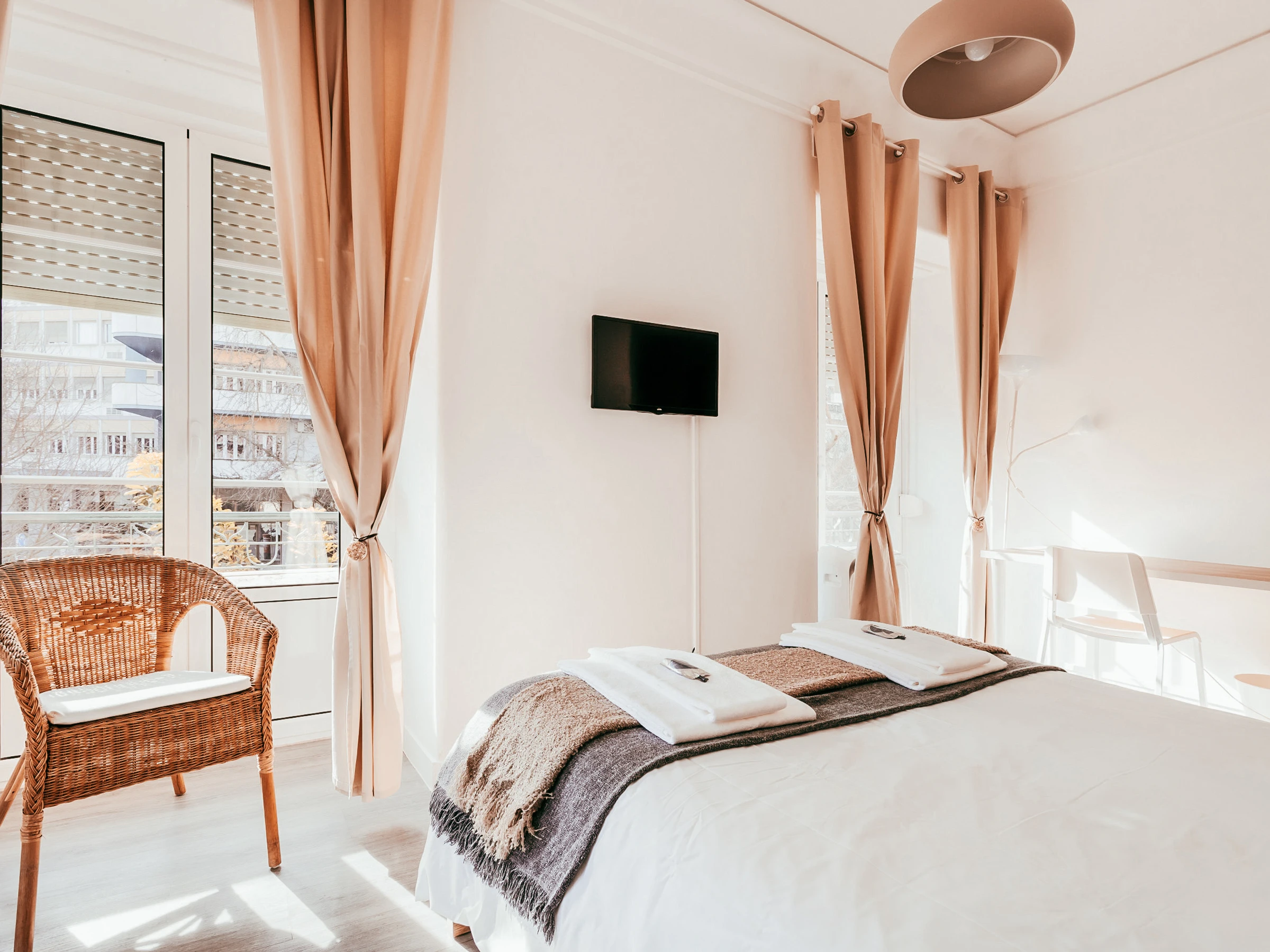 - 6 bedrooms with double bed, lots of natural light, all with TV. 2 of the rooms with balcony.