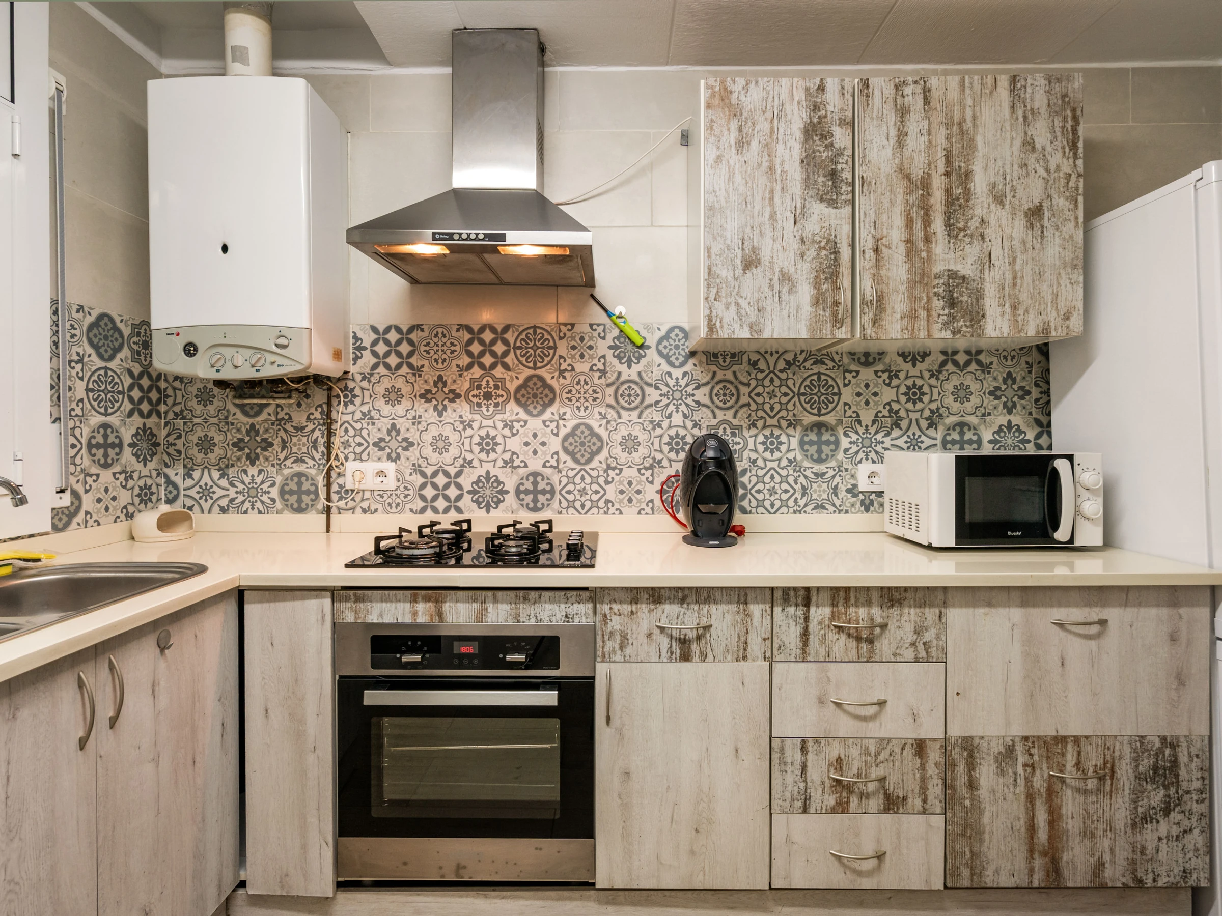 The American kitchen, gas-powered, is equipped with fridge, microwave, oven, freezer, crockery/cutlery, utensils/kitchen, coffee maker and toaster.