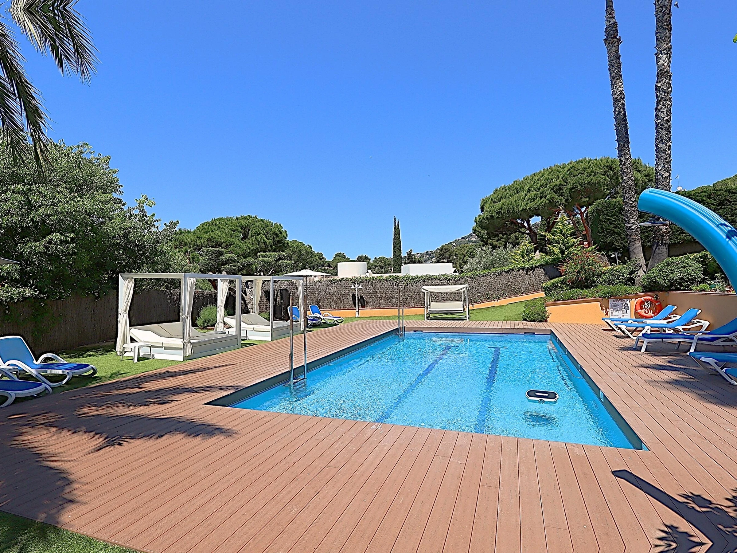 Villa Borghese is a charming Spanish villa with fantastic views of the Mediterranean, with a private pool and a large outdoor area with several terraces and a well-kept garden. Villa Borghese has a maximum capacity of 10 people, has several parking spaces inside the property, garage, games room and a beautiful chill out right next to the pool. Villa Borghese has wifi internet, security alarm and safe to ensure a dream [hidden] conditioning in: All bedrooms + Main living room upstairs + Game room downstairs + kitchen. The villa is made up of 2 floors with an internal staircase. On the first floor we find: -Fully equipped independent kitchen -living room with rest area, tv and dining area -4 bedrooms and 2 bathrooms On the ground floor we find: -2 bedrooms and a bathroom -1 room that offers several board games -laundry -direct access to the garage equipped with a ping-pong table and table football. The best part of Villa Borghese is its exterior, with its fantastic carefully decorated garden, with the large terrace with barbecue and the pool area designed for the smallest detail to provide maximum relaxation. VILLA BORGHESE DOES NOT ACCEPT GROUPS OF YOUNG PEOPLE WITH A MIDDLE AGE LESS THAN 25 YEARS! VILLA BORGHESE DOES NOT ACCEPT PETS !!! Villa Borhese is located in the prestigious urbanization of Montgoda, away from the noise of the city and, at the same time, not far from the center of Lloret de Mar with all the fun of the city. A 10-minute walk will take you to the picturesque bay and Cala Canyelles beach, surrounded by a rocky coastline and a pine forest. On the territory of the bay there are two restaurants, a cafe on the beach, a tourist port. The whole environment around you breathes beauty and tranquility. The center of Lloret de Mar is 5 minutes away by car. Within a 10-minute drive you will find the water park, the children's amusement park and the dolphinarium. A 10-minute drive away is the picturesque town of Tossa de Mar with a medieval fortress. Girona Airport - 30 km Barcelona Airport - 90 km (1 hour and 10 minutes by motorway) Blanes Train Station - 8 km.
