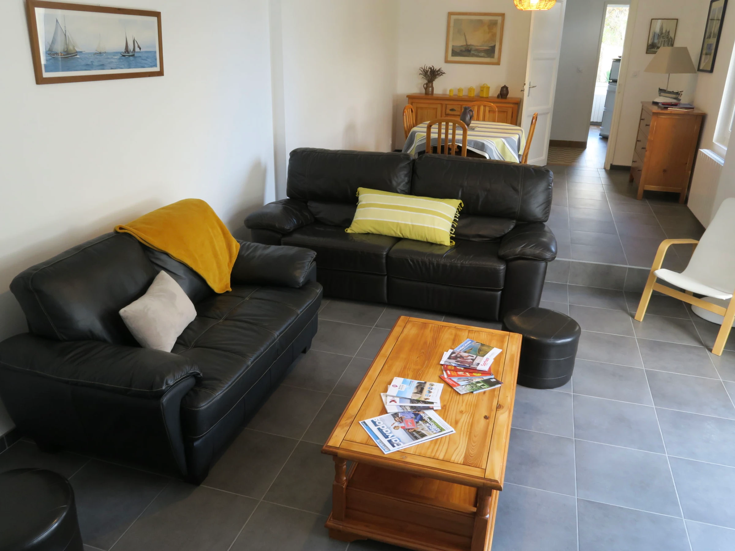 "Mahionias's cottage", 4-room house 86 m2 on 2 levels. Comfortable and modern furnishings: entrance hall. Living/dining room with panoramic window with cable TV (flat screen), hi-fi system and DVD. Exit to the terrace. Kitchen (oven, dishwasher, 4 induction hot plates, toaster, kettle, microwave, electric coffee machine). Sep. WC. Upper floor: 1 room 11 m2 with 1 french bed (140 cm, length 190 cm). 1 room 14 m2 with 1 french bed (160 cm, length 200 cm). Shower, sep. WC. Electric heating. Terrace. Terrace furniture. Facilities: washing machine, children's high chair, baby cot for up to 2 year olds, hair dryer. Internet (WiFi, free). Parking (2 cars). Please note: non-smokers only. Smoke alarm. Offer by a private individual according to  Art. 155, IV of CGI.