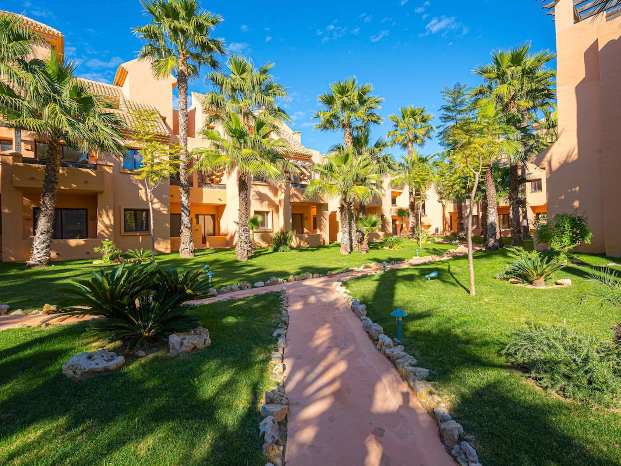 Lovely apartment in Los Alcázares, Murcia, Spain with communal pool for 4 persons. The apartment is situated in a resort, close to restaurants and bars and at 50 m from the beach.
