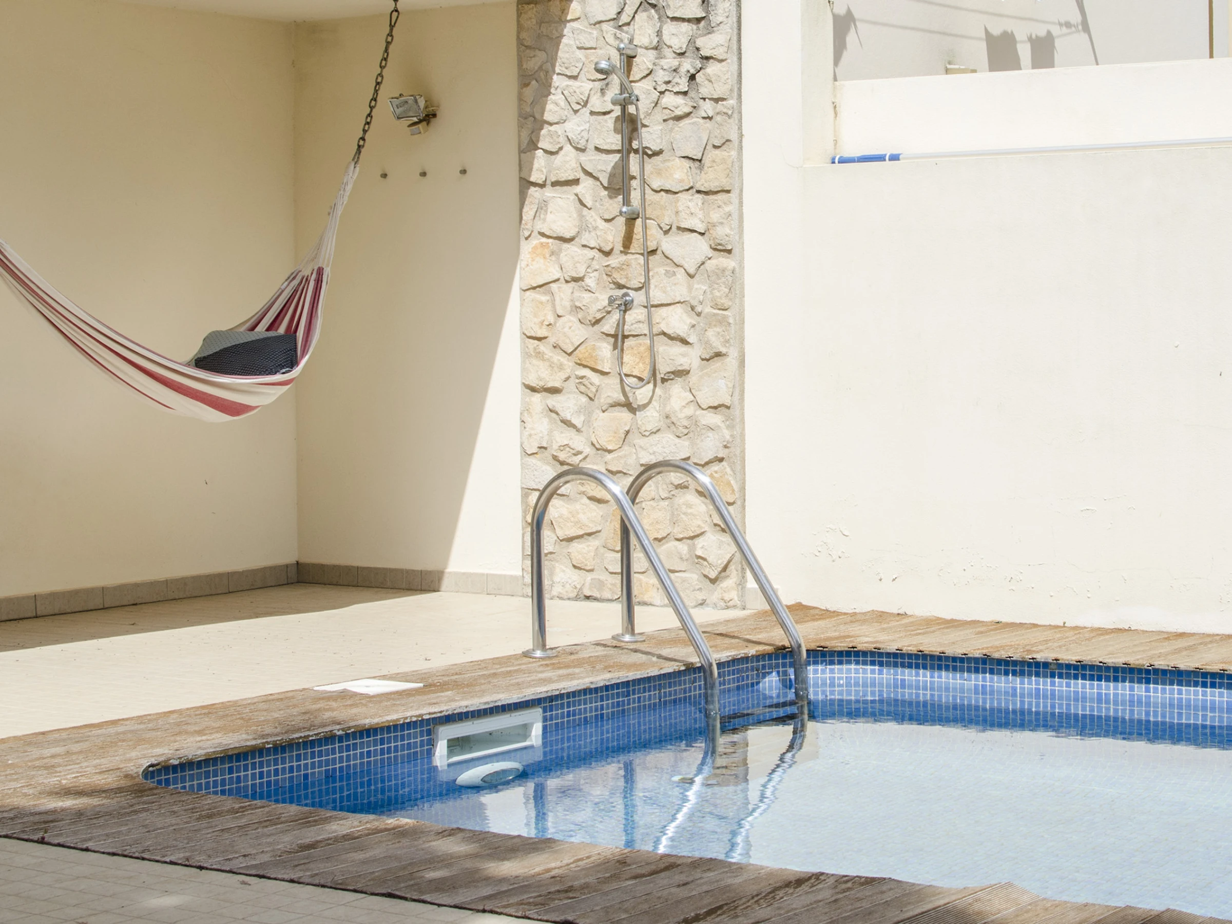 Outside, you’ll find a private pool of about 6 × 3 metres (1–1.8 m deep), with sun loungers and a rocking net where you can unwind and soak up the Algarve sun. A charcoal BBQ and outdoor dining set for six, tucked under a shaded area, create a cosy corner for relaxed al fresco meals. There are parking spots just outside the property for added convenience.