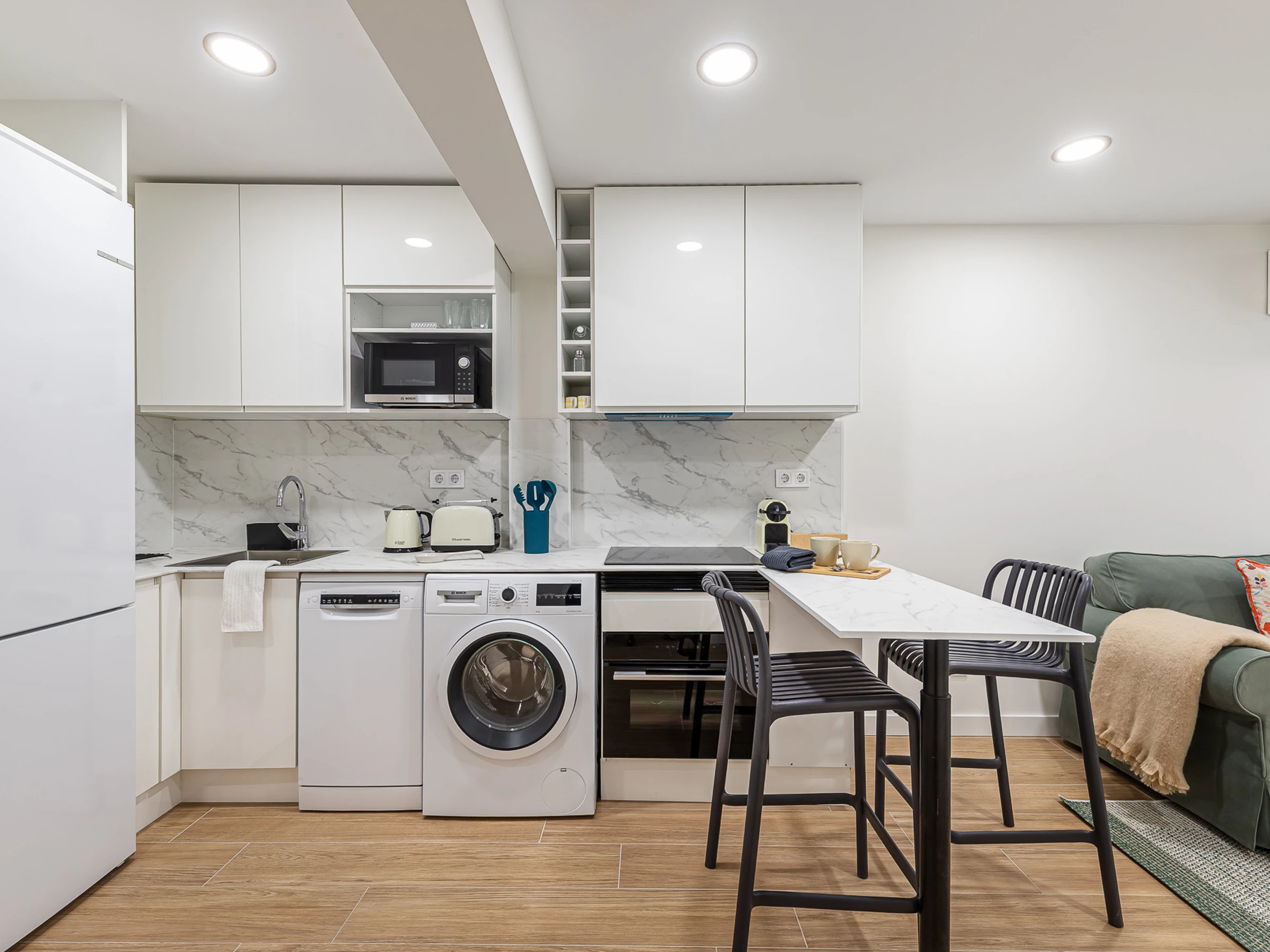 This modern 45-square-metre apartment offers an intimate and functional space with an intelligent layout. It features a bedroom with a comfortable double bed, ideal for resting after a day exploring the city. The environment is equipped with air conditioning and central heating to ensure your comfort in any season of the year.