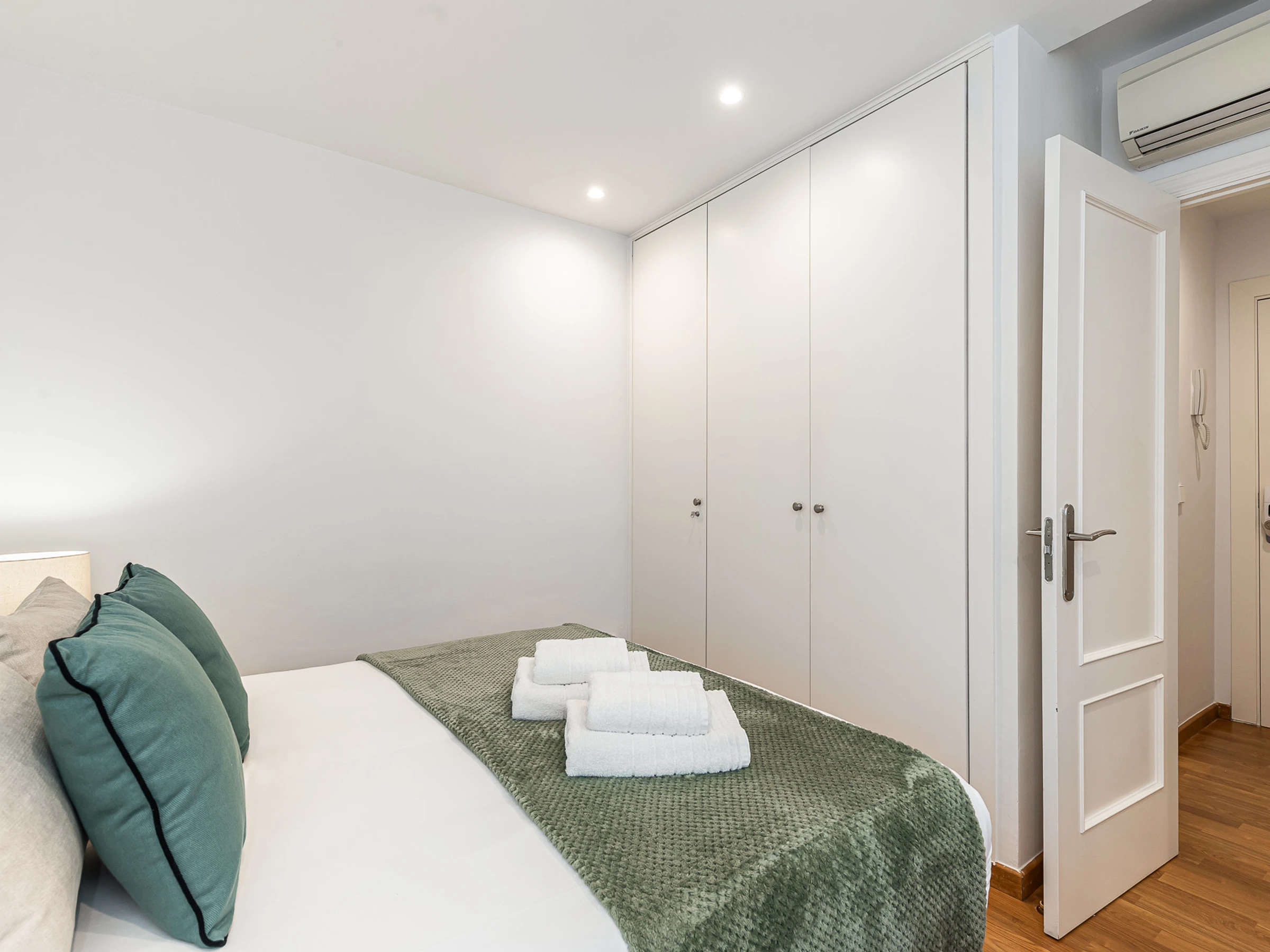 The apartment features an elegantly equipped bedroom that includes a double bed and an additional sofa bed, allowing accommodation for up to 4 people with total comfort. It has air conditioning and heat pump heating to ensure your comfort in any season of the year.