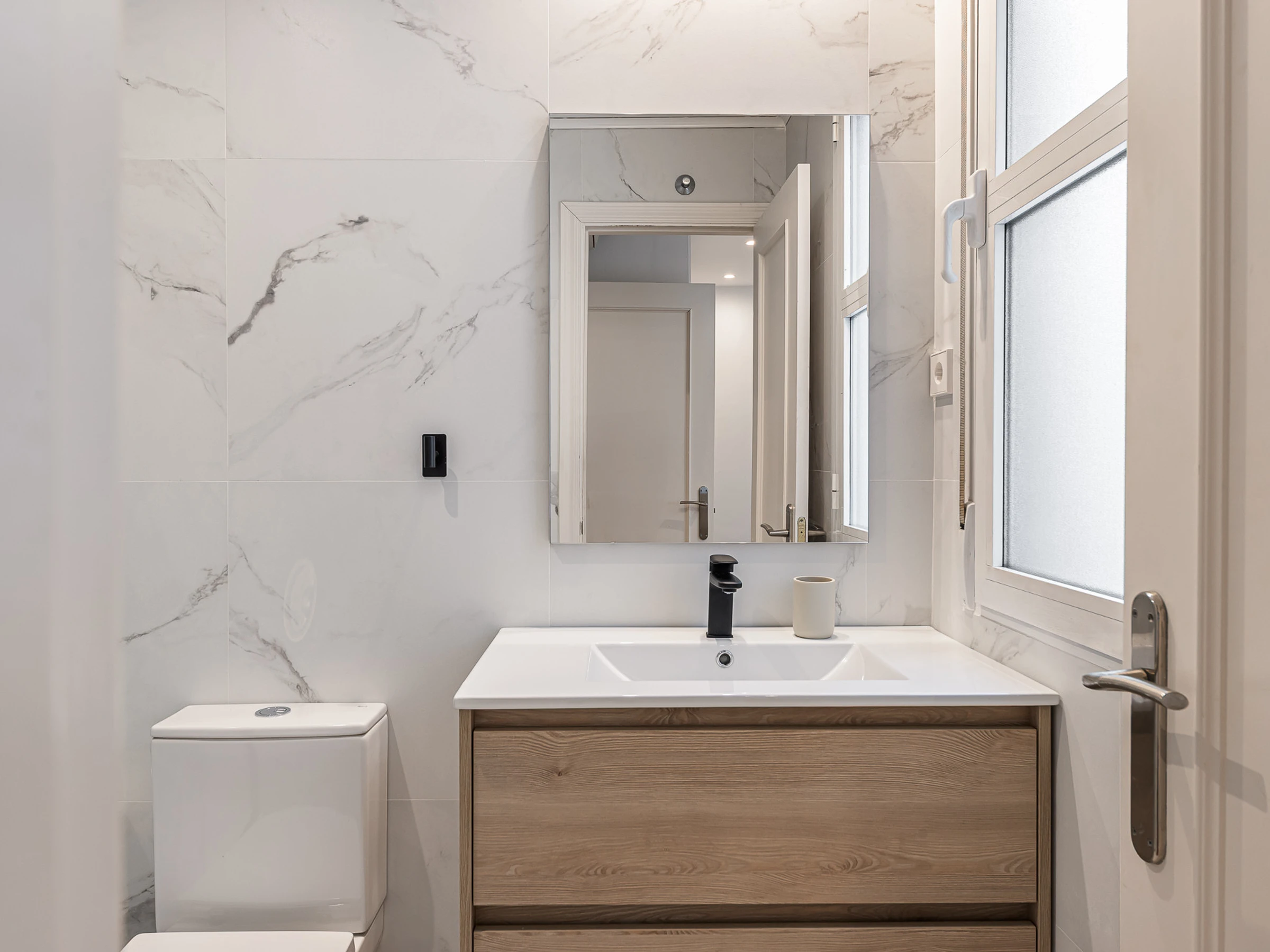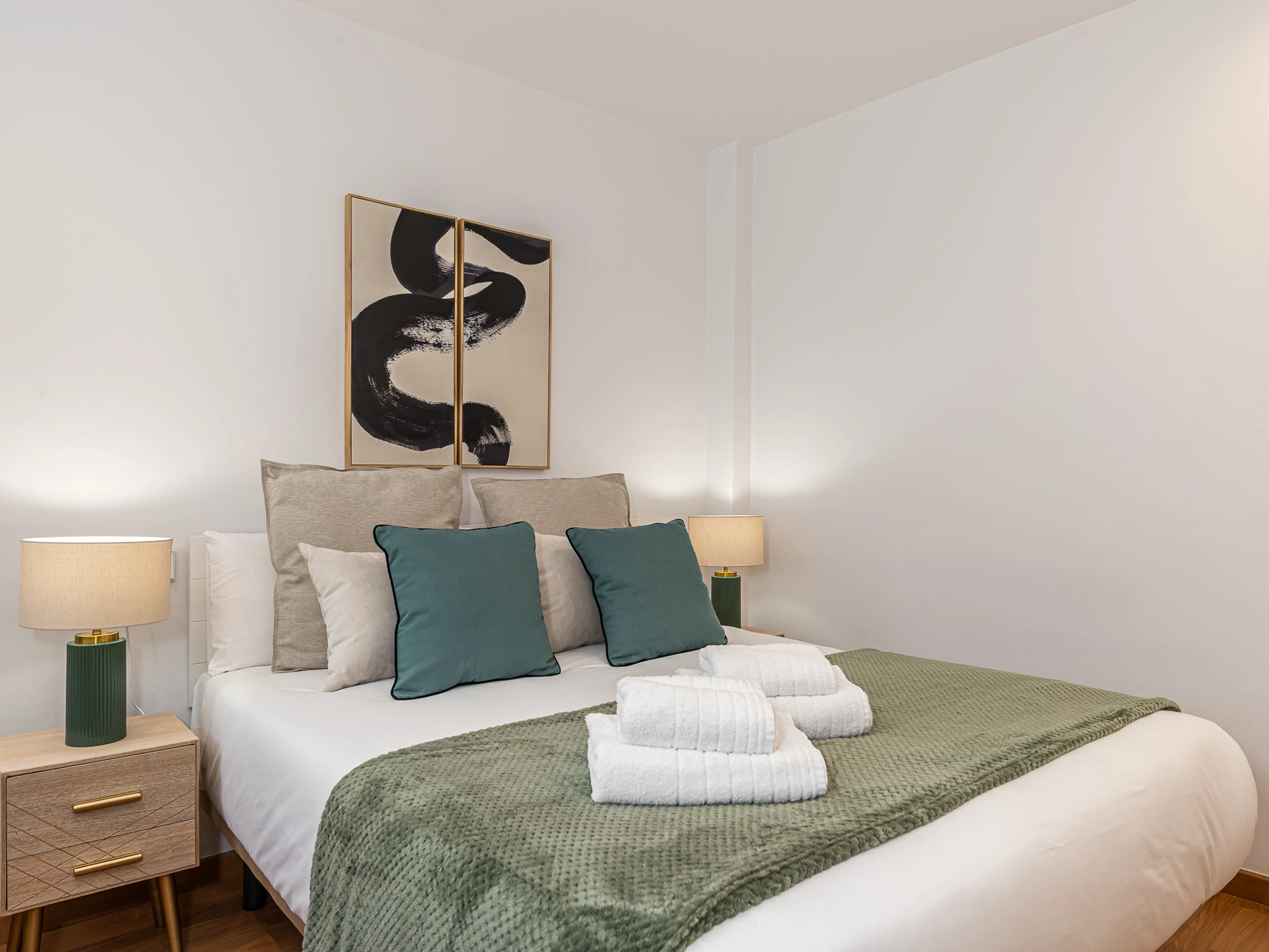 The apartment features an elegantly equipped bedroom that includes a double bed and an additional sofa bed, allowing accommodation for up to 4 people with total comfort. It has air conditioning and heat pump heating to ensure your comfort in any season of the year.