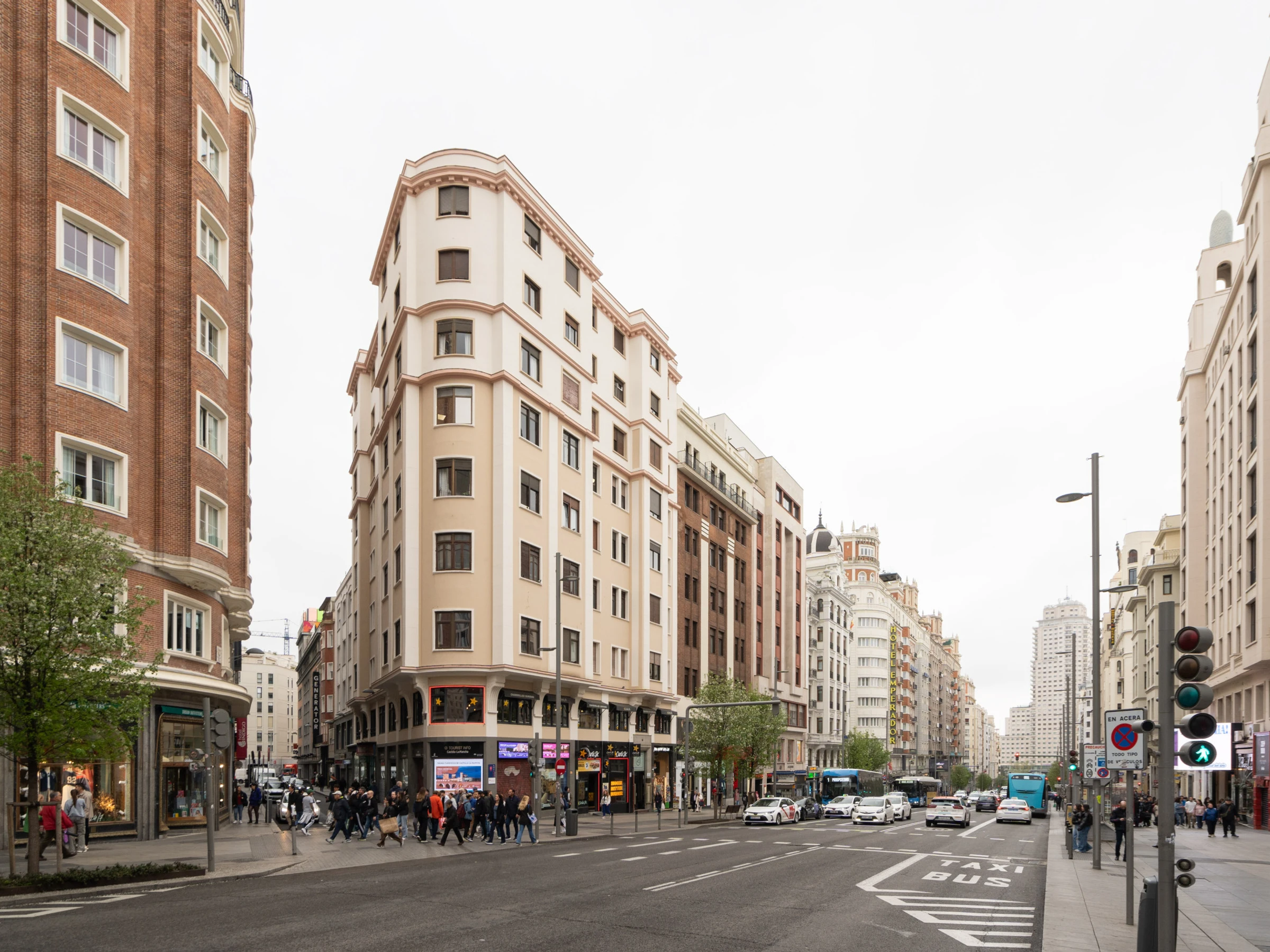 Gran Vía: Just 1 minute walking distance, full of shops, theaters, and restaurants.