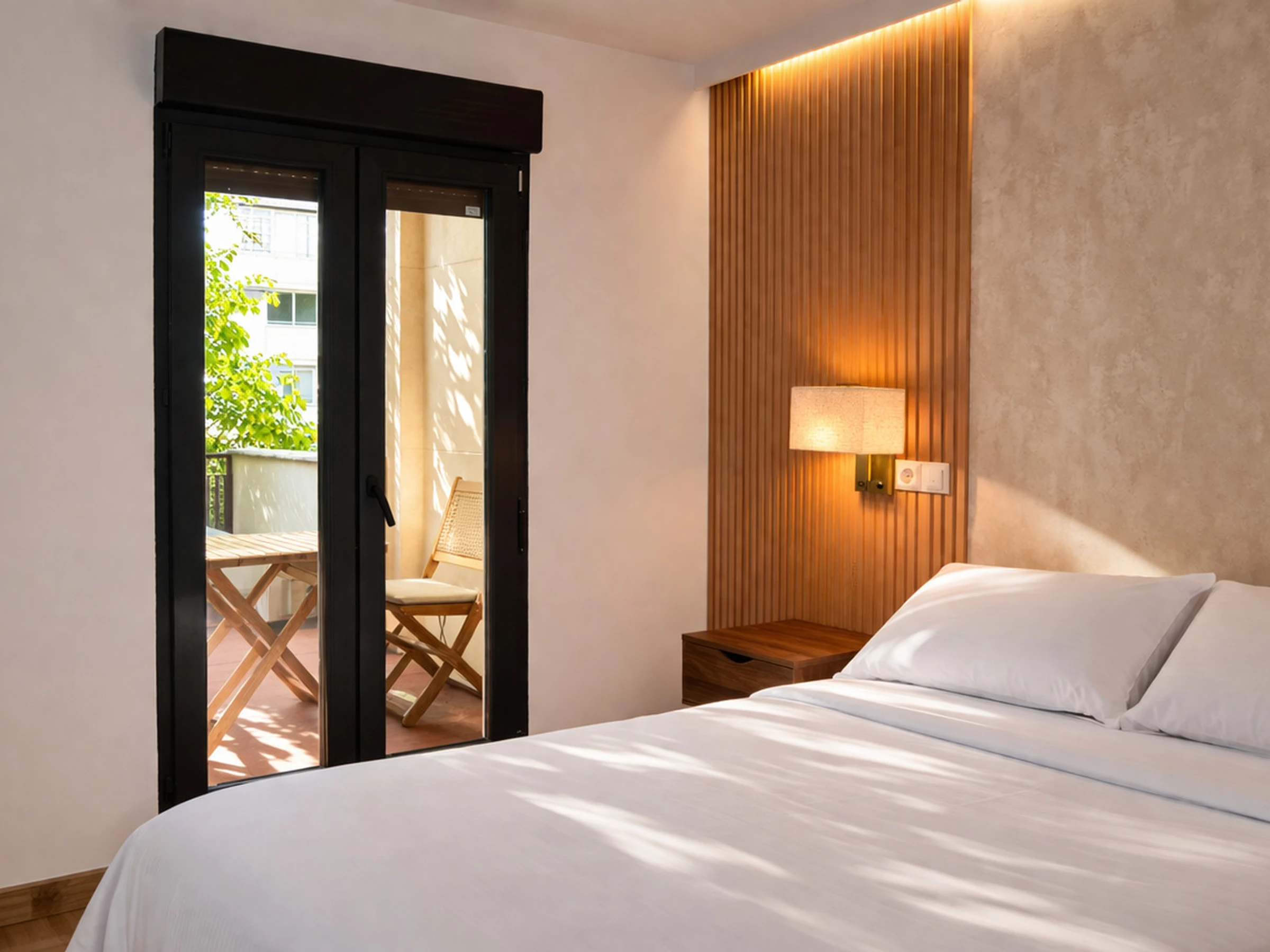 Enjoy the exclusivity and pure air in this sophisticated 50 m² refuge, whose jewel is a private 8 m² terrace ideal for relaxing after a day in the capital. Strategically located next to Las Ventas Bullring, this one[hidden]bedroom apartment offers a total comfort experience for two people. Natural light floods every corner, from its functional American kitchen [hidden] fully equipped with coffee maker, kettle and induction hob for your gourmet breakfasts [hidden] to the living area with heat pump and air conditioning. Designed to facilitate your day[hidden]to[hidden]day, the accommodation includes washing machine, iron and high[hidden]speed WiFi, being the perfect option for both tourist getaways and professionals on medium[hidden]term stays. Whether enjoying a sunset on the terrace or resting in its serene atmosphere, this space combines the technical precision of a modern home with the charm of living Madrid from a privileged location.