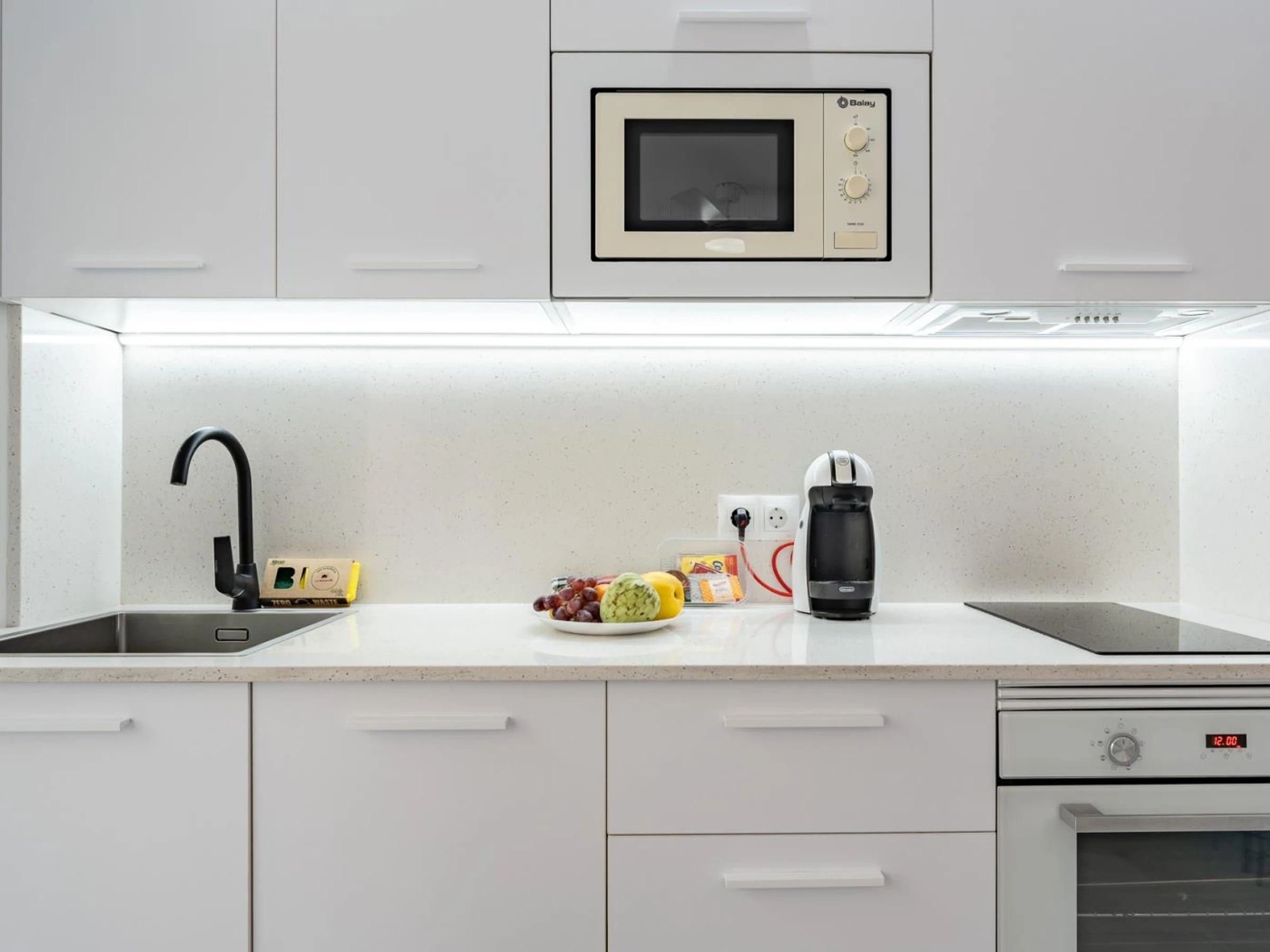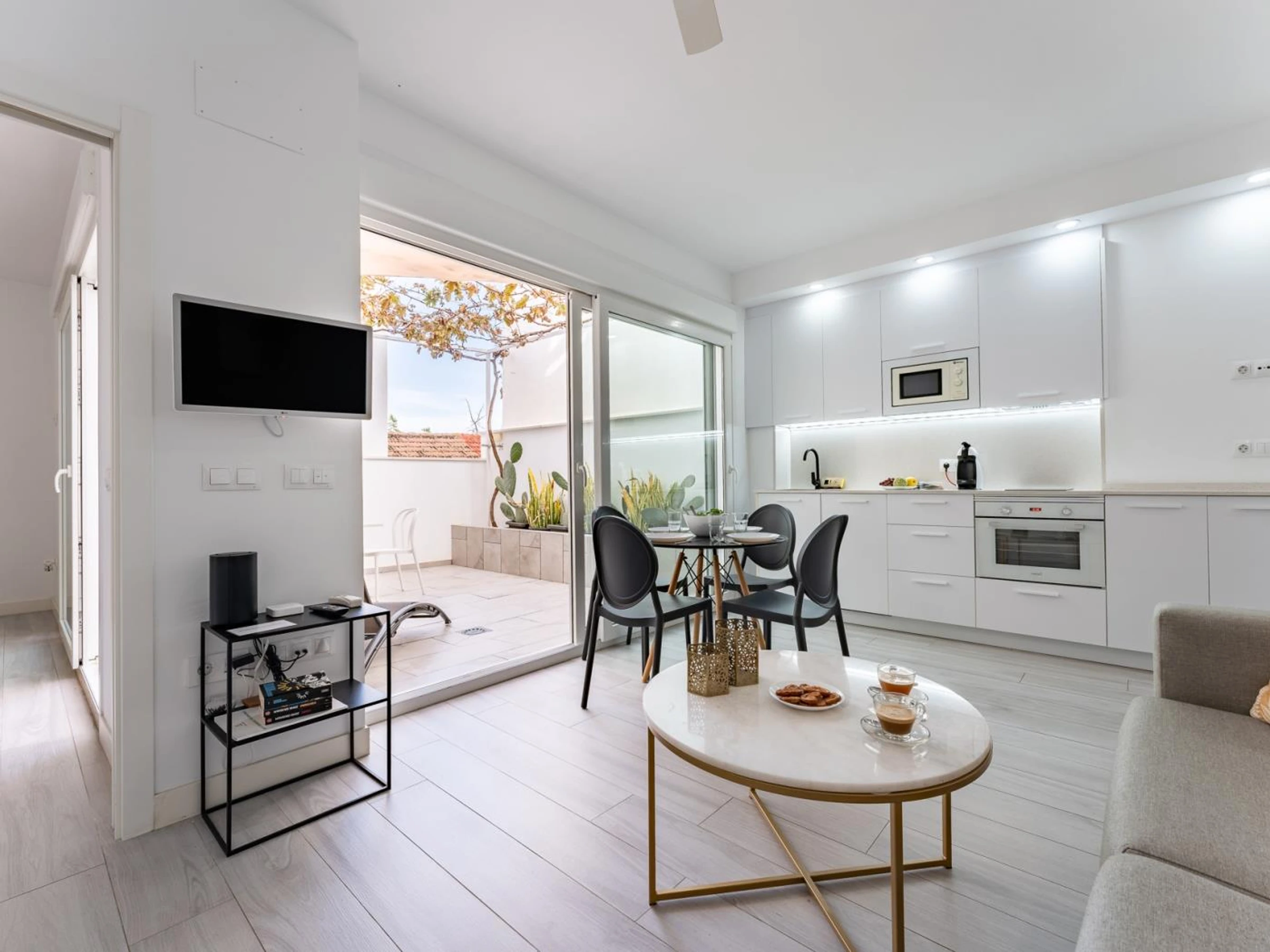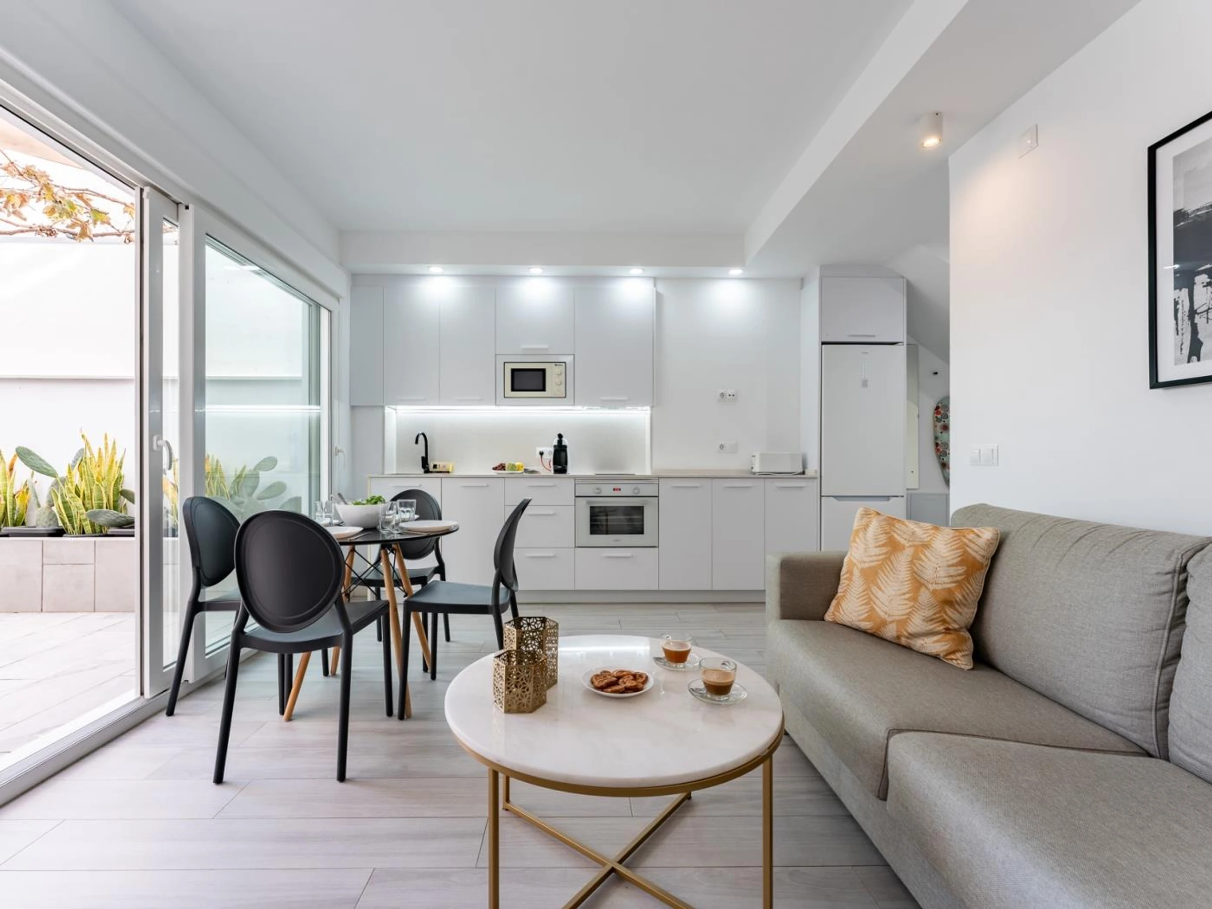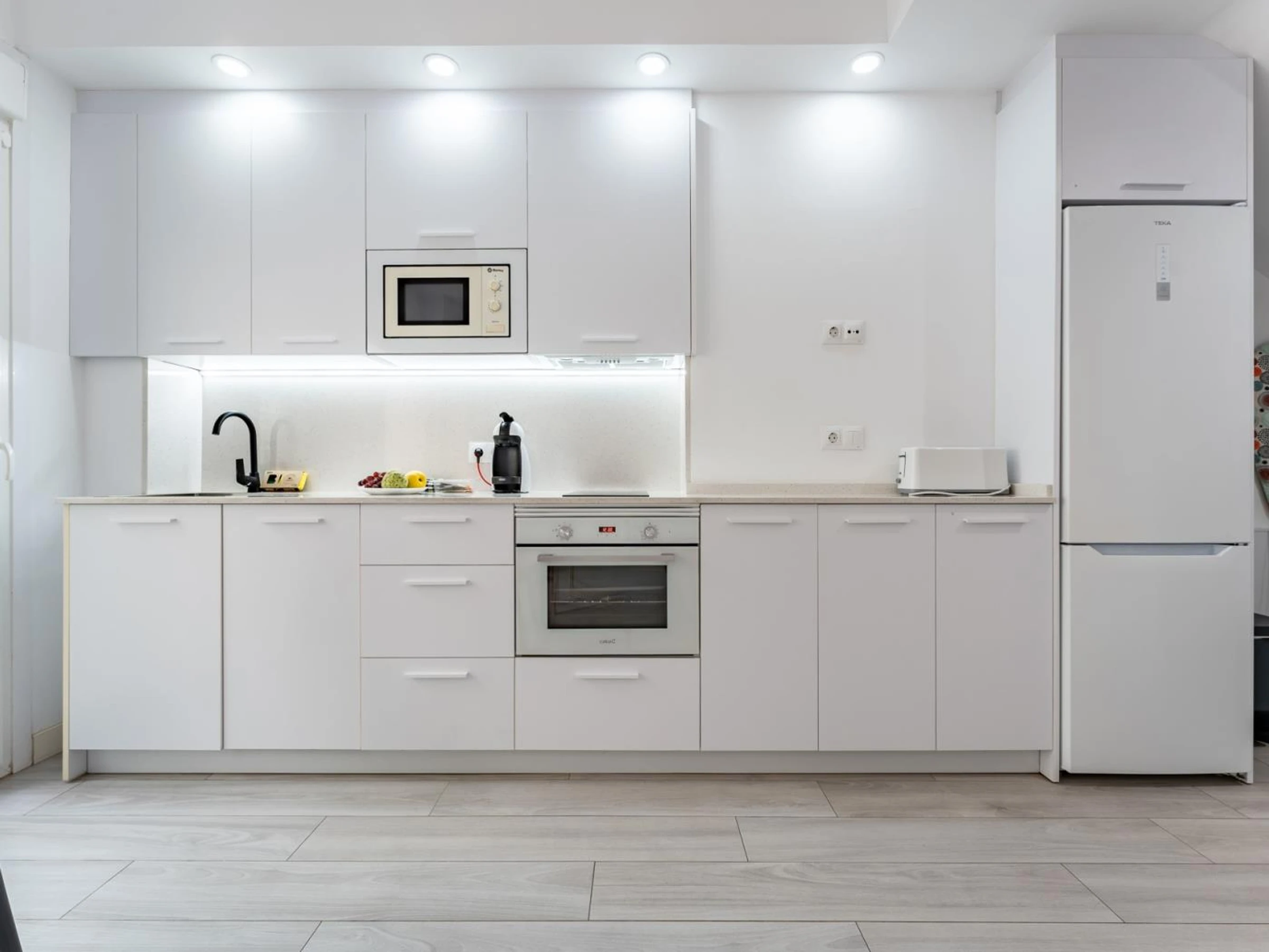 The apartment has a room with a large bed (150 cm), living room with sofa bed and an open concept kitchen; a bathroom with shower and washing machine included. The house has access to a private patio through sliding doors from the living room and bedroom.