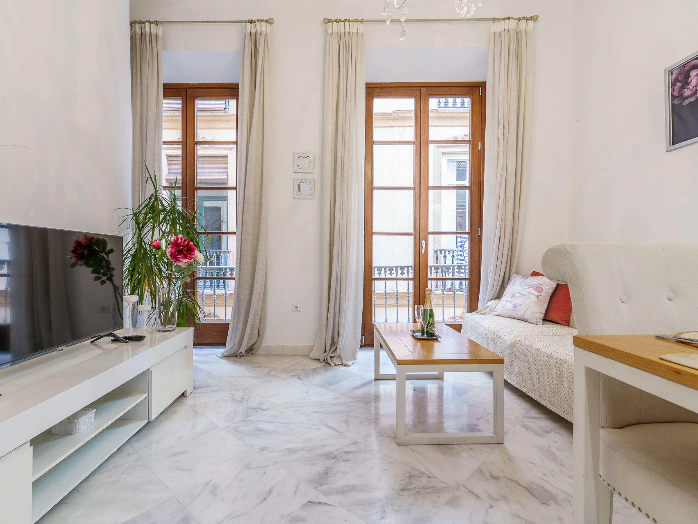 Property located in a very central and quiet pedestrian zone. You will be in the center of the old town of MALAGA, 15 min. walk from the AVE STATION - MARIA ZAMBRANO, close to all the main points of interest both cultural and leisure, the city, and all the necessary services (CENTRAL MARKET, BUS, TRAIN, SHOPS, ETC.). This apartment offers you the possibility of being in the center of MALAGA and visit all its corners without having to use car. While you will be able to rest without noise of cars or discotheques once your day is over."