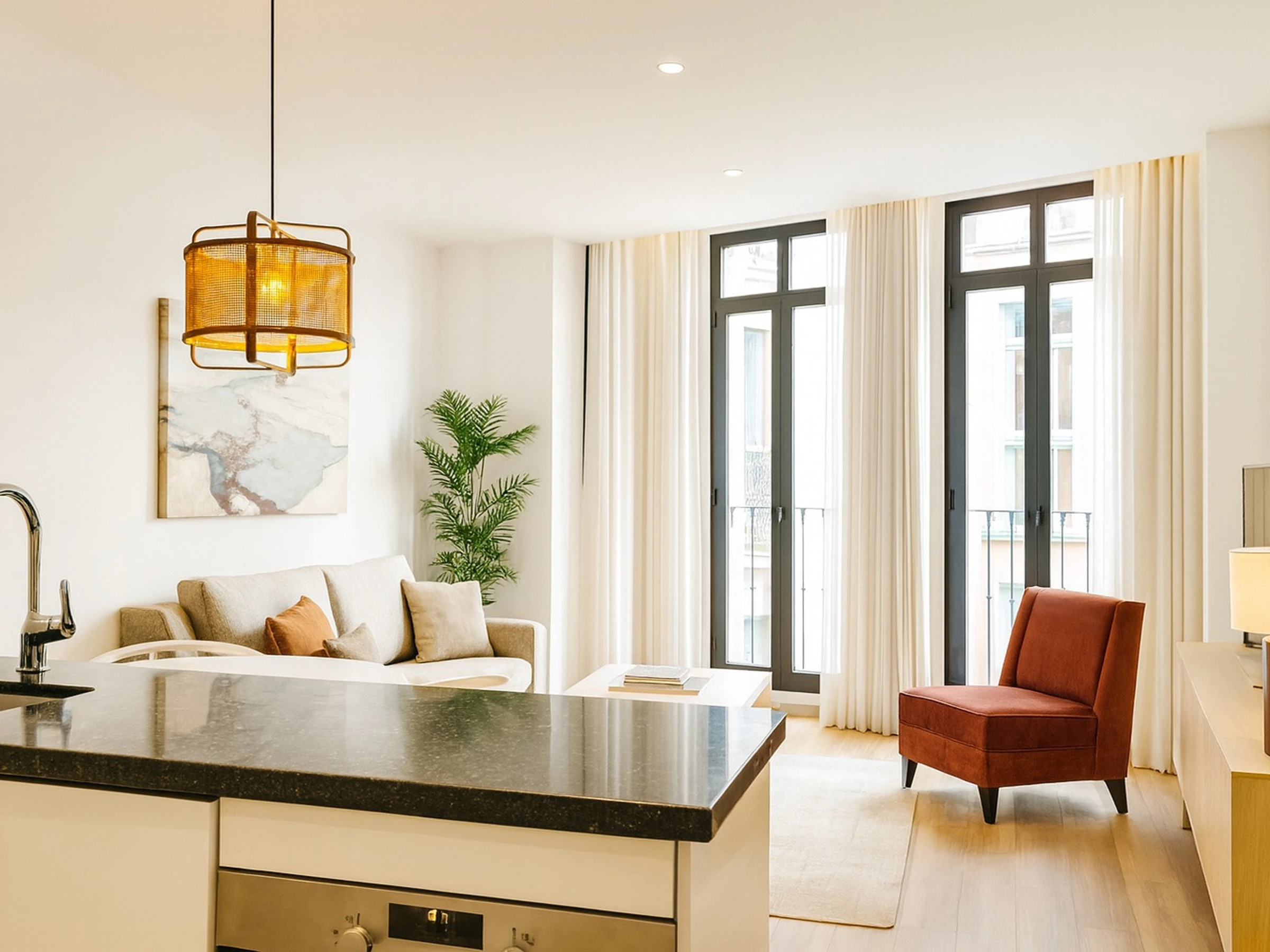 Bathed in natural light, each space has been thoughtfully designed to create an atmosphere of calm and refinement. The living area offers a welcoming setting to relax after a day of exploring the city, while the bedroom ensures an intimate and restful experience. Every detail, from the carefully selected décor to the soft textures and contemporary touches, reflects our dedication to comfort and style.