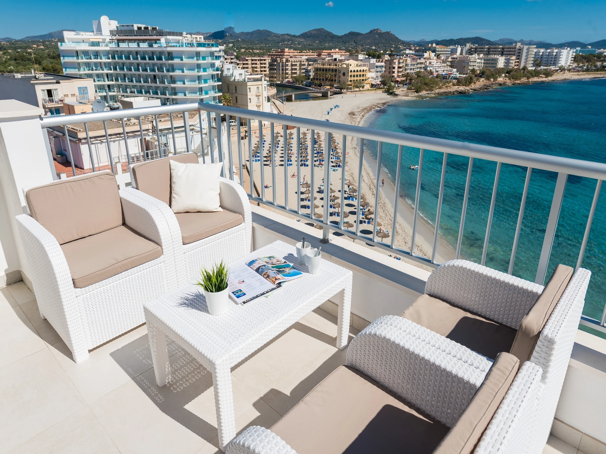 With astonishing views of the white sand and the crystal-clear waters of S’Illot beach, the terrace of this fantastic apartment becomes an absolutely dreamlike place. Imagine taking tasty breakfasts or just relaxing on the outdoor sofas and armchairs contemplating the sea and the mountains with a glass of wine at sunset. Meanwhile, it is obvious that you are not going to lose the opportunity to go down to the beach and spend a magnificent day.