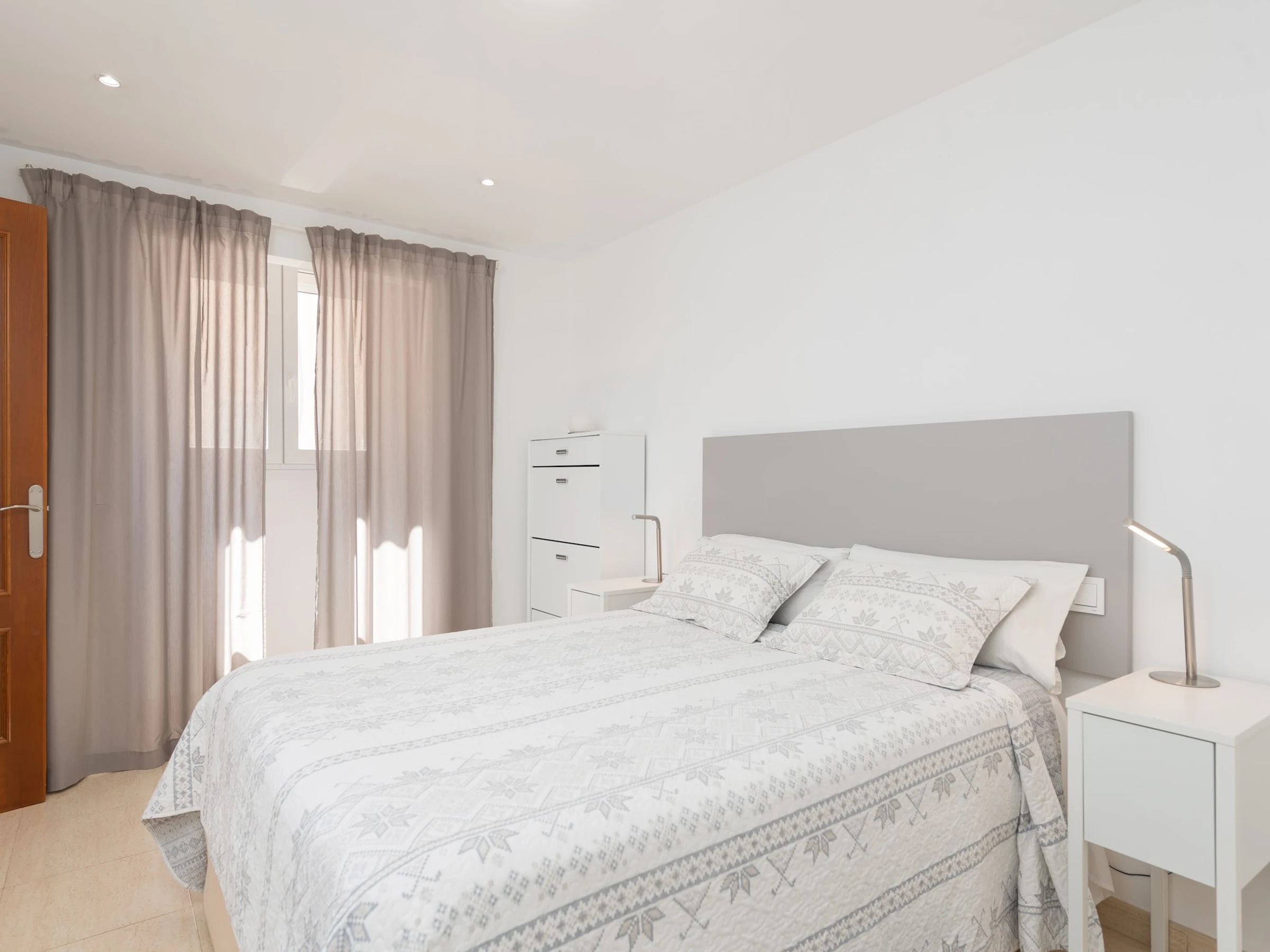 Inside this seventh floor apartment, with elevator, you will find a fantastic kitchen-living-dining room, equipped with a beautiful kitchen with ceramic hob, a dining table and a comfortable sofa where you can relax watching TV or just reading a book next to a spectacular landscape. There are two dormitories with a double bed and wardrobe; one of them has space to accommodate a cot and a high chair. The bathroom of the house has a shower. And, of course, there is a washing machine, an iron and an ironing board.
