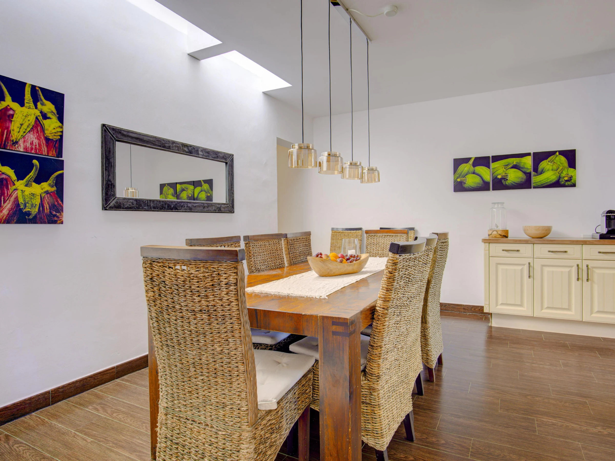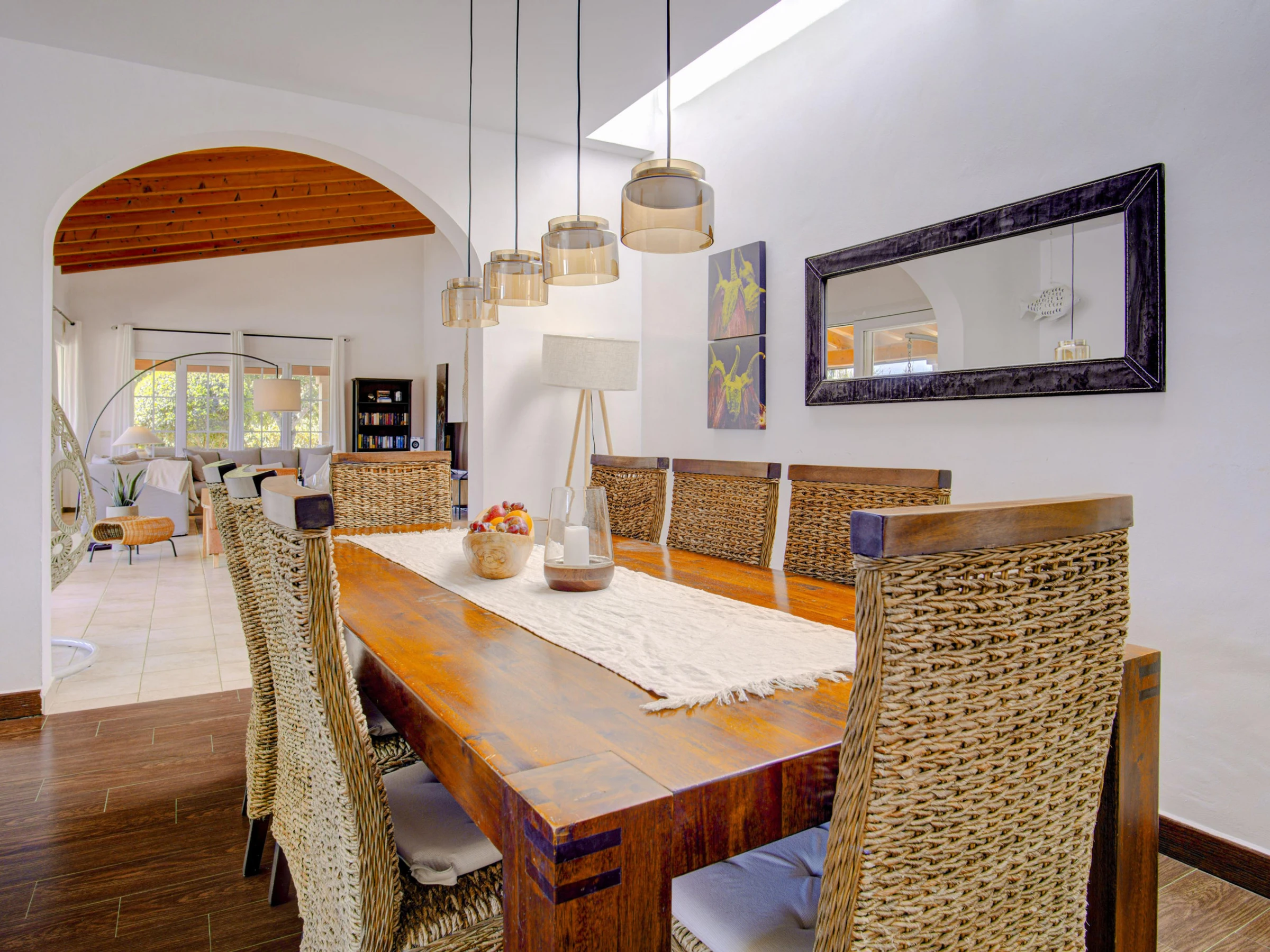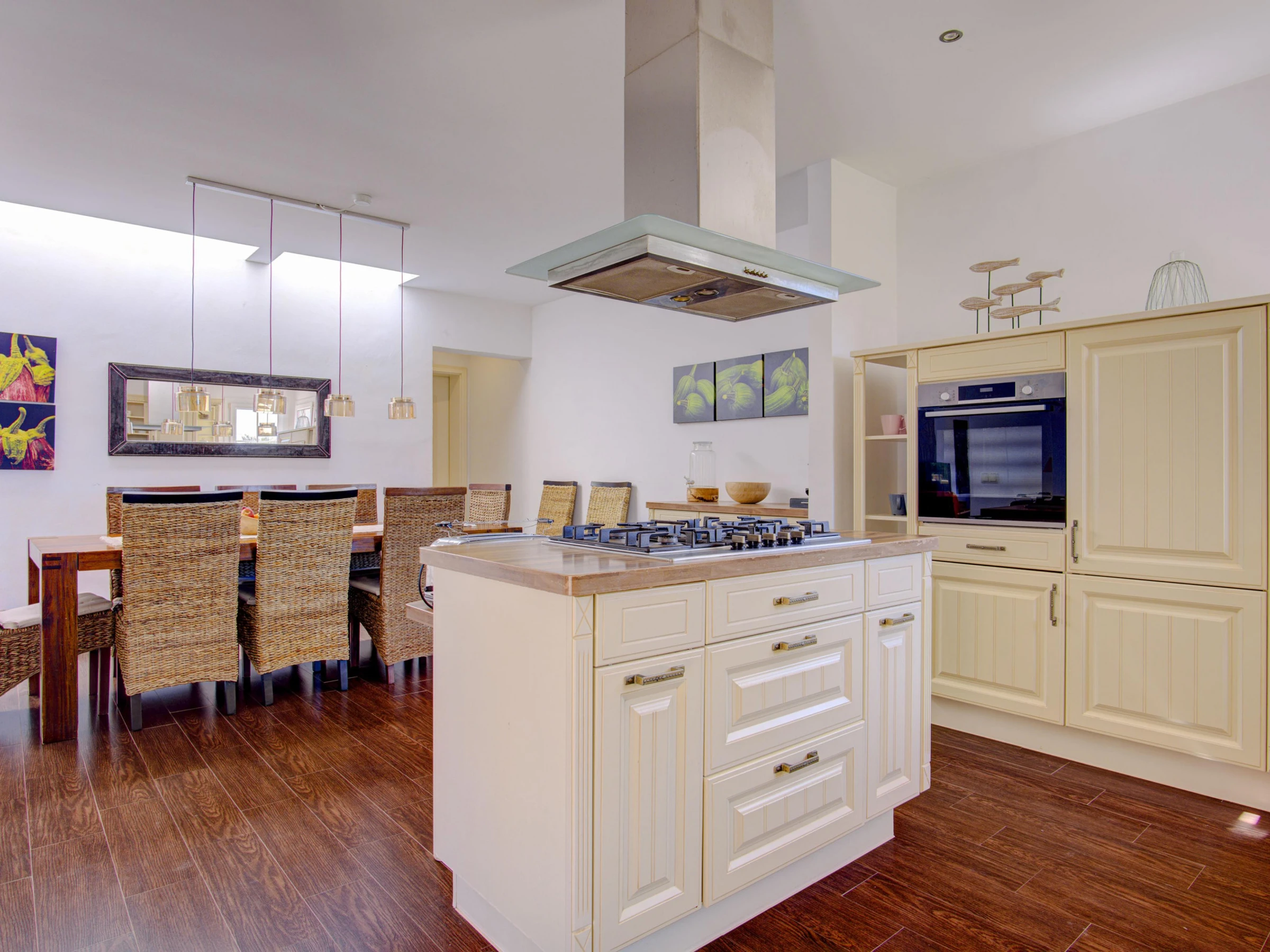 The exteriors are fantastic to enjoy the good weather on the island. You will be able to swim in the chlorine pool that sizes 10 x 5 meters and has a depth that ranges from 0.50 to 1.60 meters. Later on, bask in the sun the sun on the loungers and enjoy a delicious barbecue at the porch. The property is fenced and the privacy is total.
