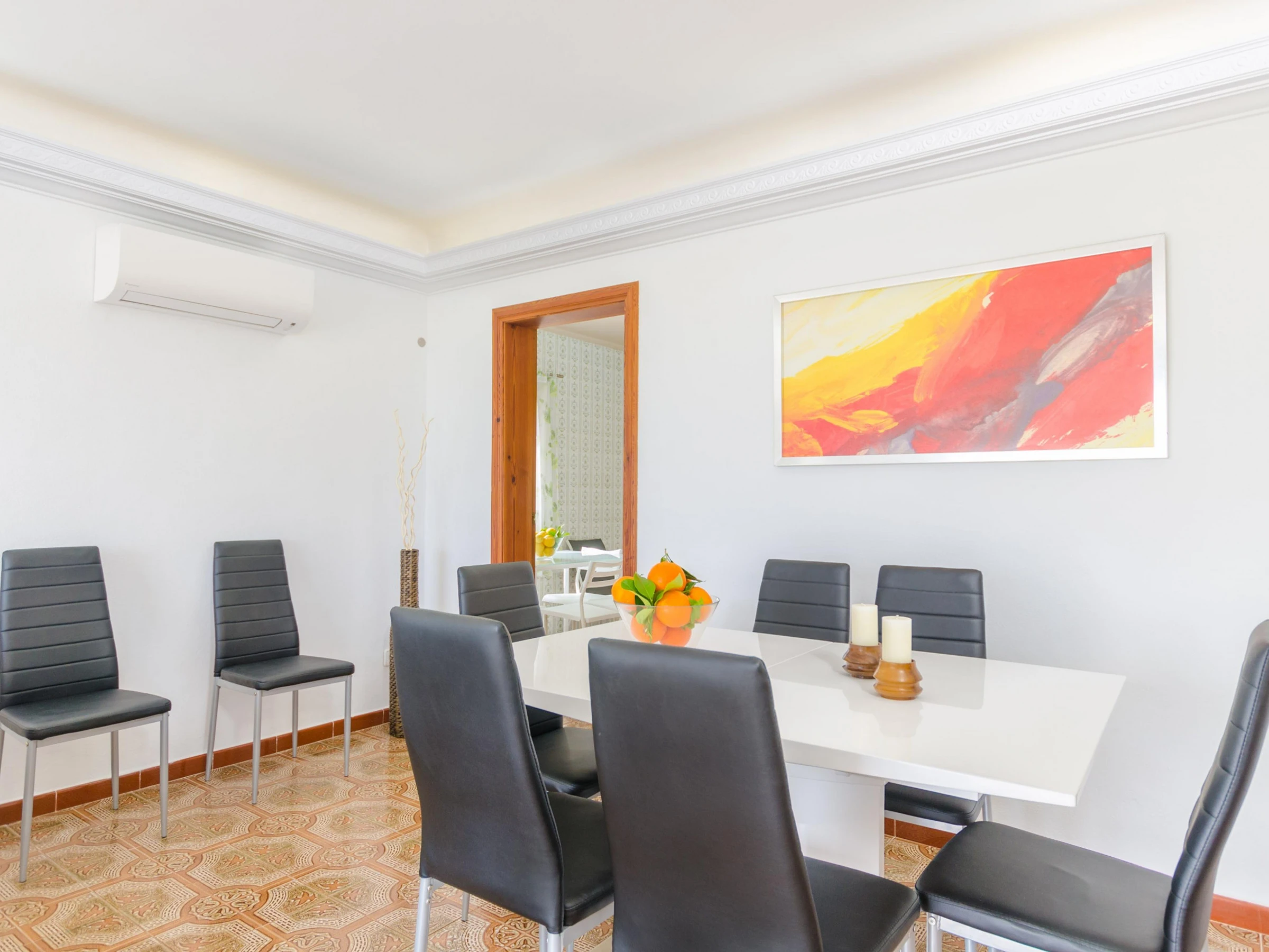 You will live unforgettable moments and record amazing memories in every of the terraces that surround this house. The main character is the chill-out terrace, pointed to a spectacular landscape, where you will feel the sea breeze while reading a book or lying on the sun loungers under the sun shade, or admiring the sunset. Another more protected terrace is perfect for meals outdoors like delicious barbecued vegetables. But, in addition, there is an extraordinary hidden corner in front of the house, a famous archaeological remain known as "talaiot", worth a visit before going to the sea swim.