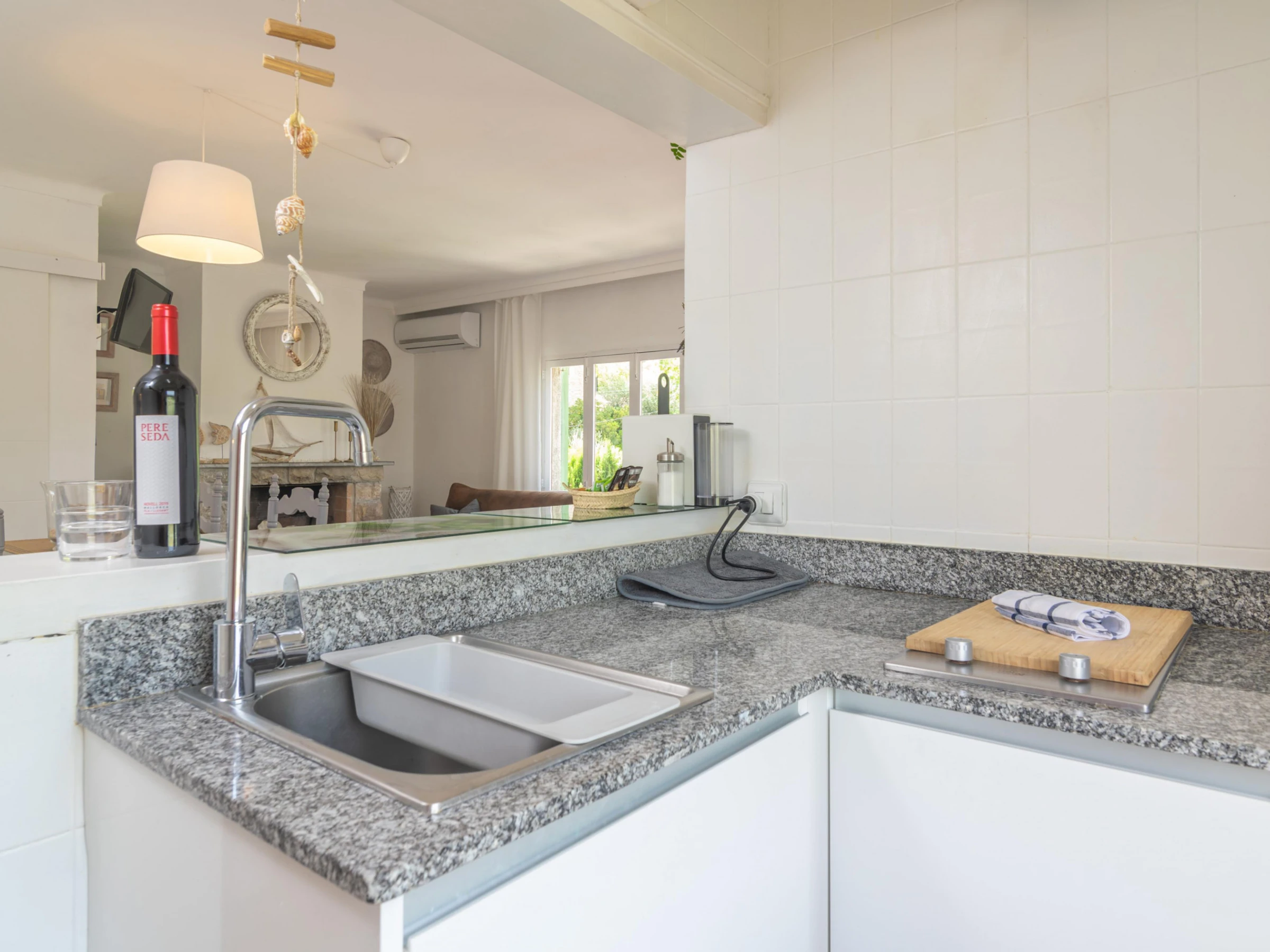 The property is a two-storey house, although all the rooms are distributed on the first floor. On that floor, there is a quintessential living-dining room, with A/C, perfect to watch satellite TV while you sit on the sofas or even when you eat all together. The kitchen is also right there behind a little bar and it offers a ceramic cooktop. Then, there are two bedrooms, one with a double bed and the other with twin beds. Finally, there is a unique bathroom in the entire house and it has a bathtub. On the ground floor there is merely the laundry, which has a washing machine, an iron and an ironing board.