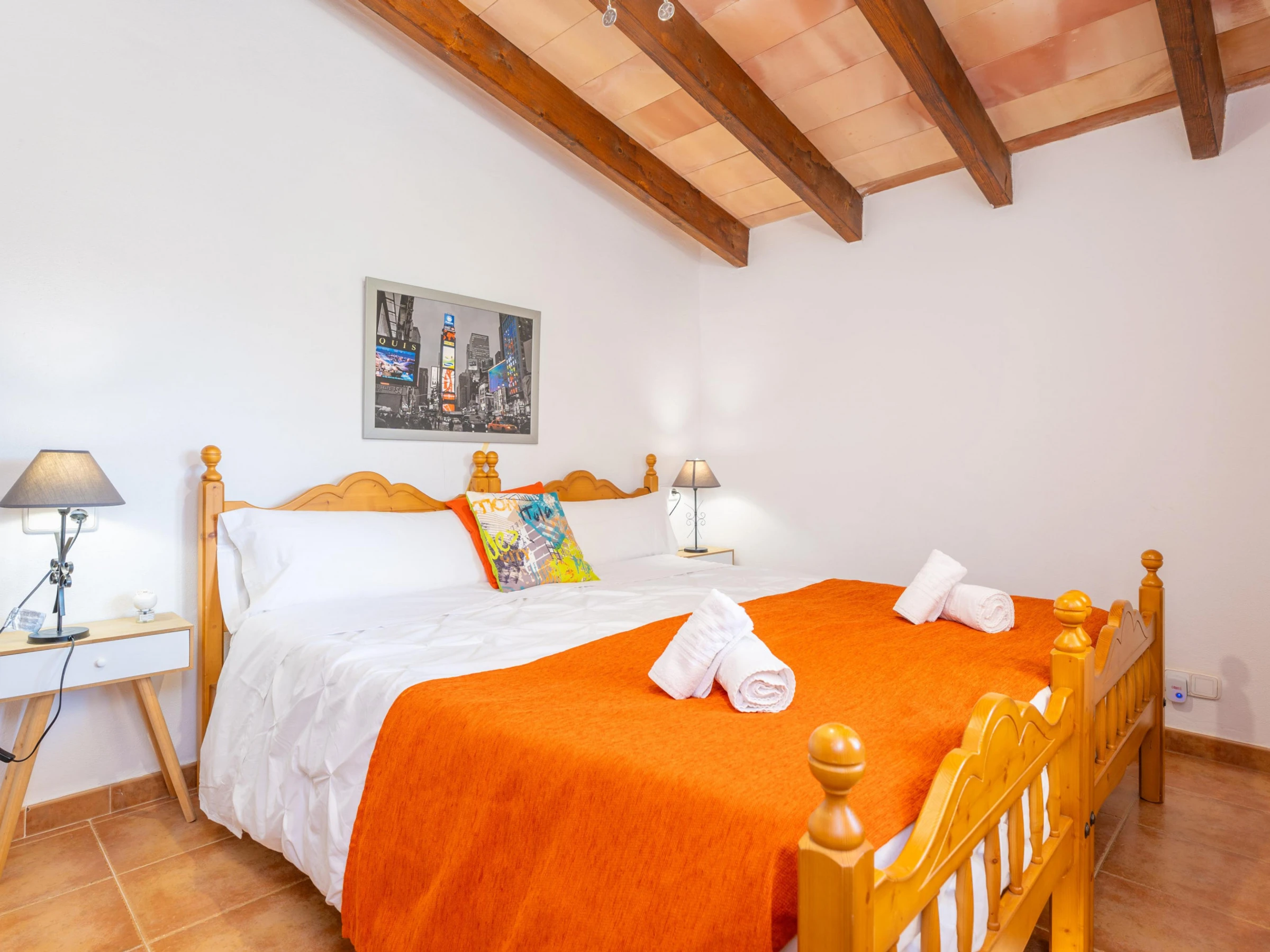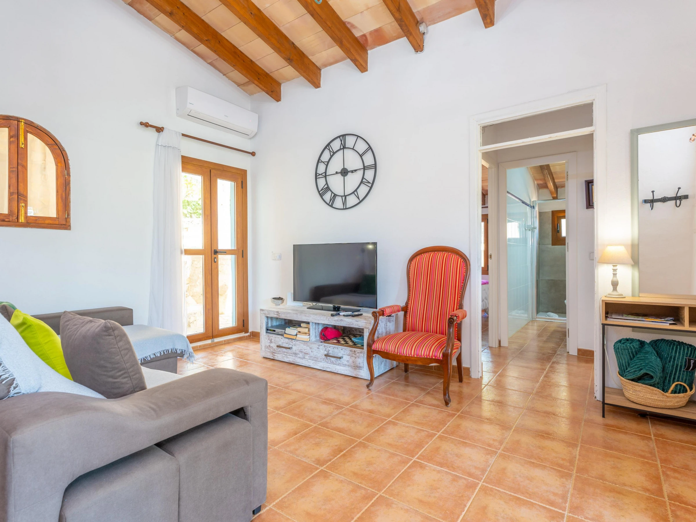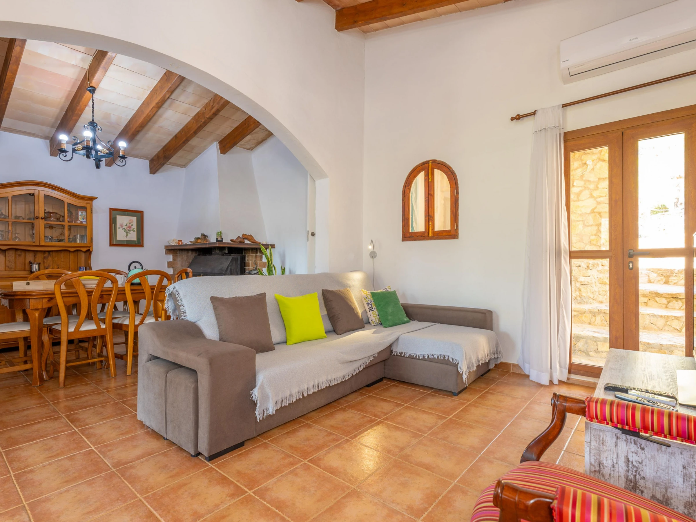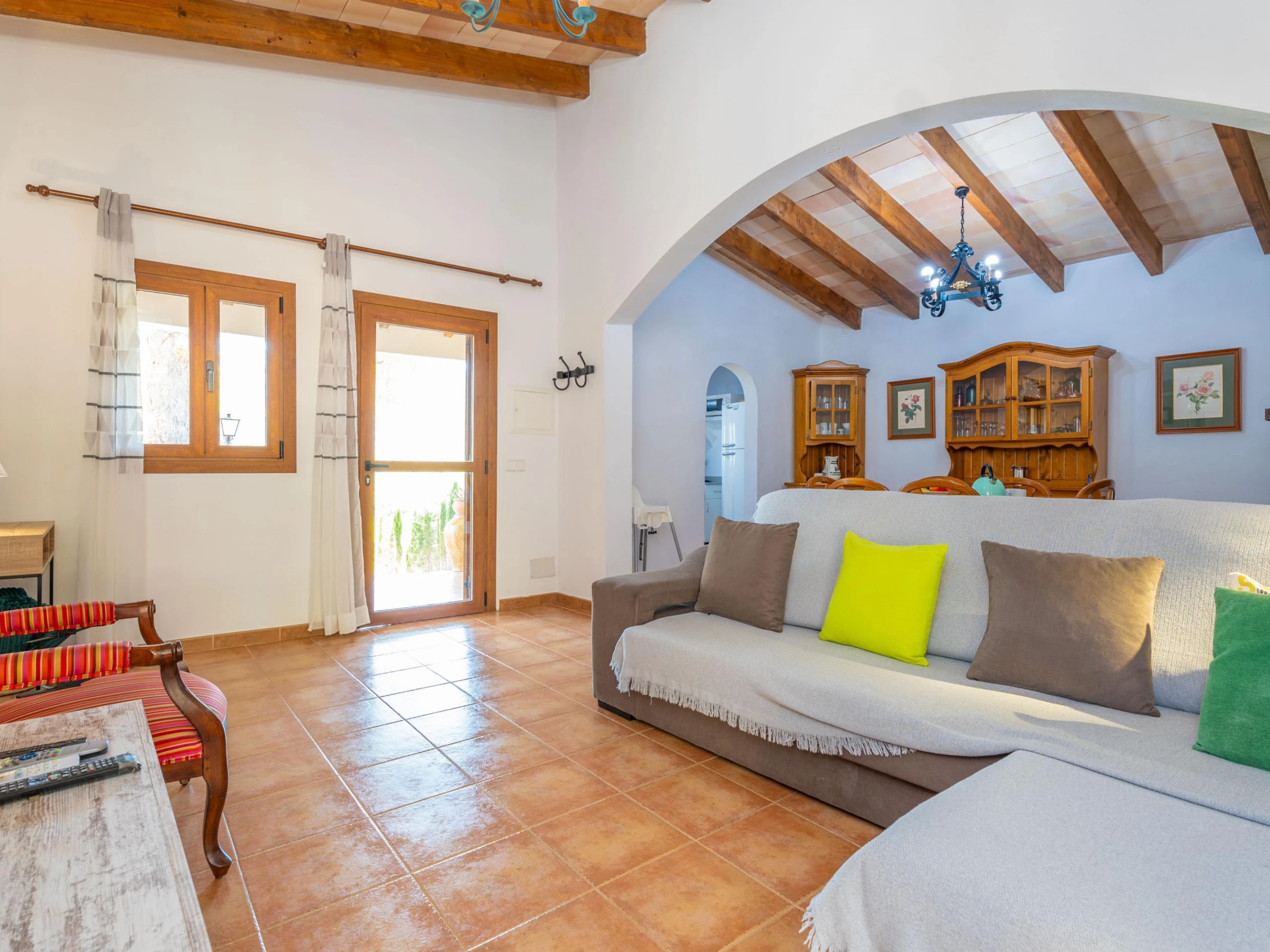 This house is located in a very quiet area, surrounded by mountains, but at the same time, only 1.3 km from Mancor de la Vall. You will find the basic services at the village. Supermarkets, shops and a variety of restaurants can be found in the city of Inca. The house is the ideal starting point for cyclists and hikers. The nearest beach is Puerto de Alcudia, 26 km from the property, where apart from the sea and the sun you can practise water sports or enjoy the night life. If you like golf, the nearest course is in Pollensa, 26.3 km from the house.