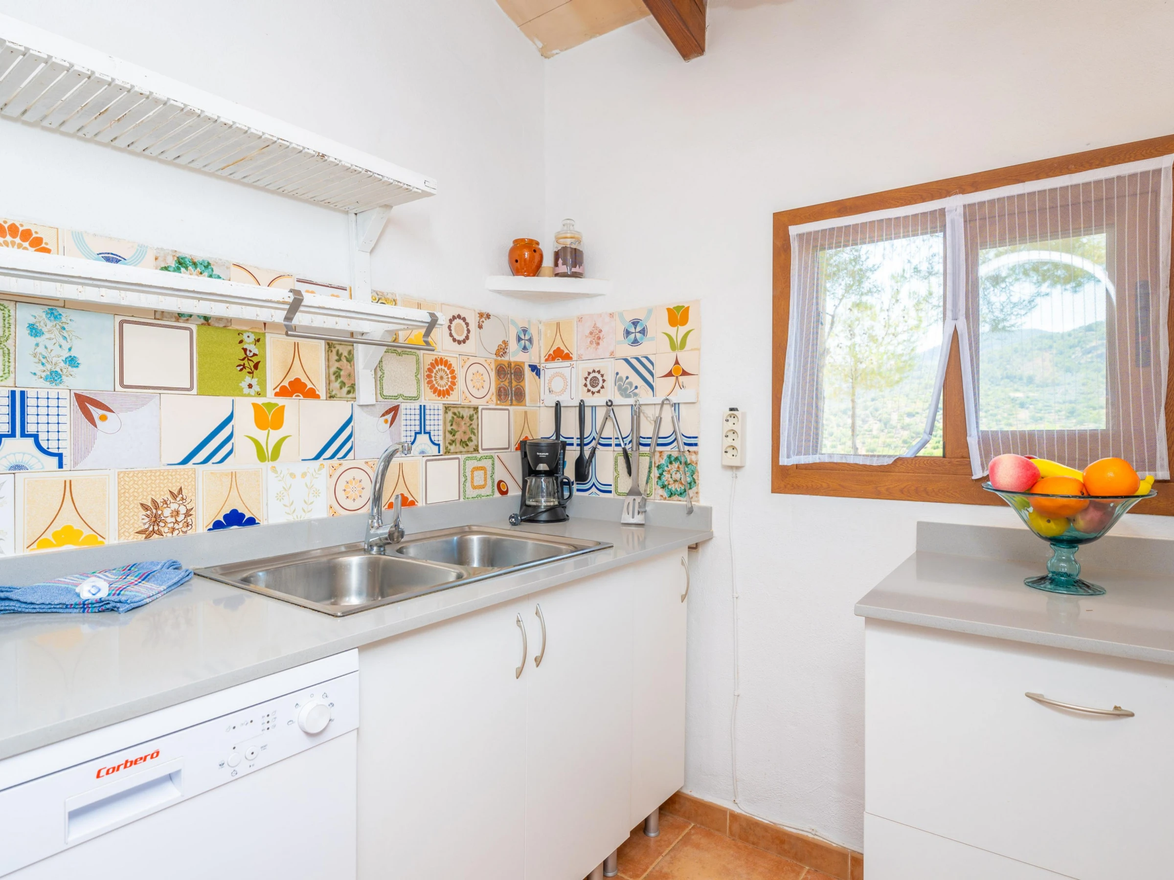 The beautiful rustic style house counts with 100 m2 in just one floor. The inside is characterized by the wooden beams and the traditional but comfortable and functional furniture. When you get in, you find a great living - dining room where you can sit on the comfortable sofa an watch the satellite TV (only German channels). The dining table has capacity for 4 people and is placed by the chimney, ideal to be warm on the coldest days. The kitchen is independent and it offers a gas stove and oven, microwave and electric coffee machine among others. You will also find a washing machine, an iron and an ironing board in the house. The house features 2 bedrooms in order to rest. There is a double bed, a wardrobe and a fan in the first bedroom and two single beds, a wardrobe and a fan in the second one. If you are travelling with your baby we can prepare cot and a high chair. A bathroom with bathtub completes the accommodation.