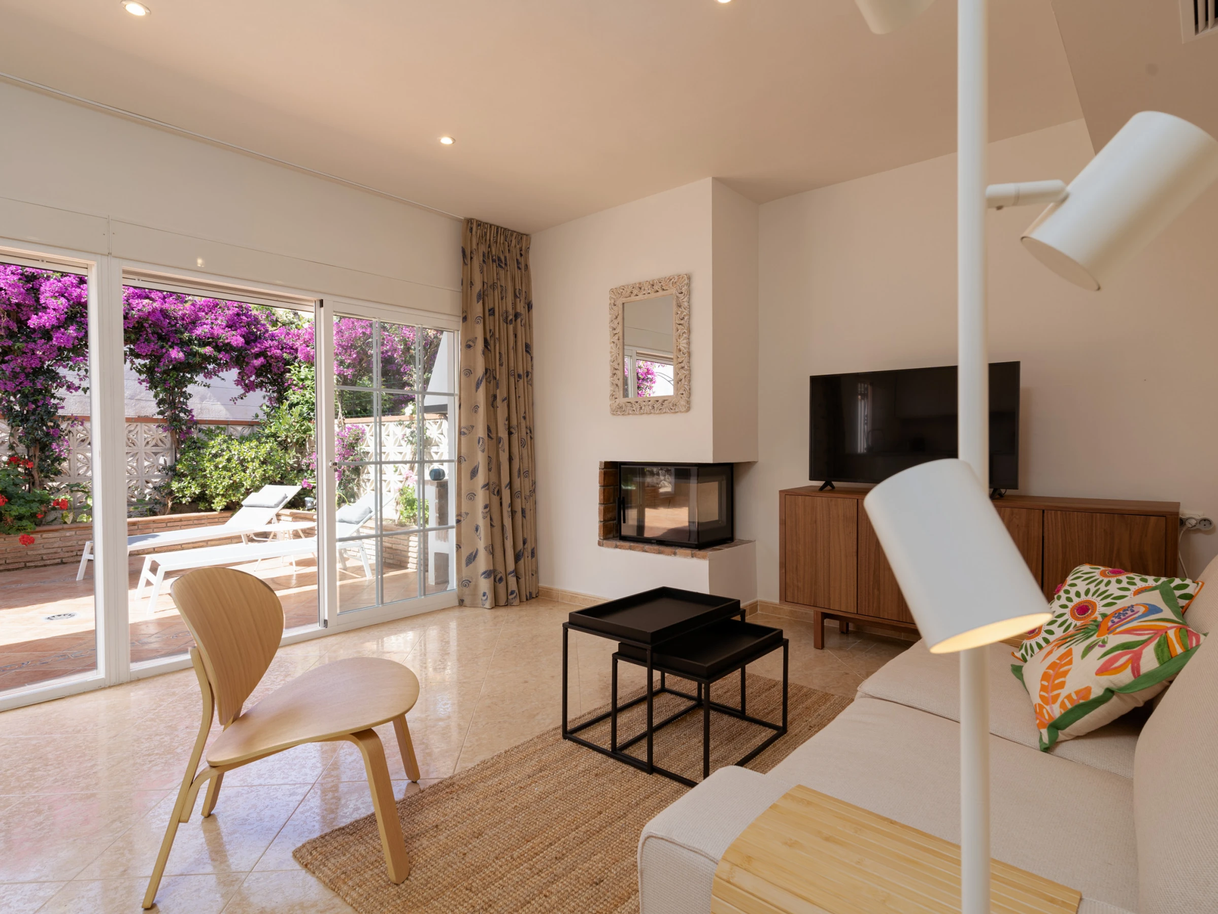 Experience the charm of this two-bedroom semi-detached house, ideally situated near one of Marbella's finest beaches in Costabella. The house features a single level, hosting two cozy bedrooms and a well-appointed bathroom. The highlight of the property is the inviting American-style open kitchen, seamlessly blending with the living space. Step outside into the spacious garden, complete with a delightful terrace, perfect for relaxing and enjoying the pleasant surroundings.