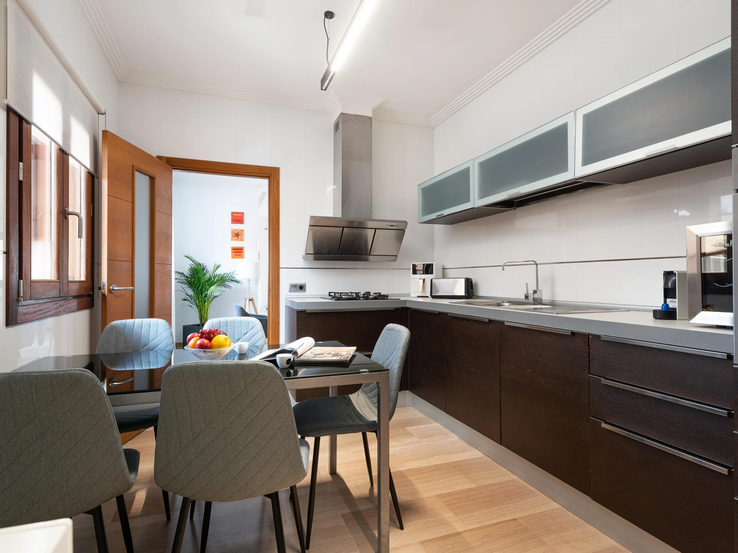 This charming two-story house extends a warm welcome with a foyer on the ground floor, providing direct access to the pool. As you ascend to the main floor, a spacious and bright living room is revealed, equipped with Smart TV and air conditioning, complemented by a generous sofa that invites relaxation. The separate kitchen features a gas stove, barista-style coffee maker, and all the necessary utensils for preparing delicious meals. For rest, three bedrooms, one with a full bathroom with a whirlpool tub, double bed, and air conditioning, and the other two with double beds. A final bathroom with a shower, along with a washing machine, iron, and ironing board, offer additional comforts. If traveling with a baby, a crib and a high chair are provided, ensuring a worry-free family stay.
