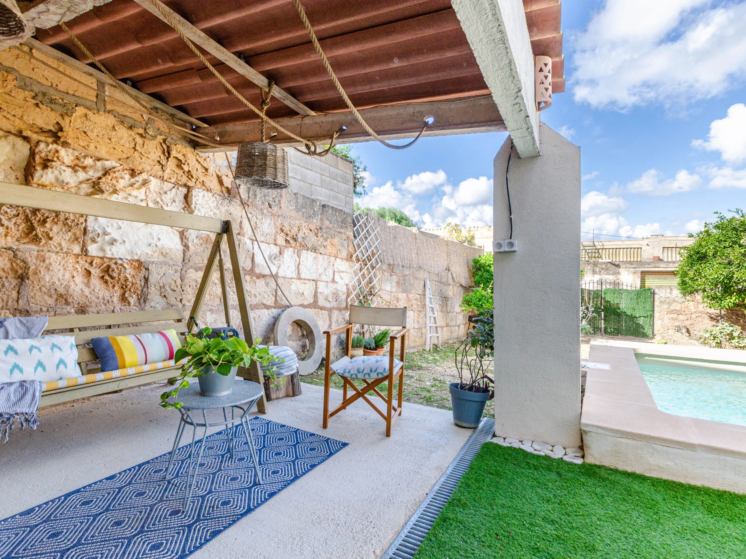With two different accesses, either through the main entrance or through the garden, this house offers a unique experience of tranquility and comfort. The jewel of the property is its spacious terrace, designed to make the most of the Mediterranean climate. Equipped with a dining area to savor delicious meals outdoors, a cozy chill-out corner to relax, hammocks for sunbathing and an umbrella that provides shade when needed. The second floor houses a solarium with panoramic views of the majestic Tramuntana Mountains, creating an exclusive space to contemplate the natural beauty that surrounds the house.
