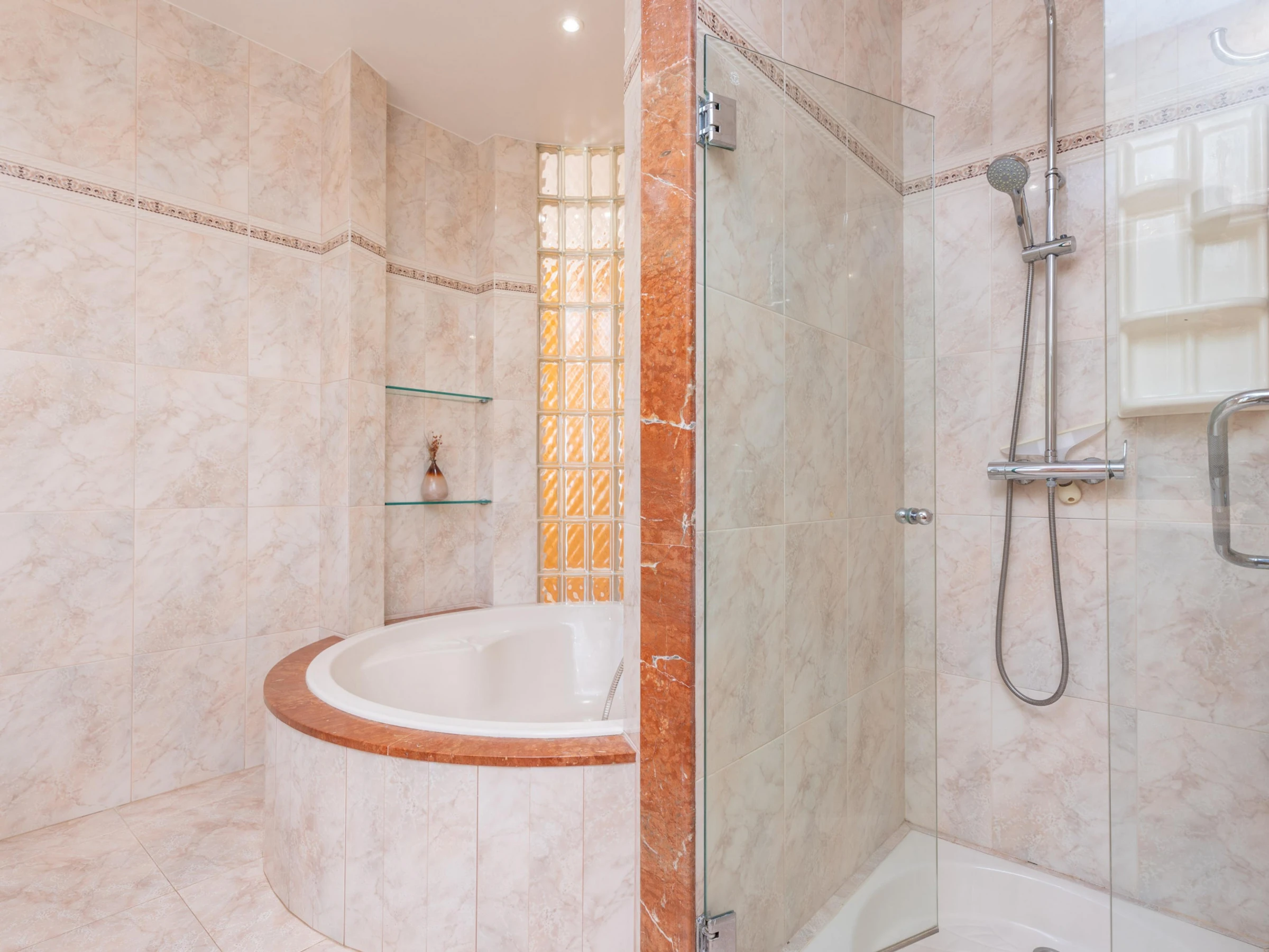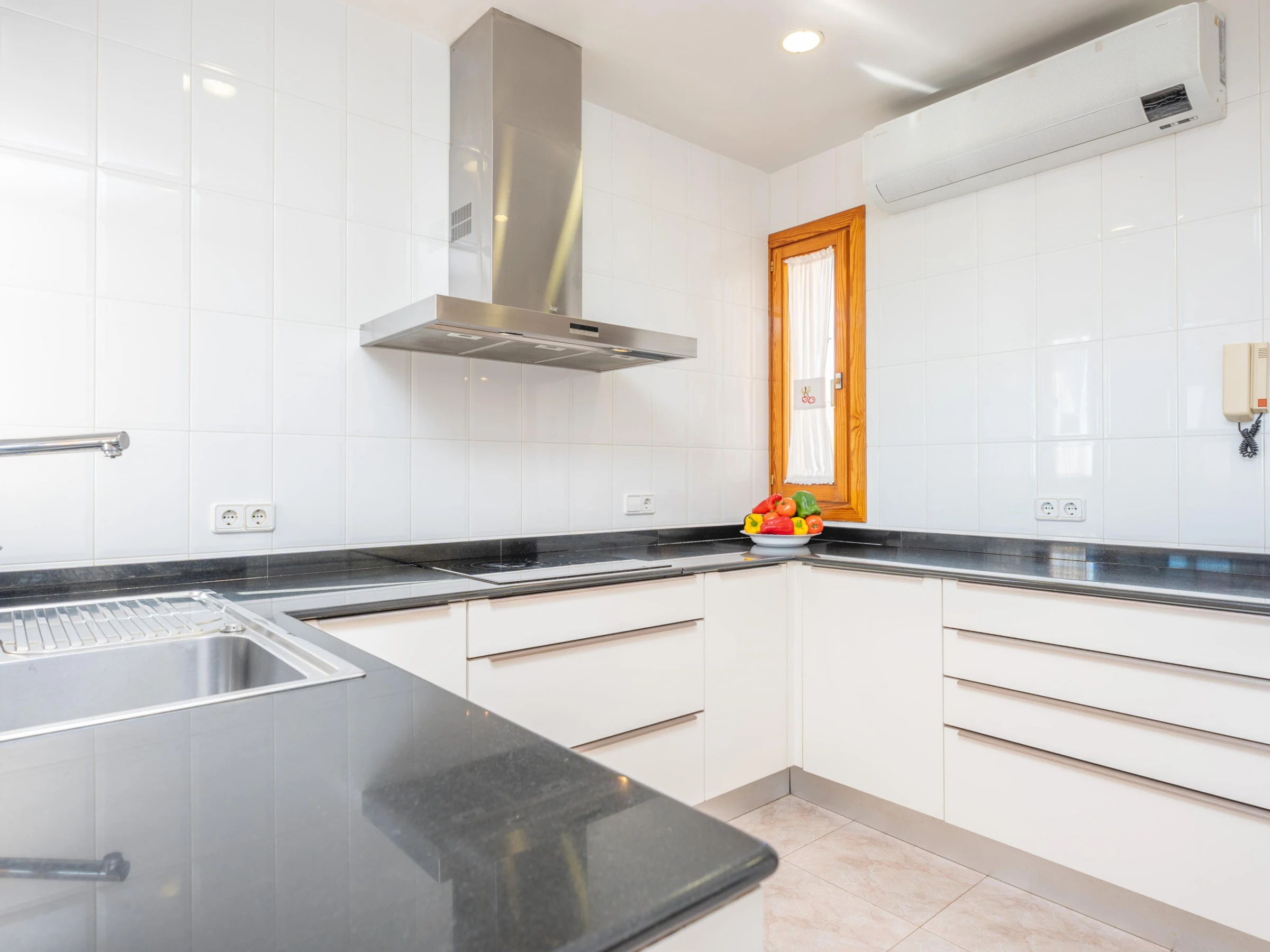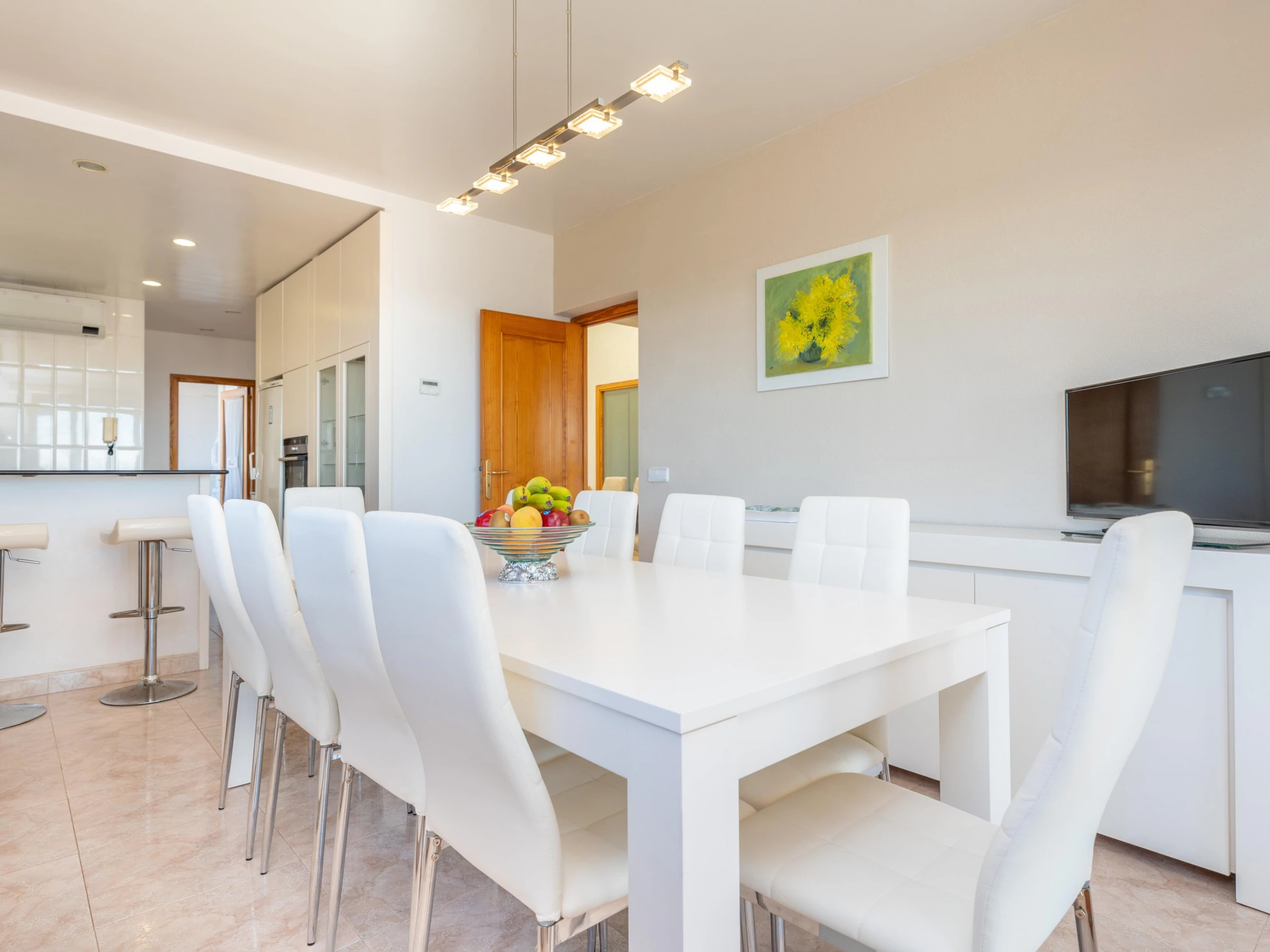Entering the spacious interior of the property, distributed on a single floor, you will find the living room with A/C. It has two sofas in front of the Smart TV and two other sofas in the same room, making it ideal for relaxing with all your companions. The living room connects directly to the dining room creating a very spacious and bright space. The induction cooker is fully equipped with the necessary utensils to cook during your stay, and also has another dining area. When it comes to sleeping, there are a total of 5 bedrooms. The first bedroom has a double bed and an en suite bathroom with bathtub. The next two bedrooms also have a double bed and share an en-suite bathroom with shower. As for the remaining two bedrooms, one of them has a double bed and the last one has two single beds and an en suite bathroom with shower. All rooms have wardrobe and A/C. If you are travelling with a baby, a cot and high chair will be provided. Finally, washing machine, dryer and iron are available during your stay.