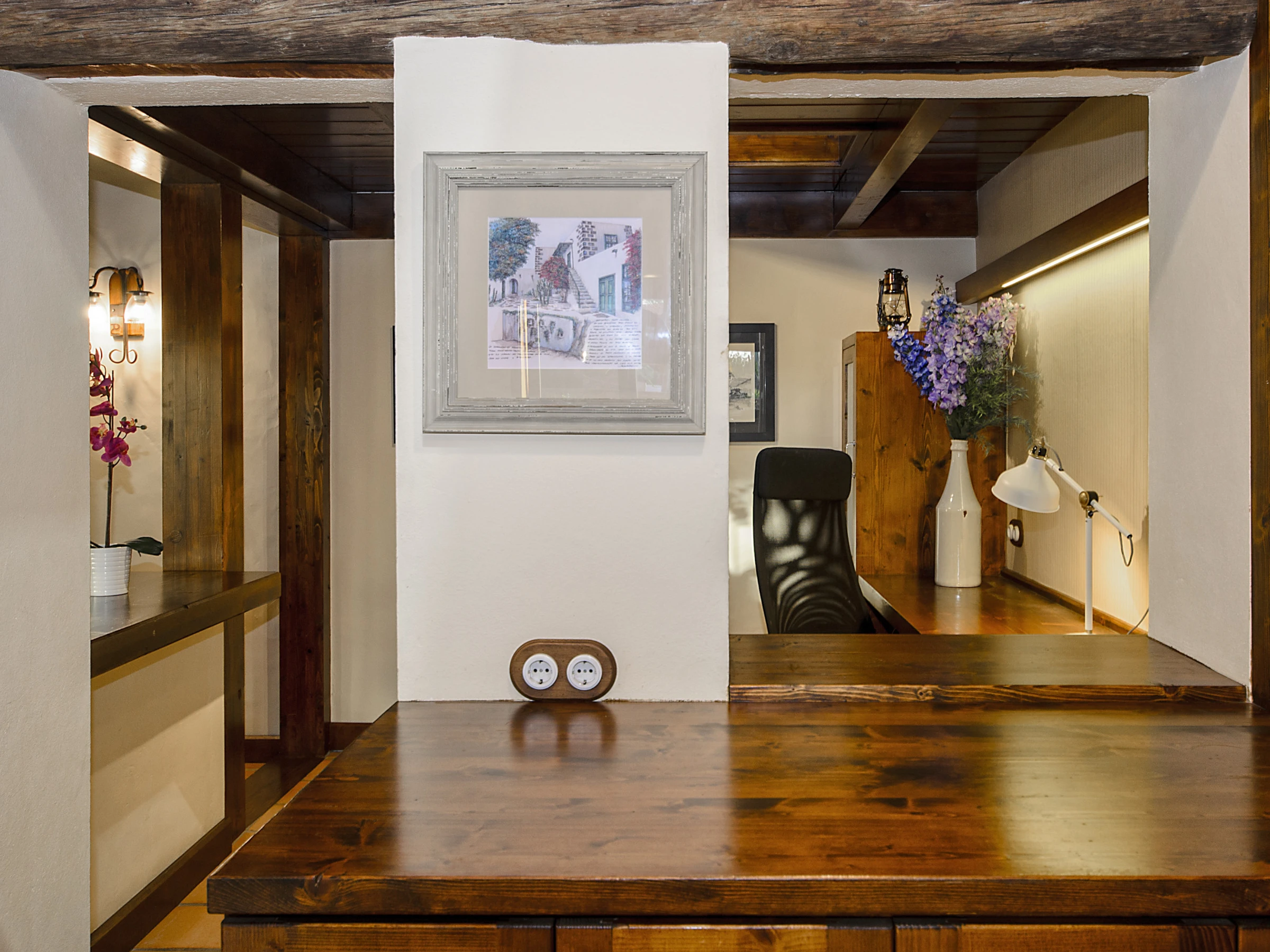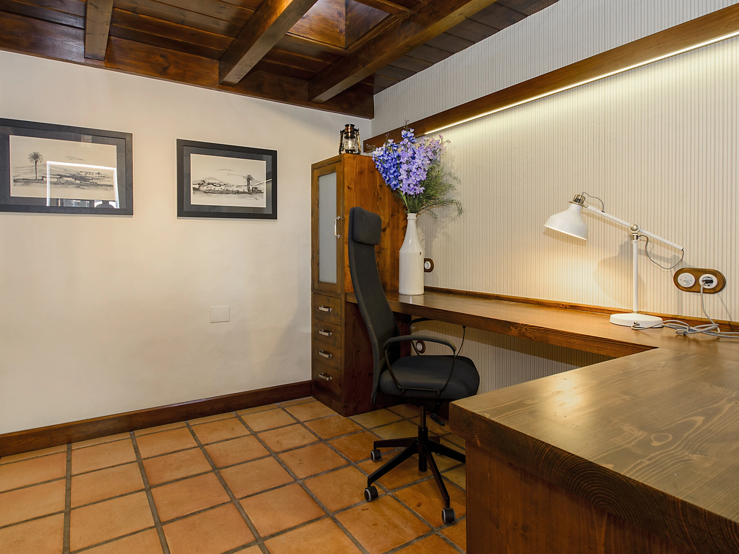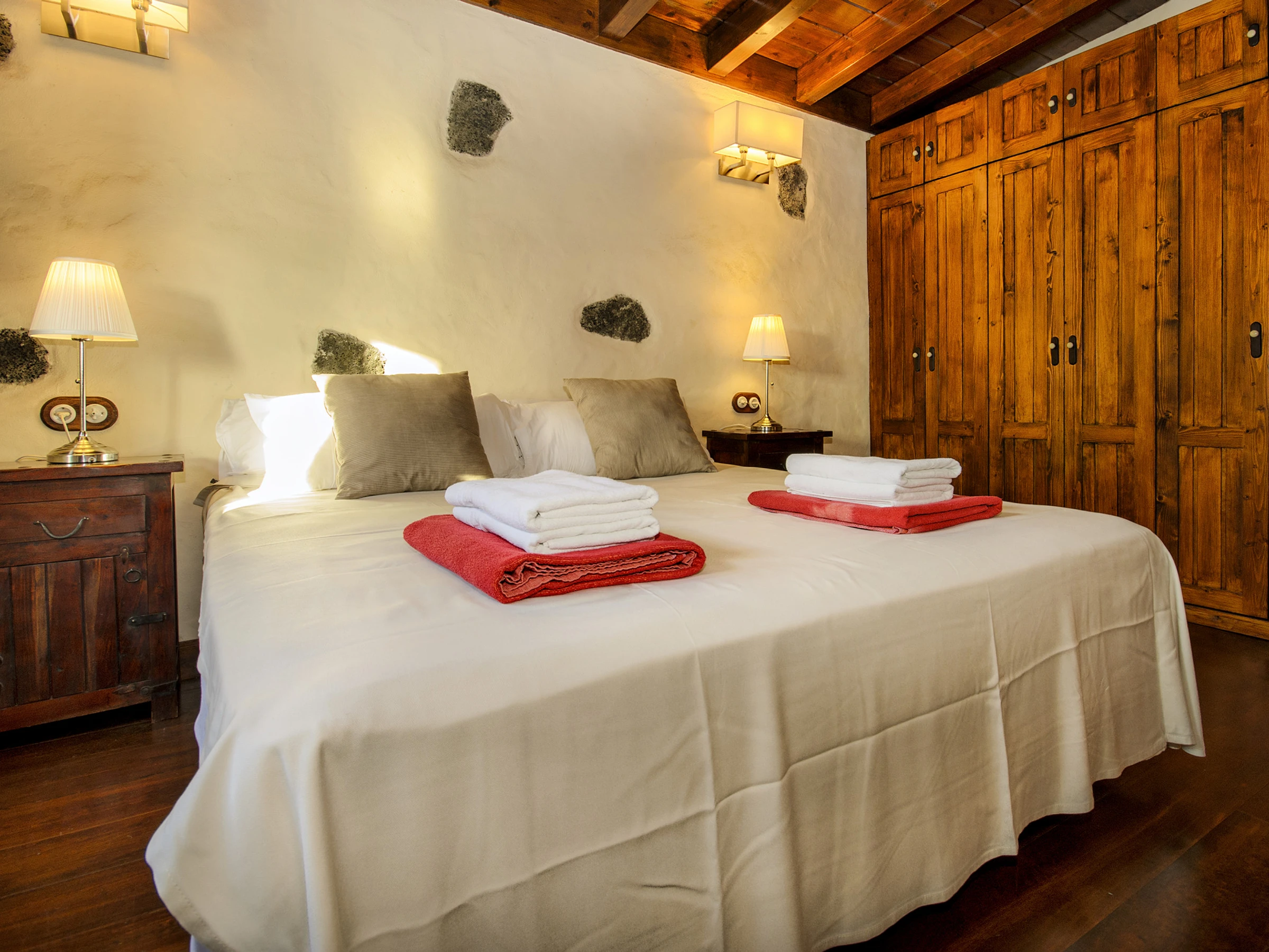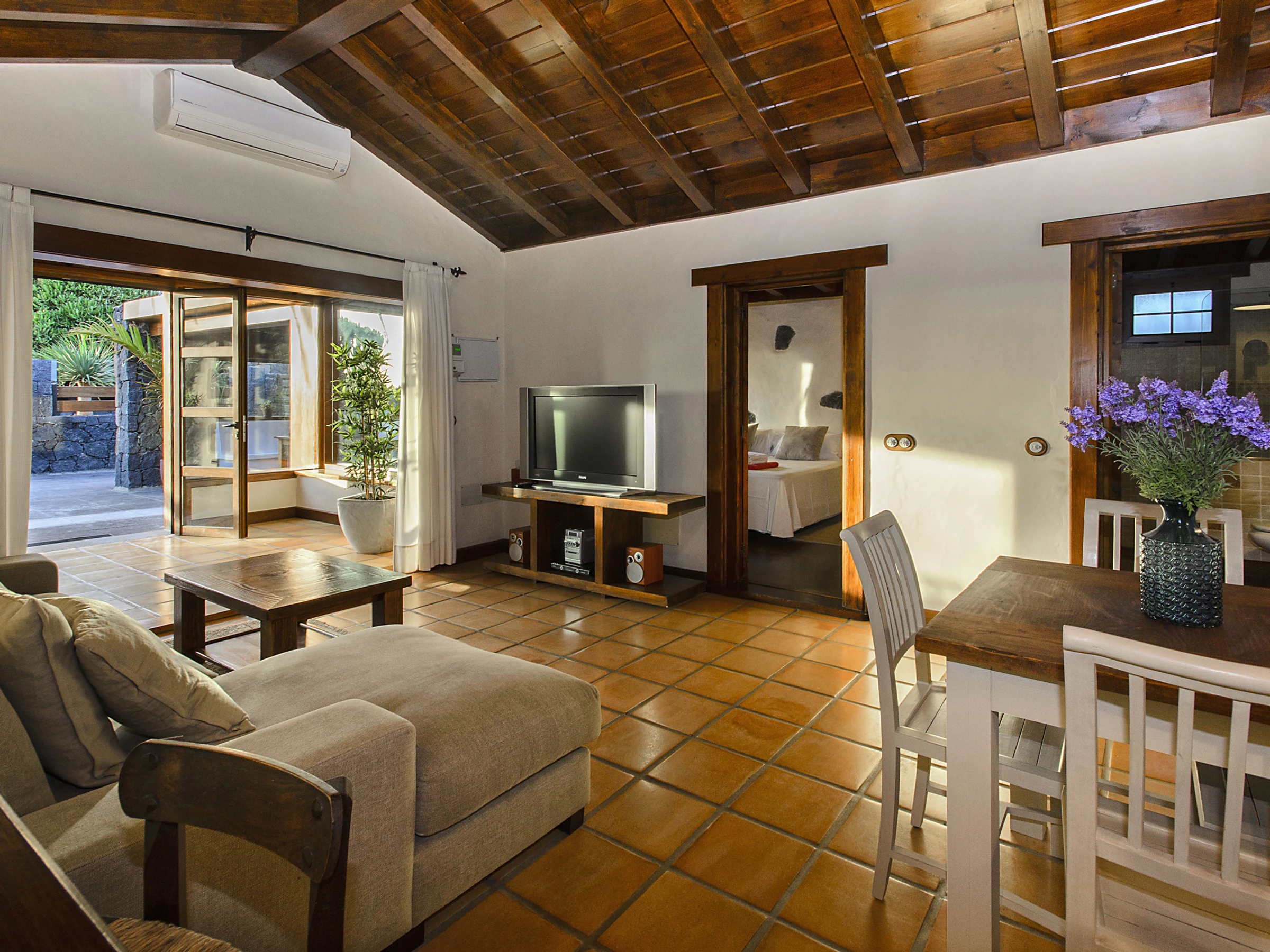 Ermita Perdomo has two bedrooms with double beds and two en-suite bathrooms, both with spacious showers, hairdryers and high-quality amenities such as gel/shampoo dispensers and moisturising cream. The bright and cosy living room features a 50" screen, while the kitchen-dining area is fully equipped and ready for your culinary adventures. Additionally, there is a dedicated workspace with reliable Wi-Fi (approx. 20 Mbps), ideal for remote work or staying connected.