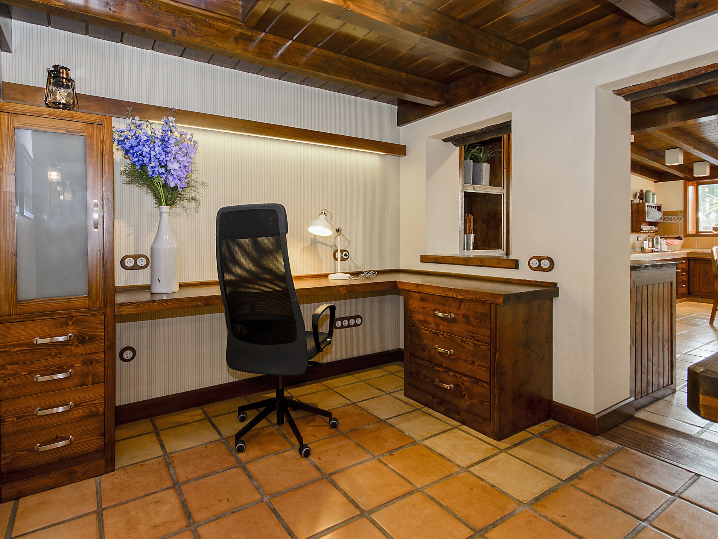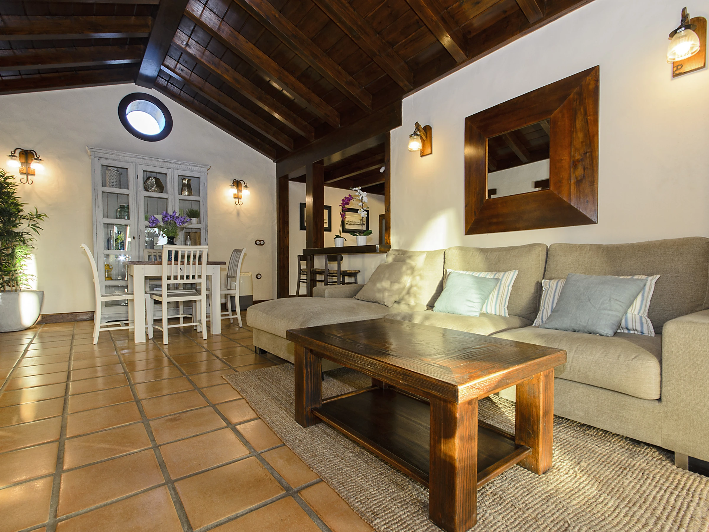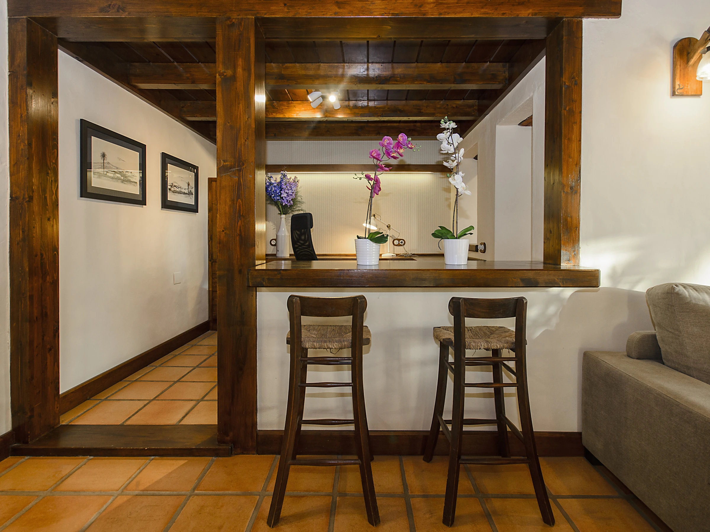 Ermita Perdomo has two bedrooms with double beds and two en-suite bathrooms, both with spacious showers, hairdryers and high-quality amenities such as gel/shampoo dispensers and moisturising cream. The bright and cosy living room features a 50" screen, while the kitchen-dining area is fully equipped and ready for your culinary adventures. Additionally, there is a dedicated workspace with reliable Wi-Fi (approx. 20 Mbps), ideal for remote work or staying connected.