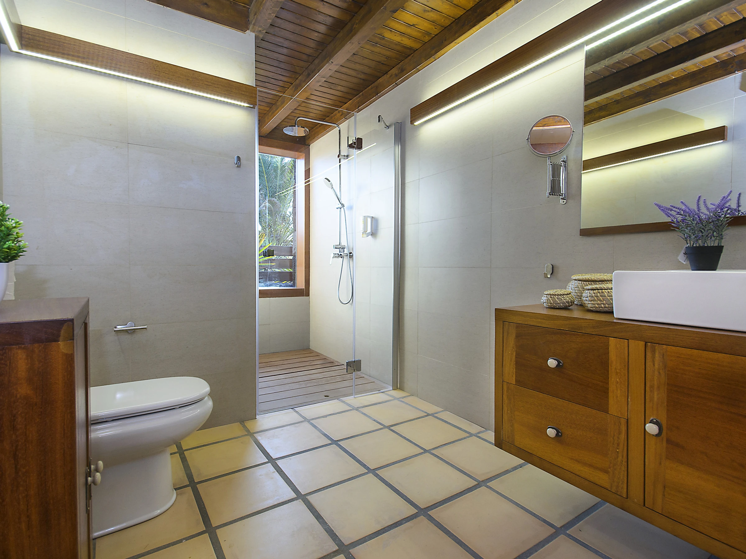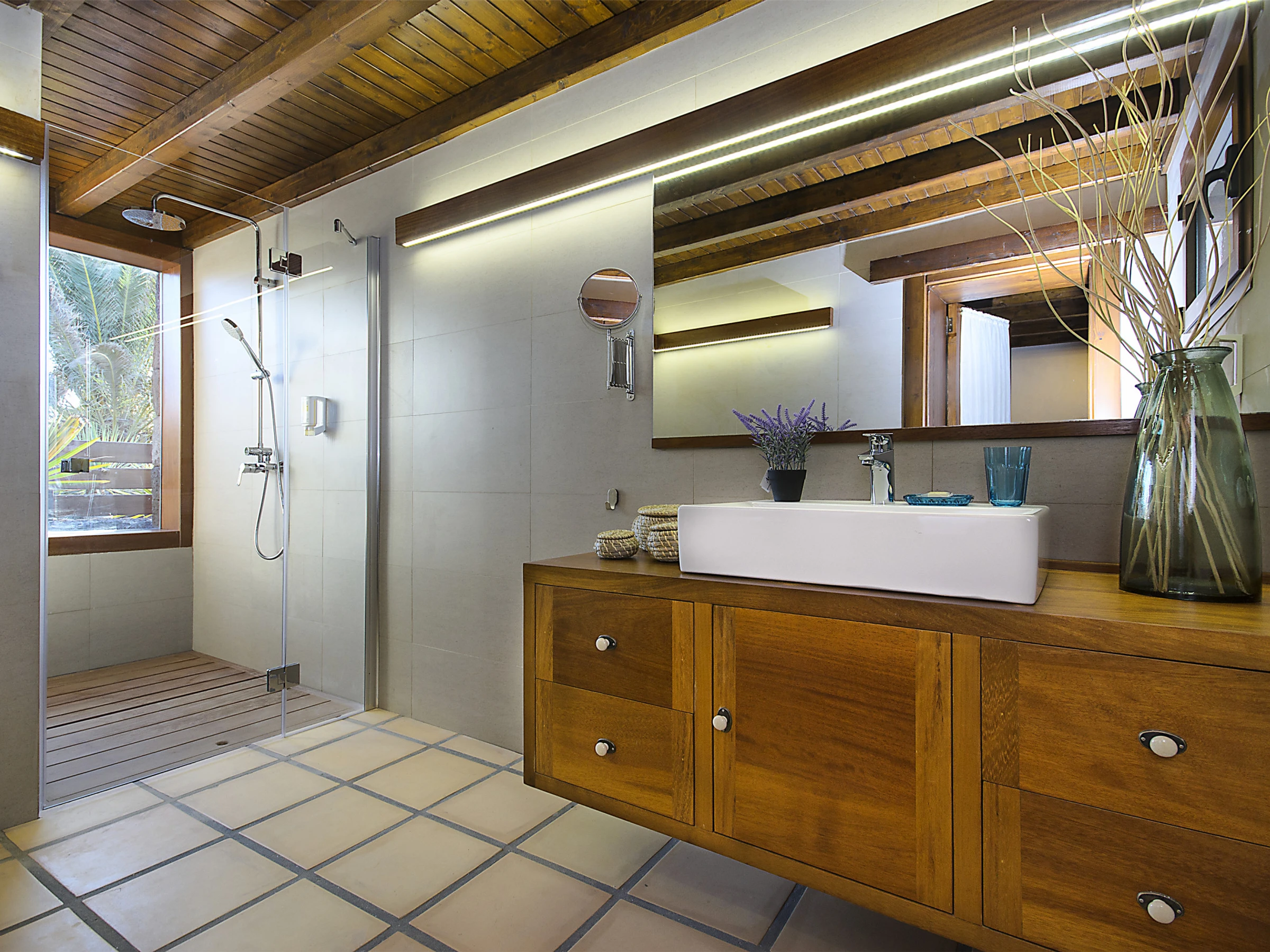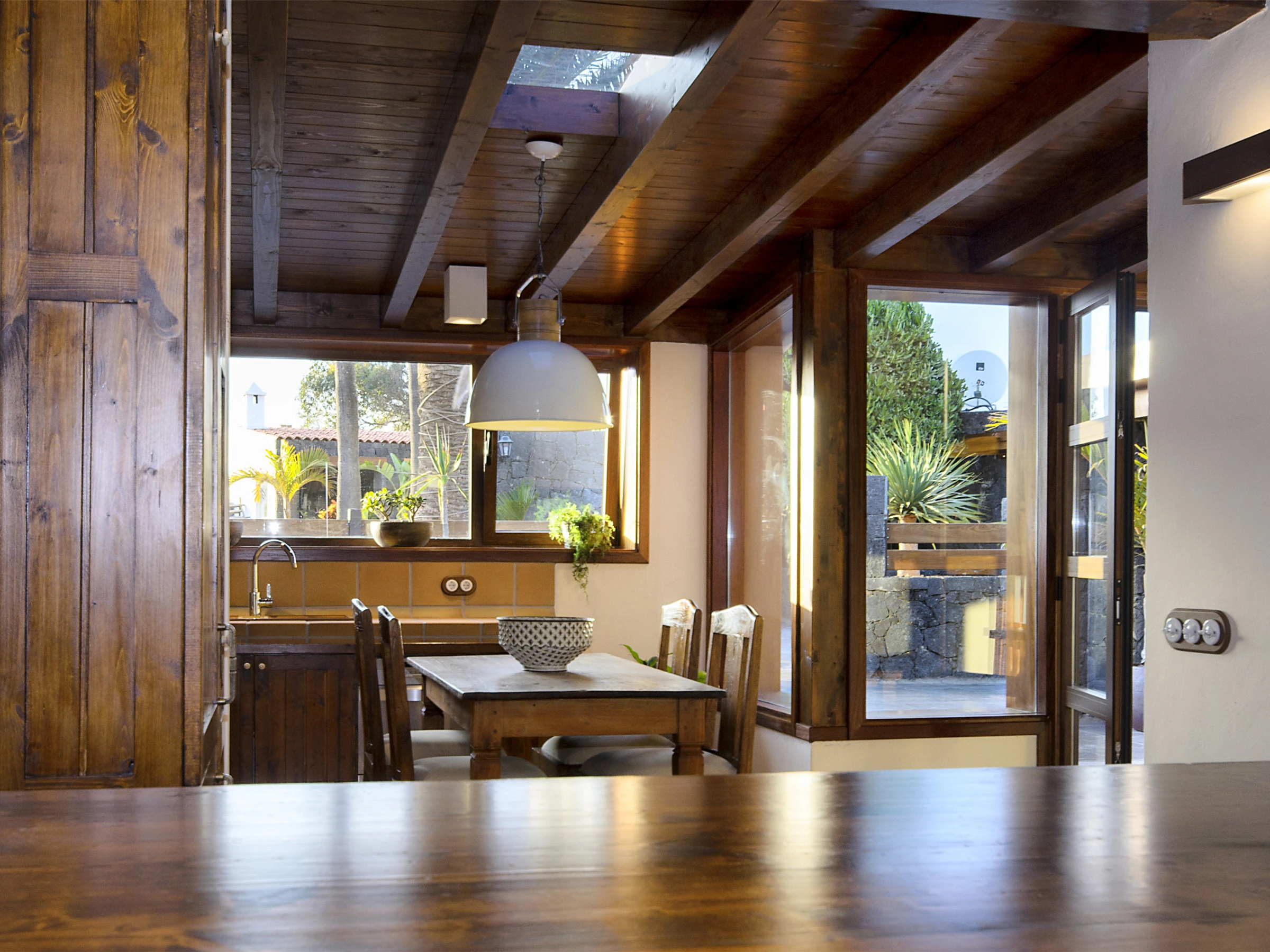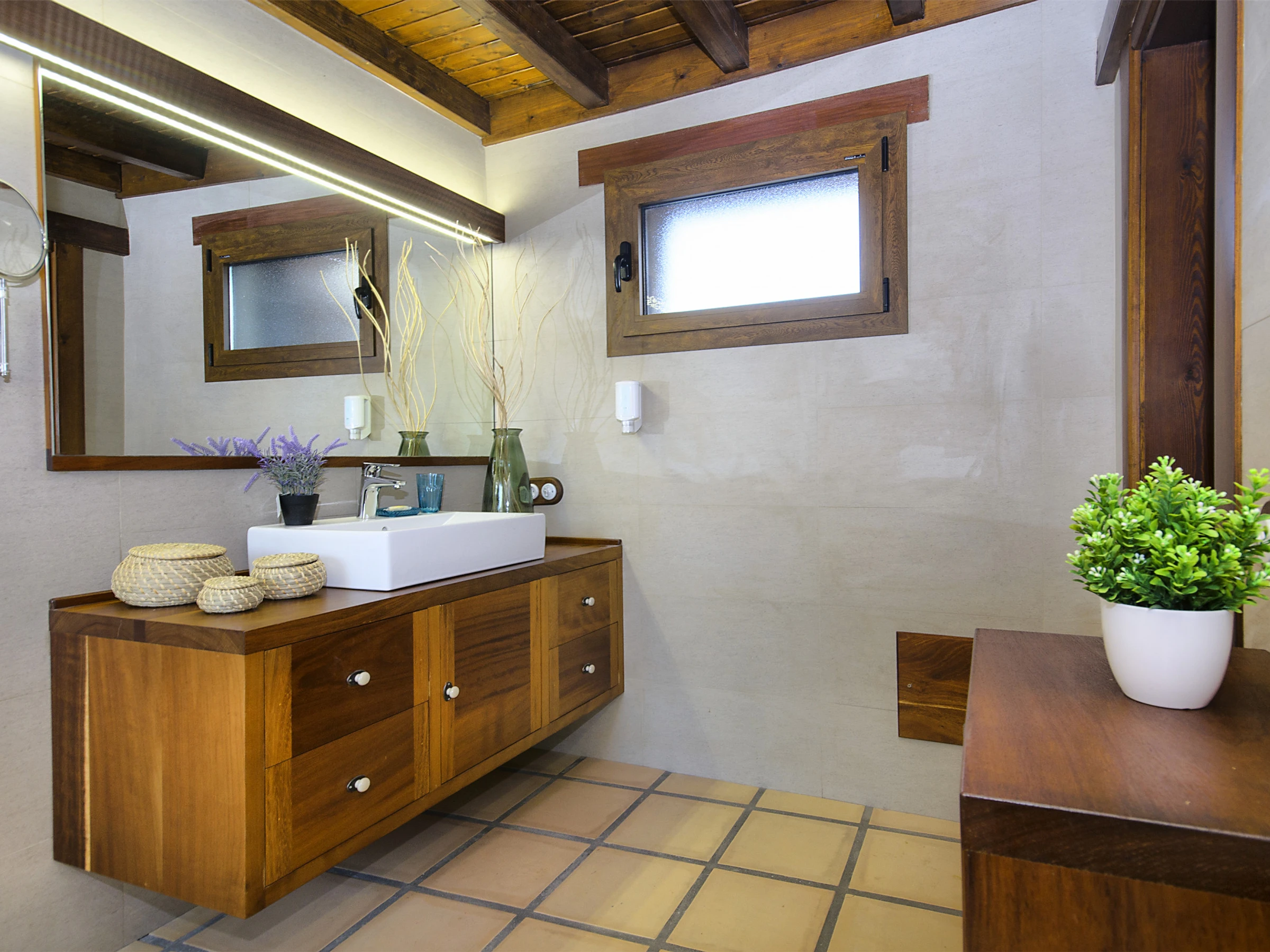 Ermita Perdomo has two bedrooms with double beds and two en-suite bathrooms, both with spacious showers, hairdryers and high-quality amenities such as gel/shampoo dispensers and moisturising cream. The bright and cosy living room features a 50" screen, while the kitchen-dining area is fully equipped and ready for your culinary adventures. Additionally, there is a dedicated workspace with reliable Wi-Fi (approx. 20 Mbps), ideal for remote work or staying connected.