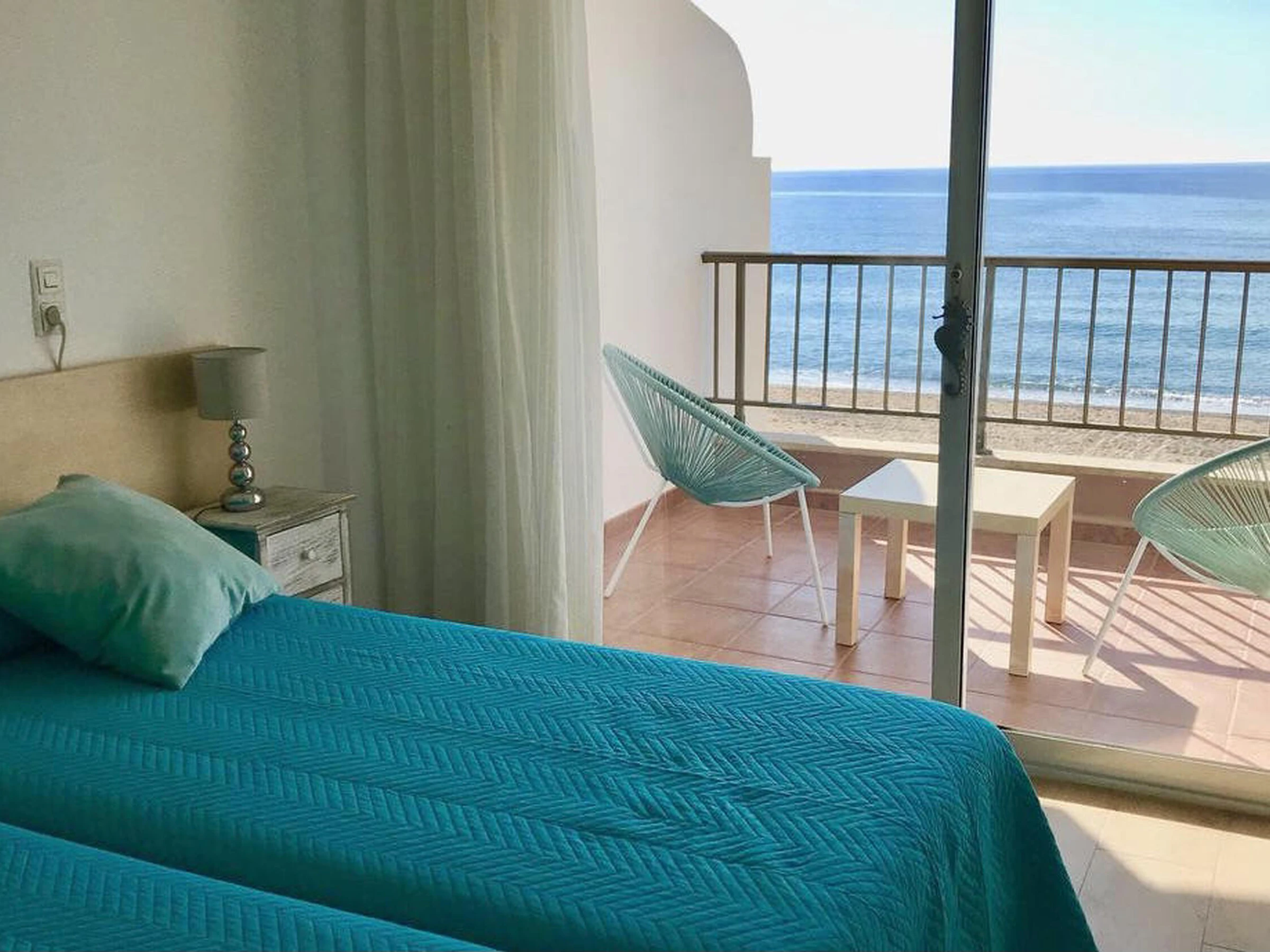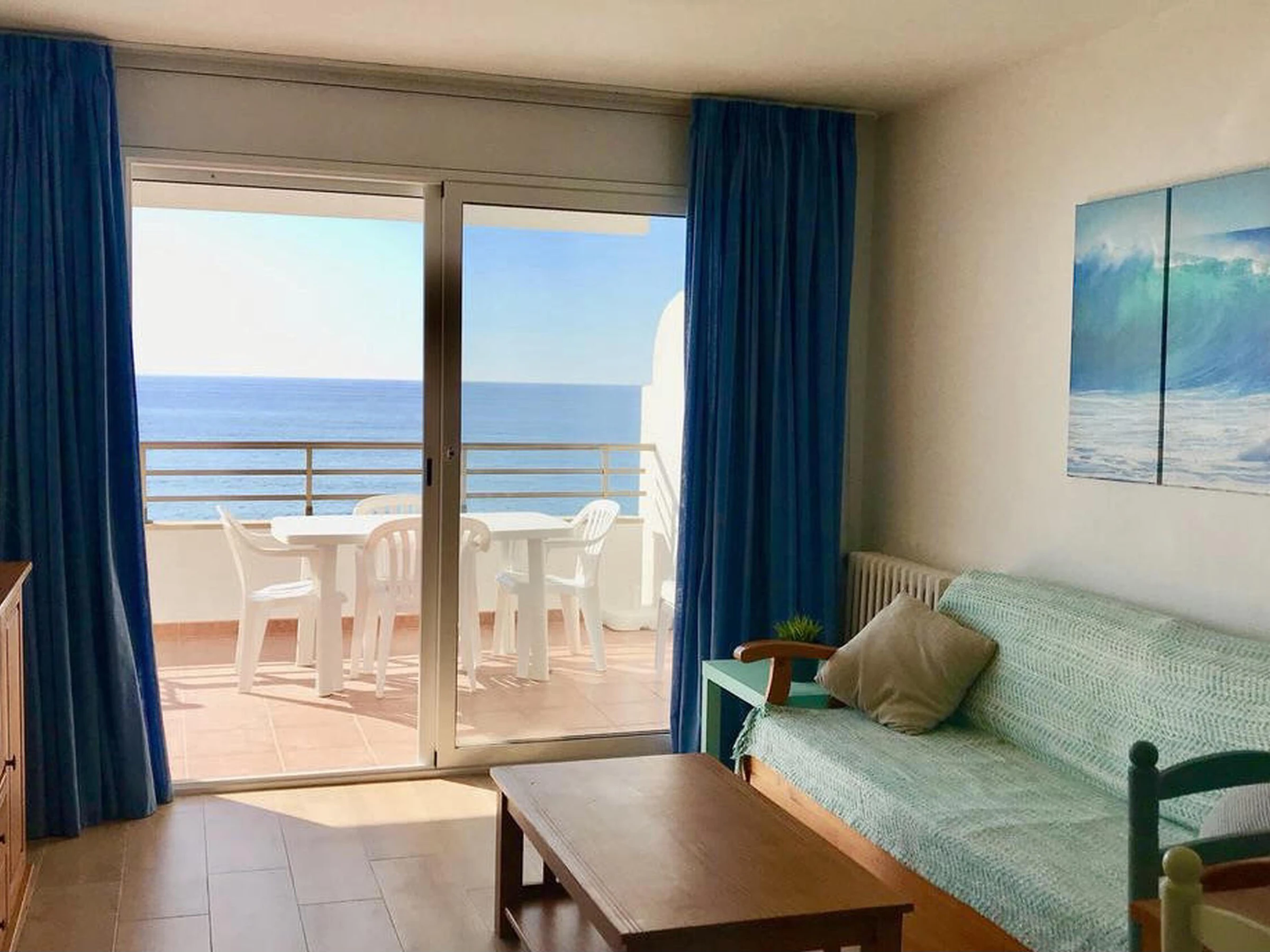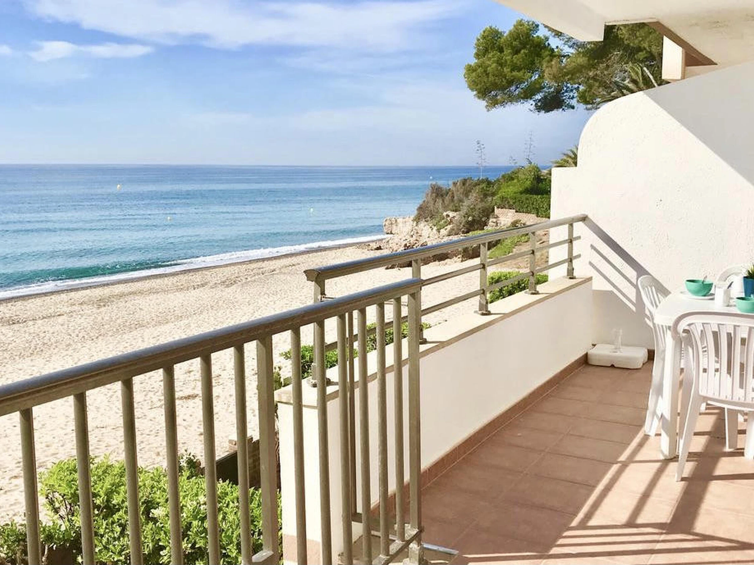 Renovated apartment located on the seafront, built in a building on the sand of the beach. It has a community pool and tennis court for the enjoyment of customers. The apartment is on the first floor and consists of: independent kitchen, gallery for washing machine, dining room with TV, 2 double bedrooms with two beds of 90 cm each and 2 bathrooms with shower. Beautiful terrace equipped with garden furniture and spectacular sea views. Prices based on a 7 nights minimum stay, for shorter stays please contact us
