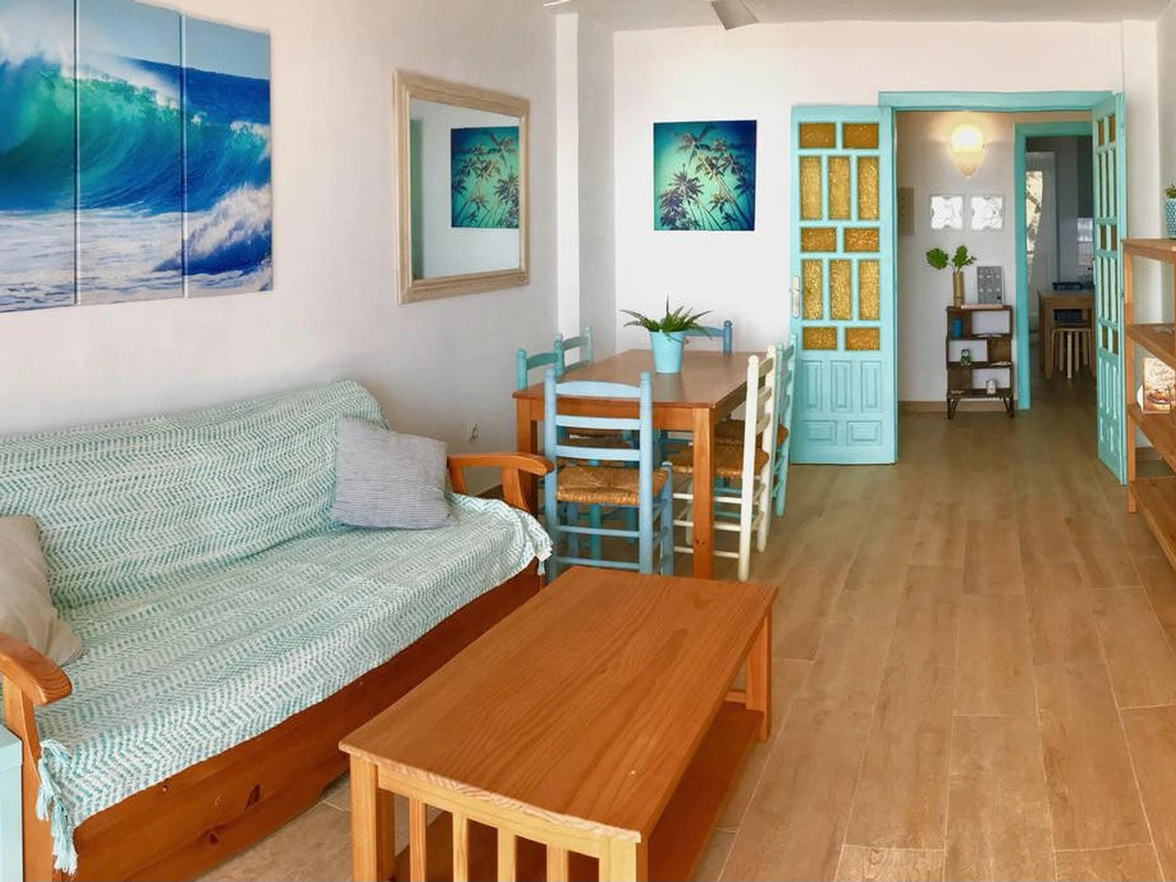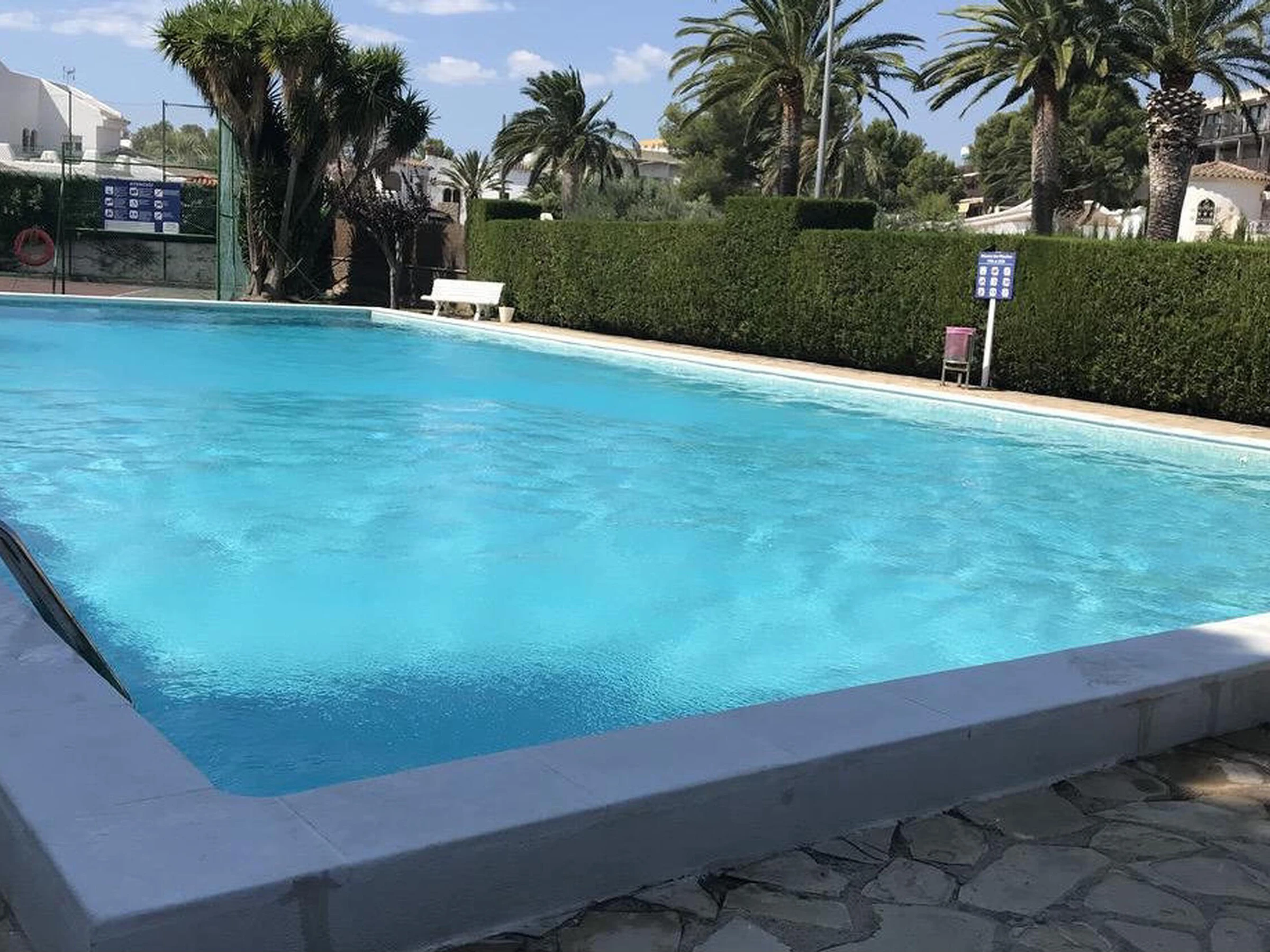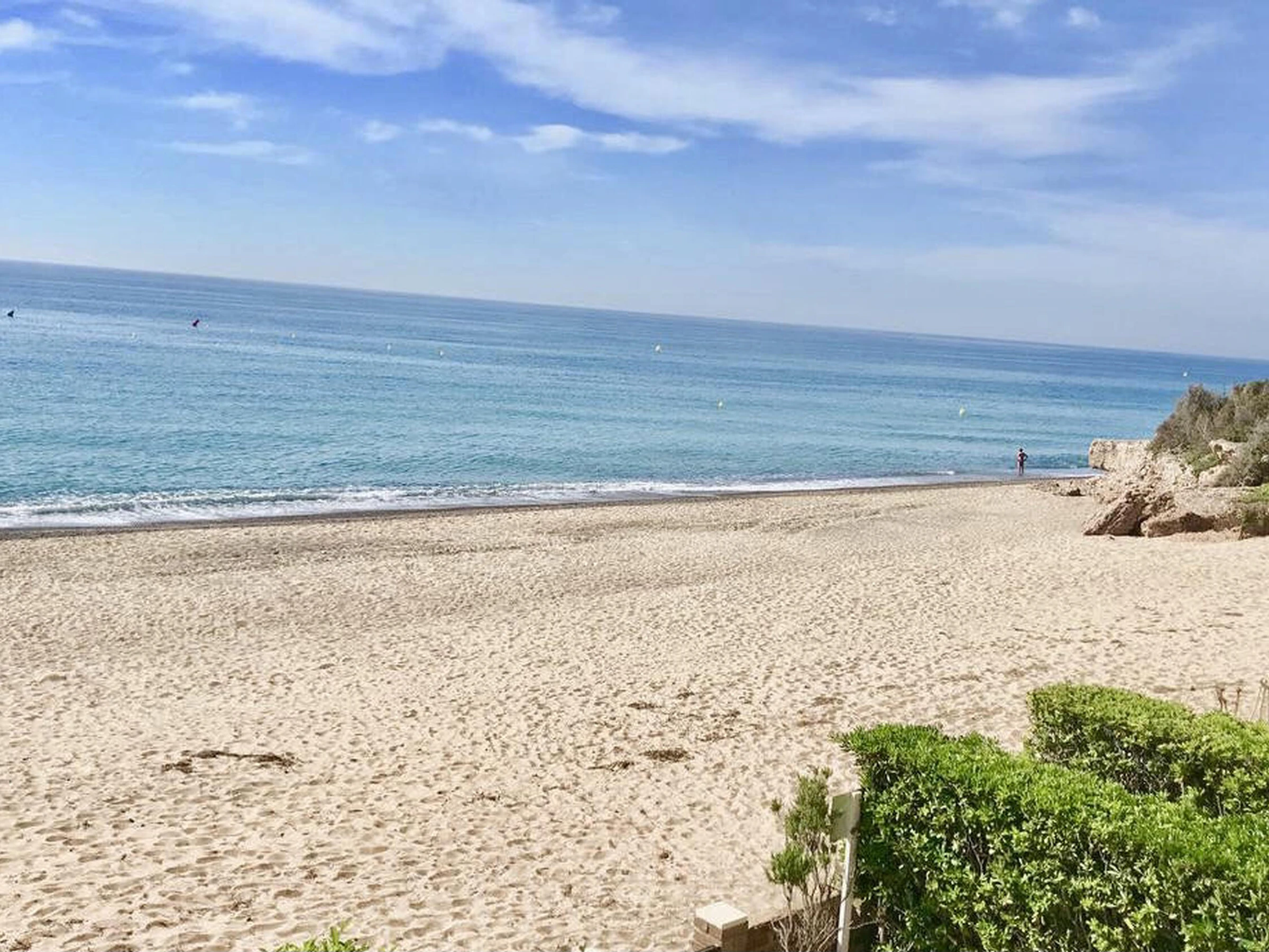 Renovated apartment located on the seafront, built in a building on the sand of the beach. It has a community pool and tennis court for the enjoyment of customers. The apartment is on the first floor and consists of: independent kitchen, gallery for washing machine, dining room with TV, 2 double bedrooms with two beds of 90 cm each and 2 bathrooms with shower. Beautiful terrace equipped with garden furniture and spectacular sea views. Prices based on a 7 nights minimum stay, for shorter stays please contact us