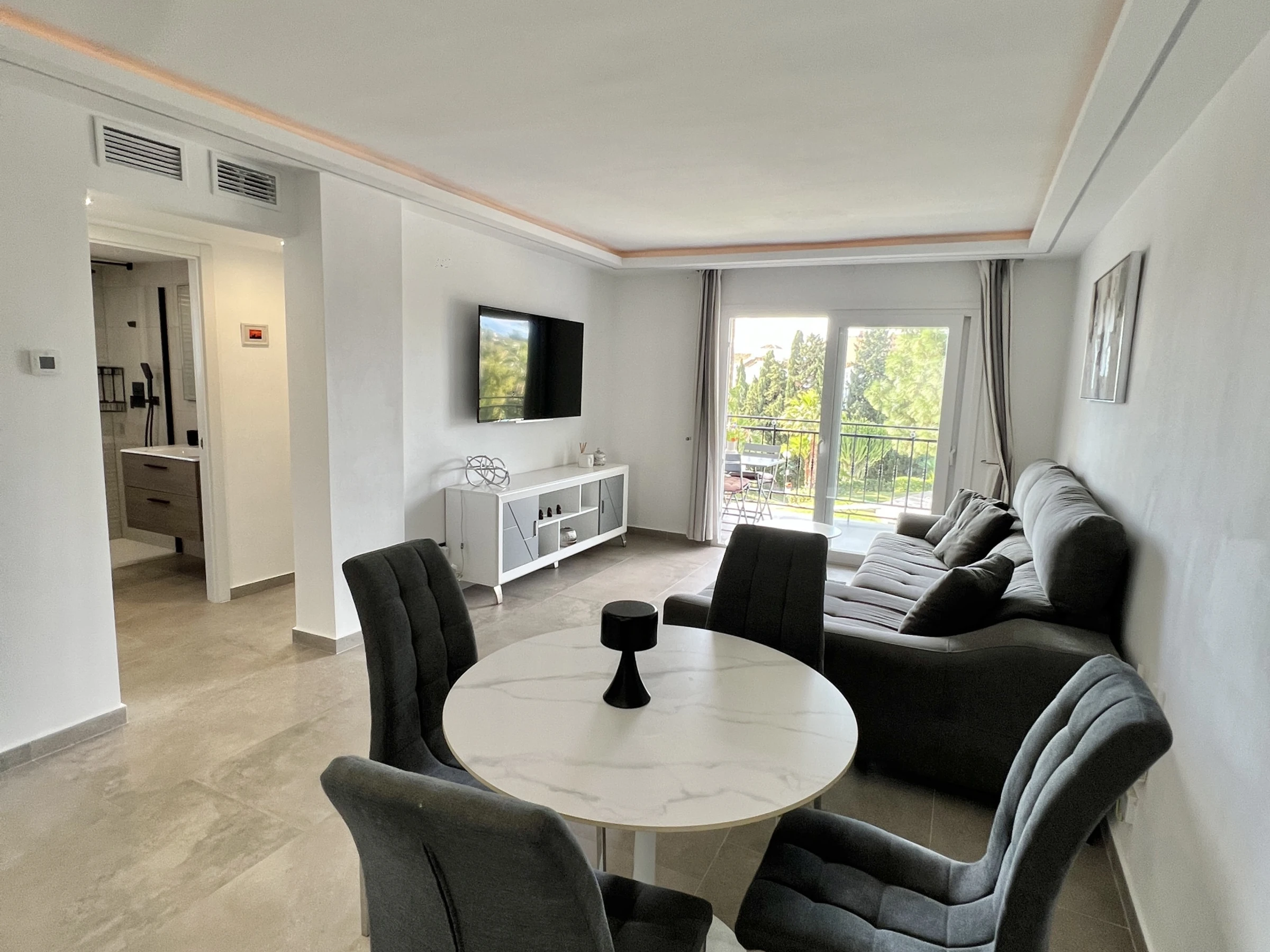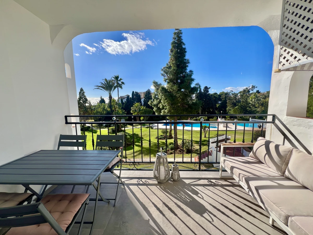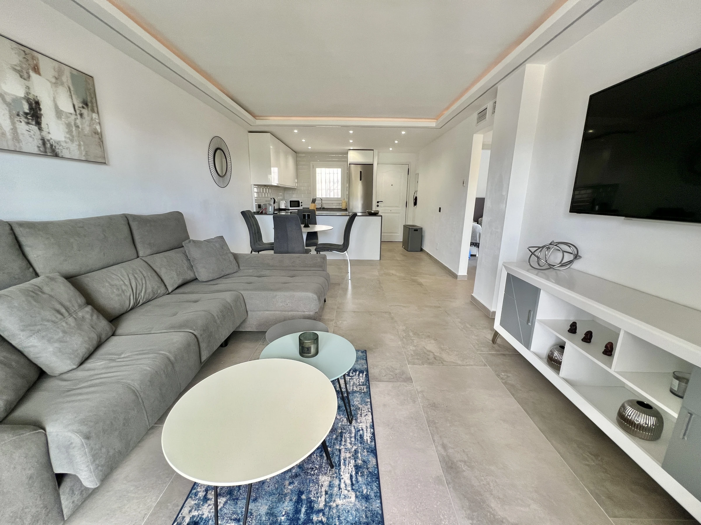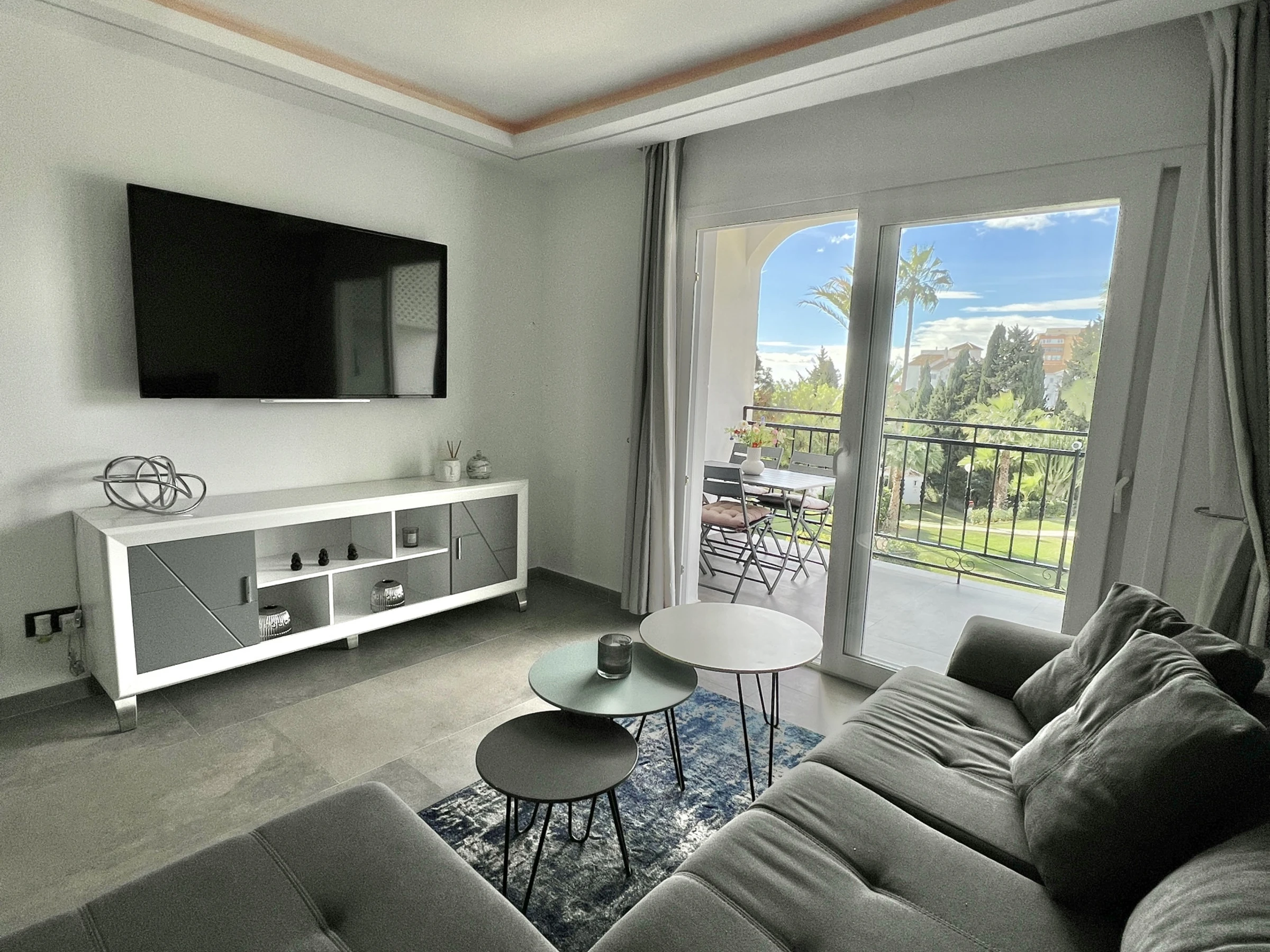 Discover this modern and elegant apartment located in the charming Riviera del Sol residence in Mijas Costa, perfectly suited to families, couples, and groups of friends seeking a comfortable stay.