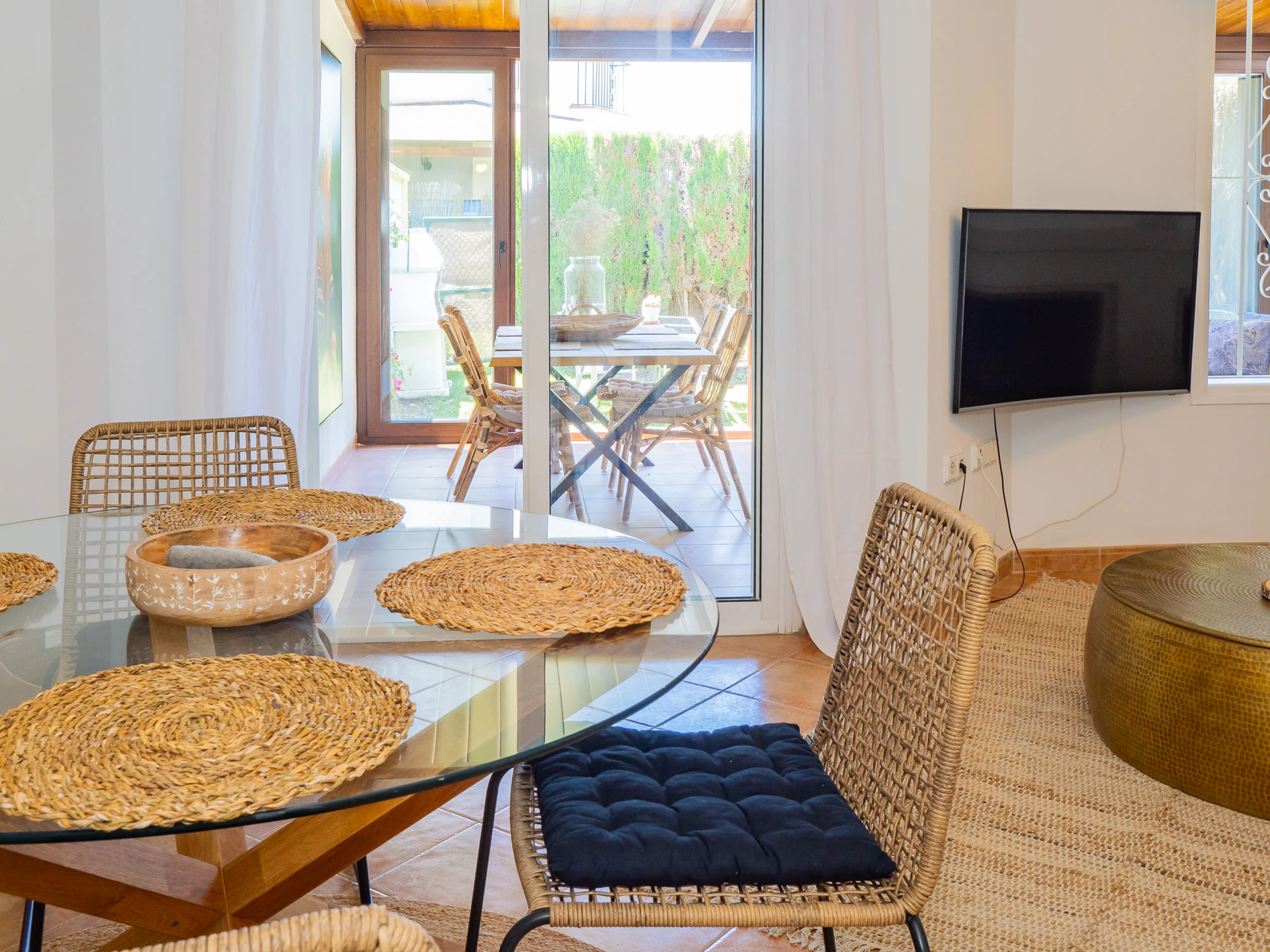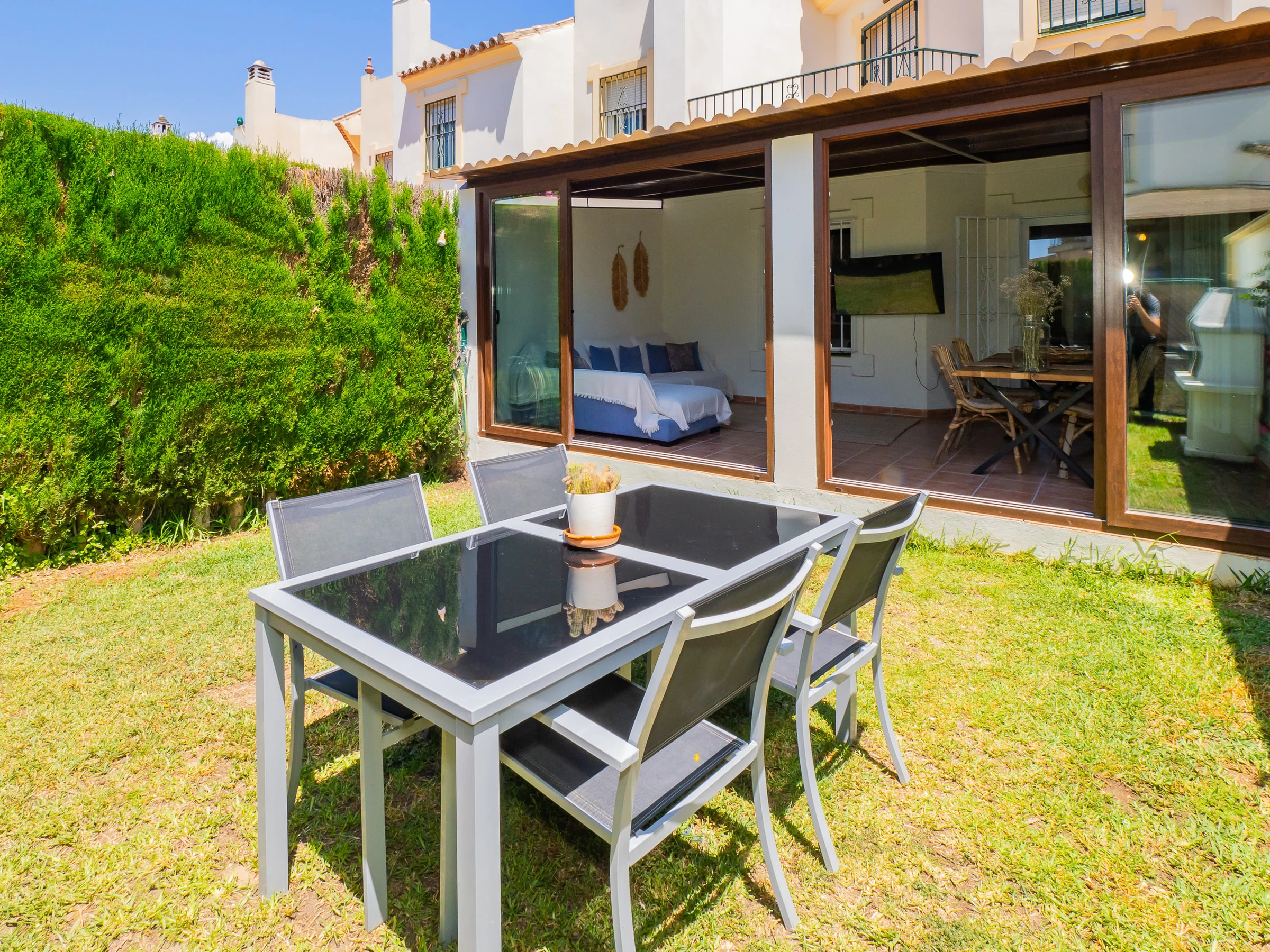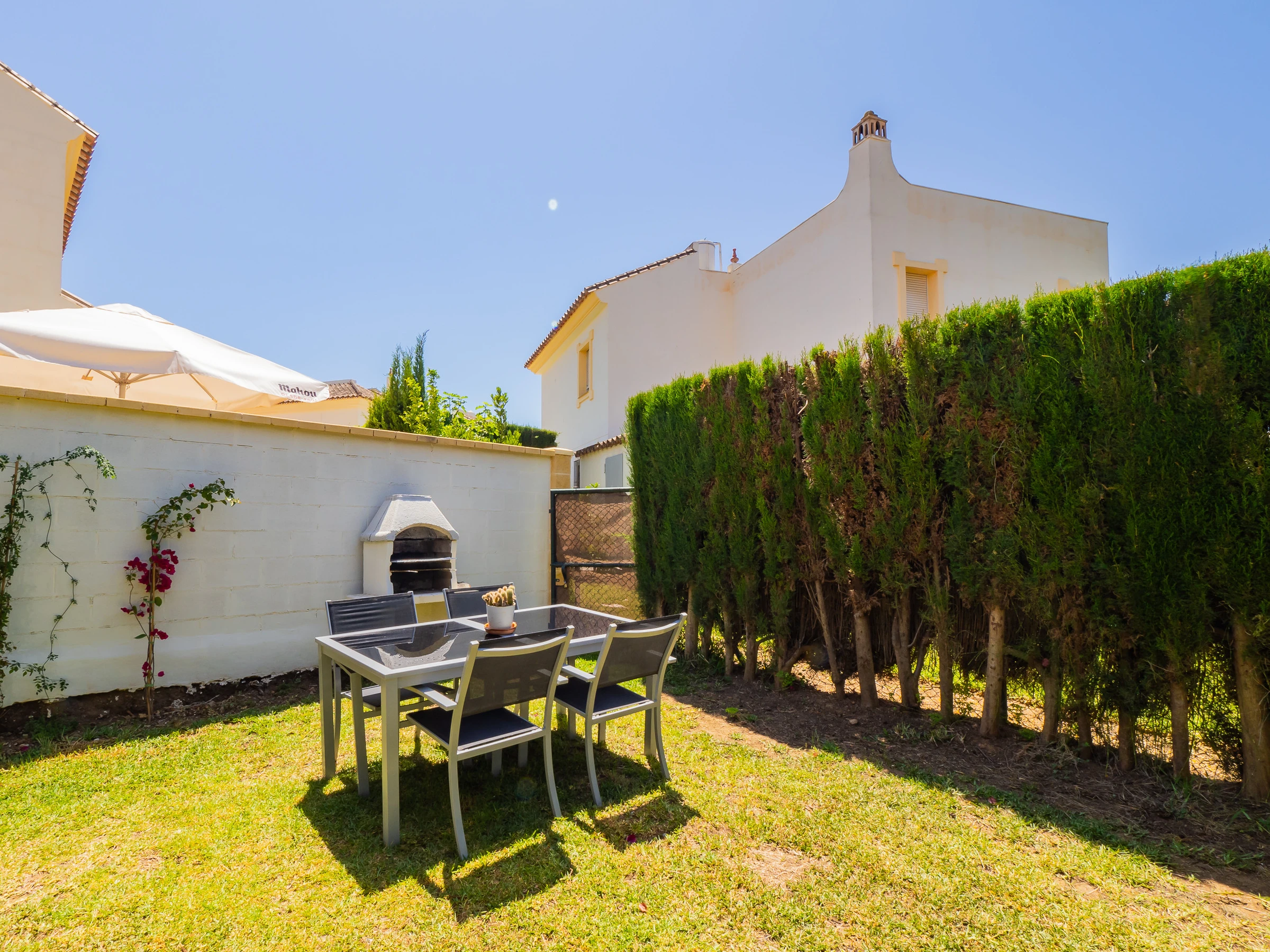 In the exterior, you will have a spacious garden with access to three communal swimming pools where you can sunbathe or enjoy a good book in the shade of the trees (although there are no sun loungers or outdoor furniture in the common areas). Additionally, it has a private landscaped area with a charcoal barbecue and direct access to the garden and nearest swimming pool. The glazed covered terrace with furniture, television and sofa complements the private space for moments of tranquillity in the urbanisation. 🌳🔥🏊♂️