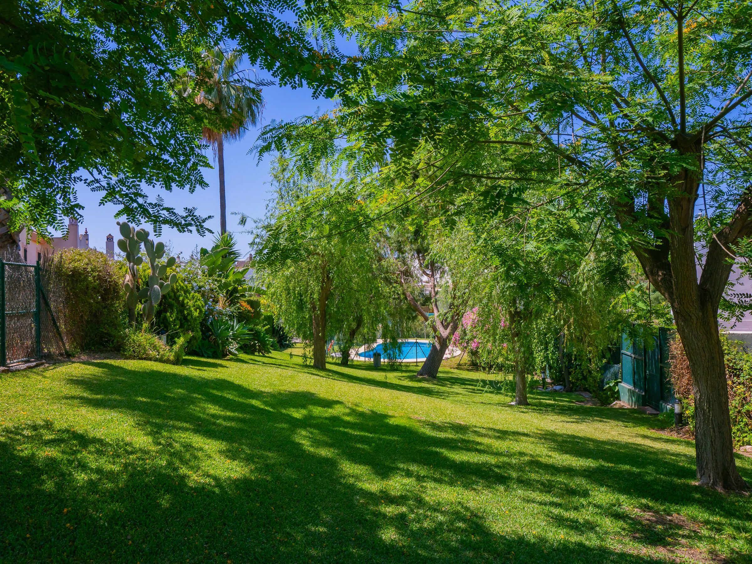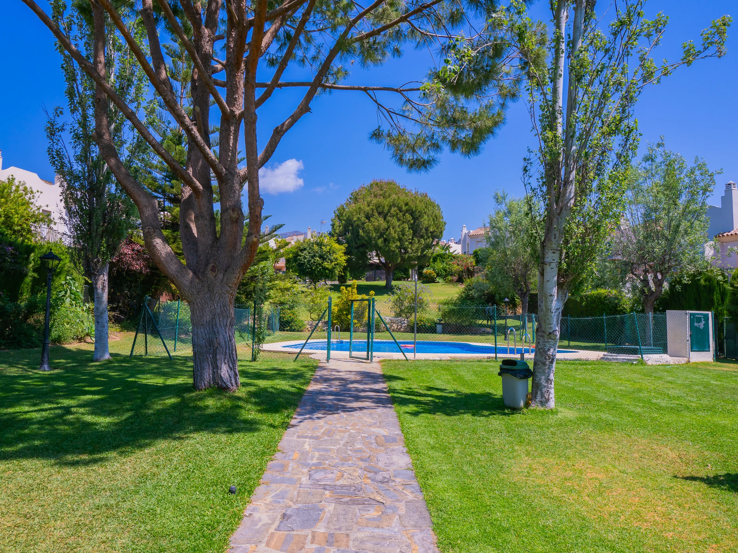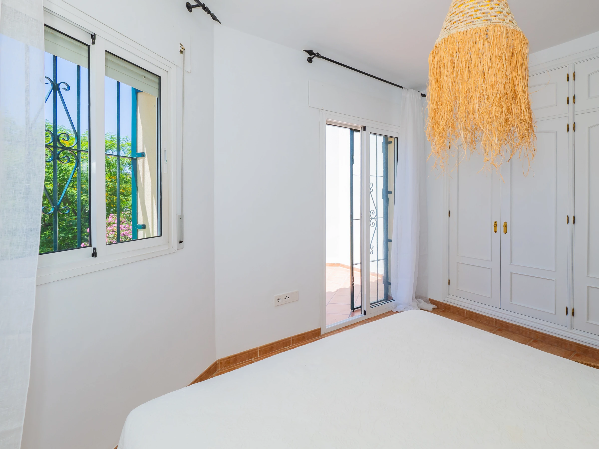 In the exterior, you will have a spacious garden with access to three communal swimming pools where you can sunbathe or enjoy a good book in the shade of the trees (although there are no sun loungers or outdoor furniture in the common areas). Additionally, it has a private landscaped area with a charcoal barbecue and direct access to the garden and nearest swimming pool. The glazed covered terrace with furniture, television and sofa complements the private space for moments of tranquillity in the urbanisation. 🌳🔥🏊♂️