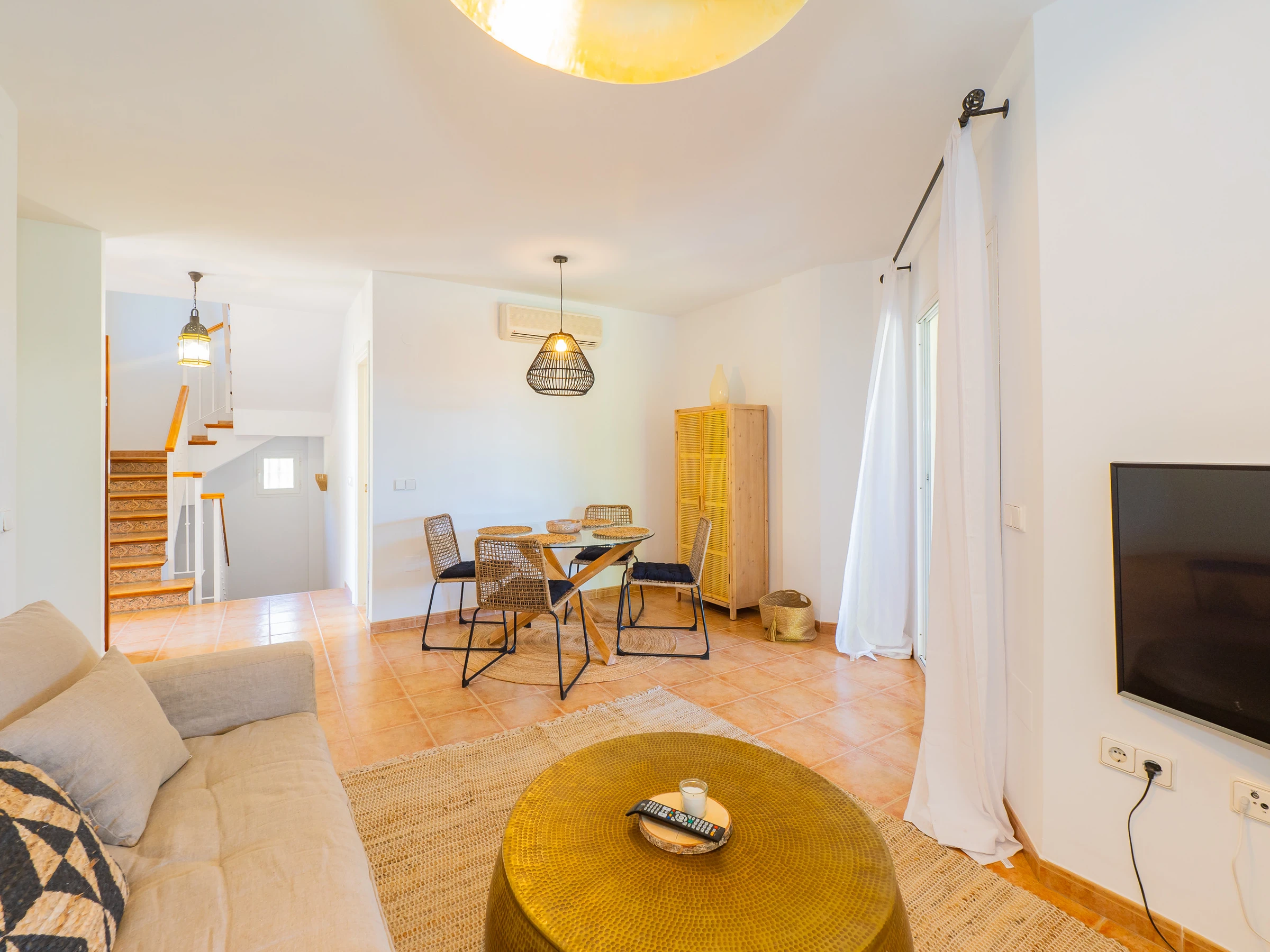 This charming holiday home in Mijas, located in a well-maintained urbanisation with spacious gardens, three swimming pools and a paddle tennis court, offers the perfect combination of relaxation and leisure. With capacity for 4 people, distributed over two floors and an independent garage space with communal access, it is the ideal refuge to discover Las Lagunas de Fuengirola and the entire Costa del Sol. The strategic location allows easy access to supermarkets, restaurants, public transport and tourist attractions such as water parks, the beach and golf courses.