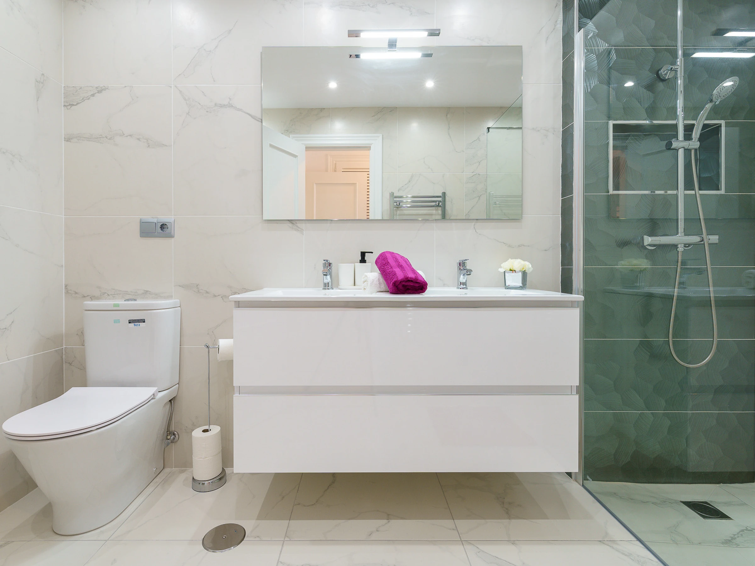 The accommodation has two double bedrooms and two shower bathrooms, perfect for families or couples. The spacious living-dining room with an open kitchen connects directly to a large terrace, filling the entire space with natural light and creating a cosy atmosphere for relaxing or sharing special moments.