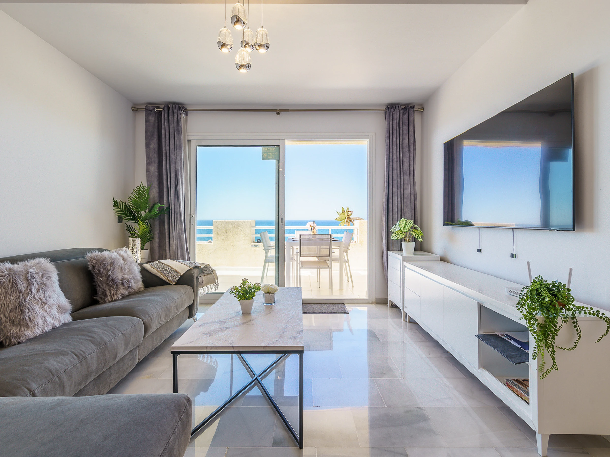 Welcome to this bright and modern beachfront apartment in Mijas Costa, the ideal place to enjoy an unforgettable stay by the sea. Its privileged location allows you to access the beach in just a few steps and offers a calm and comfortable environment to relax.