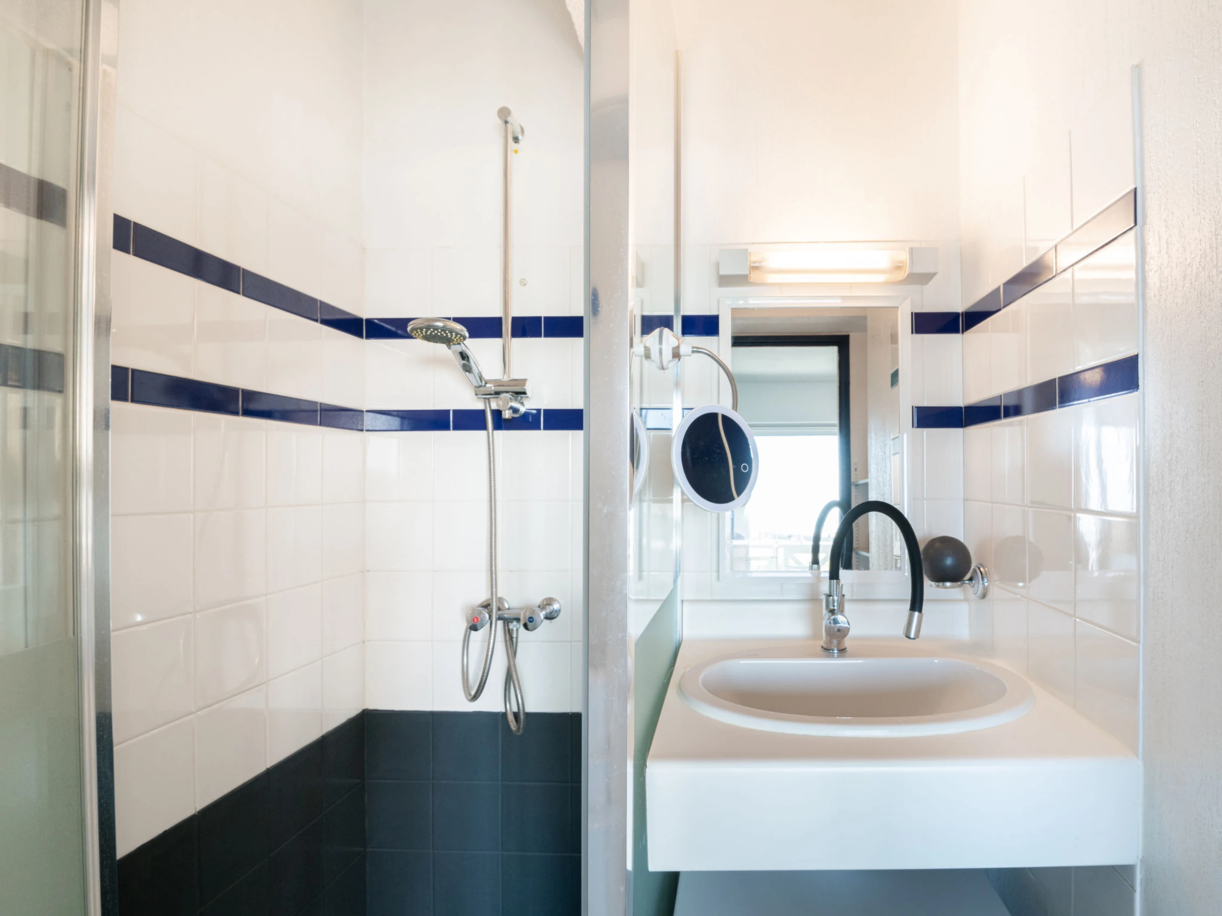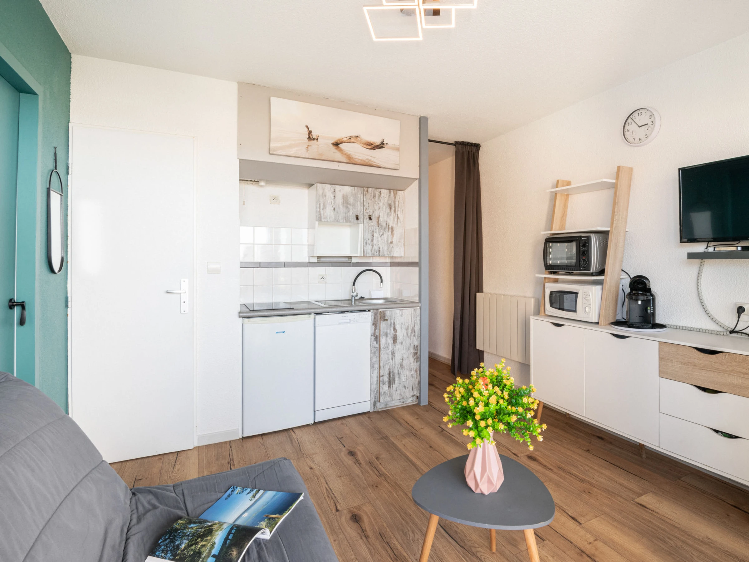"Mon oxygène", 2-room apartment 28 m2 on 1st floor, south-west facing position. Beautiful and modern furnishings: living room with 1 sofabed (1 x [hidden] cm, length [hidden] cm), TV and flat screen. Exit to the balcony. 1 small room with 1 french bed (1 x [hidden] cm, length [hidden] cm), TV (flat screen). Kitchenette (mini-oven, dishwasher, 1 induction hot plates, 2 gas rings, toaster, kettle, microwave, electric coffee machine, Capsules for coffee machine (tassimo) extra). Shower/WC. Electric heating. Balcony 6 m2, south facing position and west facing position. Balcony furniture, electric barbecue. Beautiful view of the sea. Facilities: washing machine. Internet (WiFi, extra). Parking space n [hidden]A. Please note: non-smokers only. Smoke alarm. Offer by a private individual according to Art. [hidden], IV of CGI.