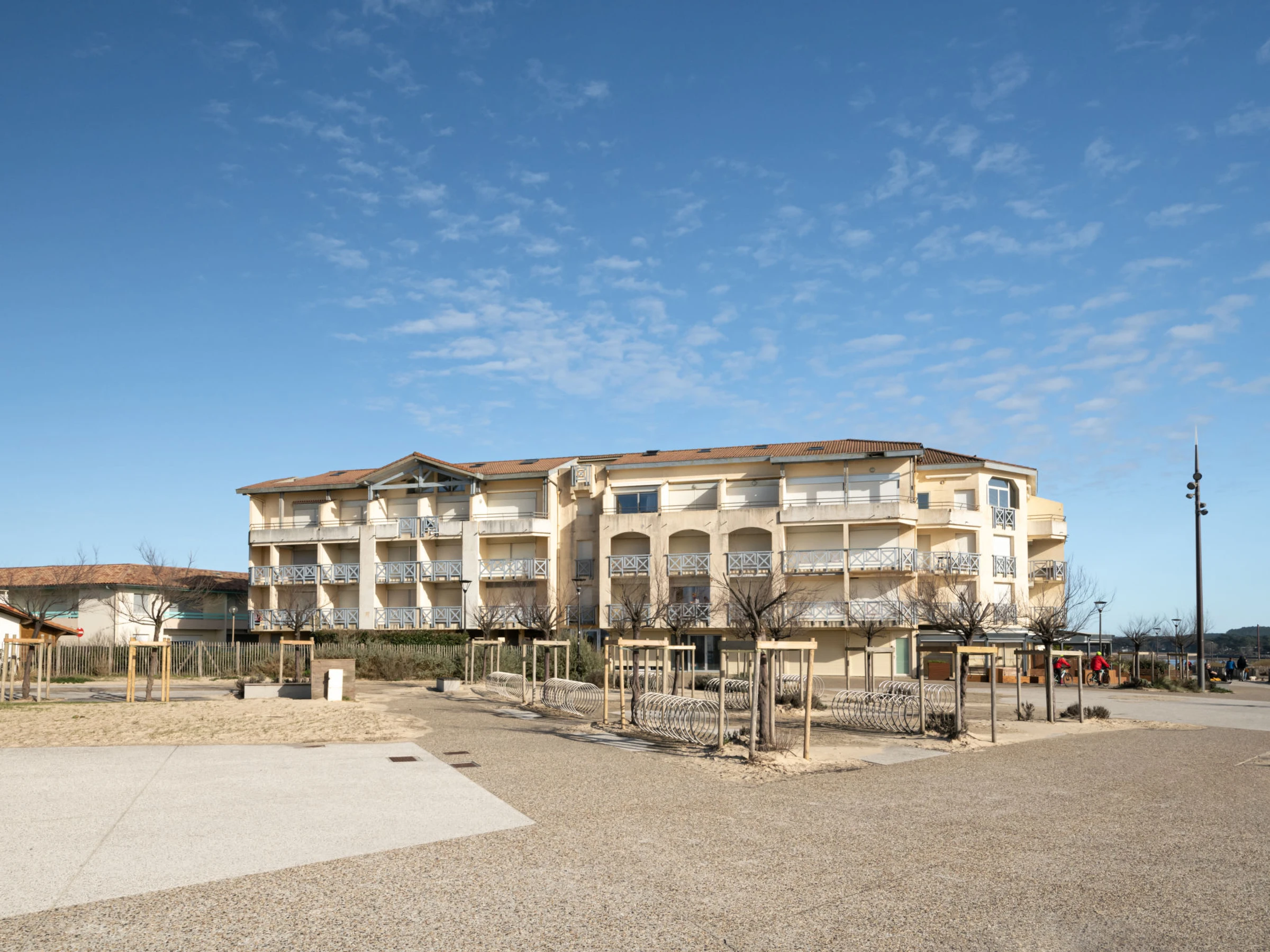Mimizan-Plage: Residence "Grand Pavois", 3 storeys, built in [hidden]. In the resort [hidden] m from the centre of Mimizan Plage, in a central, busy position, [hidden] m from the sea, 10 km from the lake, [hidden] m from the beach, 30 m from the river. In the complex: lift. Shop [hidden] m, grocery [hidden] m, supermarket [hidden] m, restaurant 10 m, bar [hidden] m, bakery [hidden] m, bicycle rental [hidden] m, bus stop [hidden] m, railway station "Labouheyre" 30 km, sandy beach "la garluche" [hidden] m, park "Landes Aventure" 6 km, indoor swimming pool 6 km, bathing lake "Aureilhan" 10 km. Golf course (9 hole) 6 km, surf school [hidden] m, riding stable 10 km. Nearby attractions: Bordeaux [hidden] km, Arcachon 70 km, Biscarrosse 40 km, Centre Nautique 7 km, Casino Mimizan Plage. Hiking paths: Parc naturel régional des Landes 45 km.