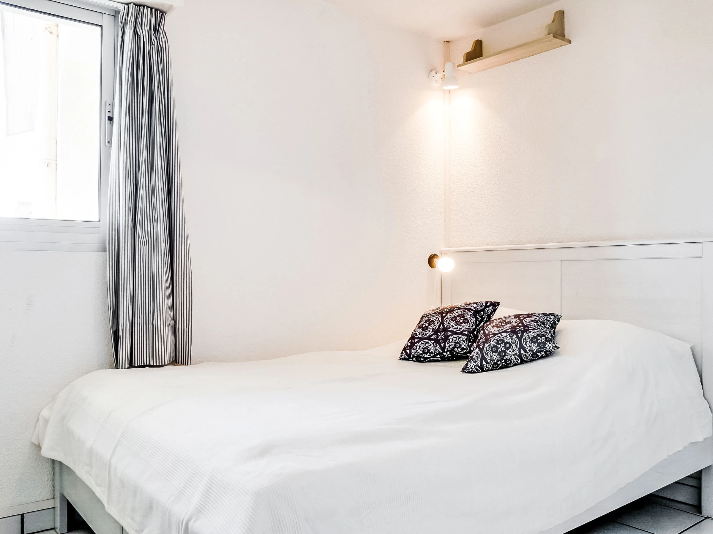 4-room maisonette 70 m2 on 3rd floor, south-west facing position. Beautiful furnishings: living/dining room with TV (flat screen). Exit to the balcony. 1 room with 1 french bed (1 x [hidden] cm, length [hidden] cm), shower. Kitchenette (dishwasher, 4 ceramic glass hob hotplates, toaster, kettle, microwave, electric coffee machine, Capsules for coffee machine (Senseo) extra). Sep. WC. Upper floor: (steep stair), 1 room with sloping ceilings with 2 beds (90 cm, length [hidden] cm). 1 room with sloping ceilings with 1 bed (90 cm, length [hidden] cm). Bathroom. Electric heating. Balcony 10 m2. Balcony furniture. Beautiful view of the sea. Facilities: washing machine. Internet (WiFi, extra). Parking space n [hidden]. Please note: non-smokers only. 1 small pet/ dog allowed. TV only FR. Smoke alarm. Small parking with sidewalk access.