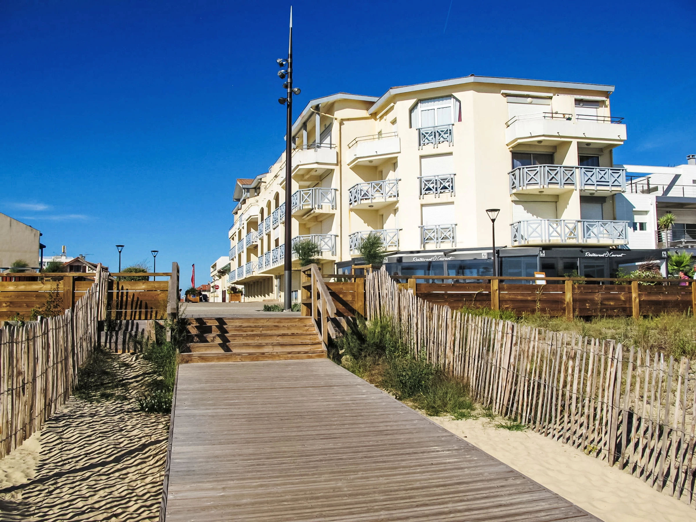 Mimizan-Plage: Residence "Grand Pavois", 3 storeys, built in [hidden]. In the resort [hidden] m from the centre of Mimizan Plage, in a central, busy position, [hidden] m from the sea, 10 km from the lake, [hidden] m from the beach, 30 m from the river. In the complex: lift. Shop [hidden] m, grocery [hidden] m, supermarket [hidden] m, restaurant 10 m, bar [hidden] m, bakery [hidden] m, bicycle rental [hidden] m, bus stop [hidden] m, railway station "Labouheyre" 30 km, sandy beach "la garluche" [hidden] m, park "Landes Aventure" 6 km, indoor swimming pool 6 km, bathing lake "Aureilhan" 10 km. Golf course (9 hole) 6 km, surf school [hidden] m, riding stable 10 km. Nearby attractions: Bordeaux [hidden] km, Arcachon 70 km, Biscarrosse 40 km, Centre Nautique 7 km, Casino Mimizan Plage. Hiking paths: Parc naturel régional des Landes 45 km.